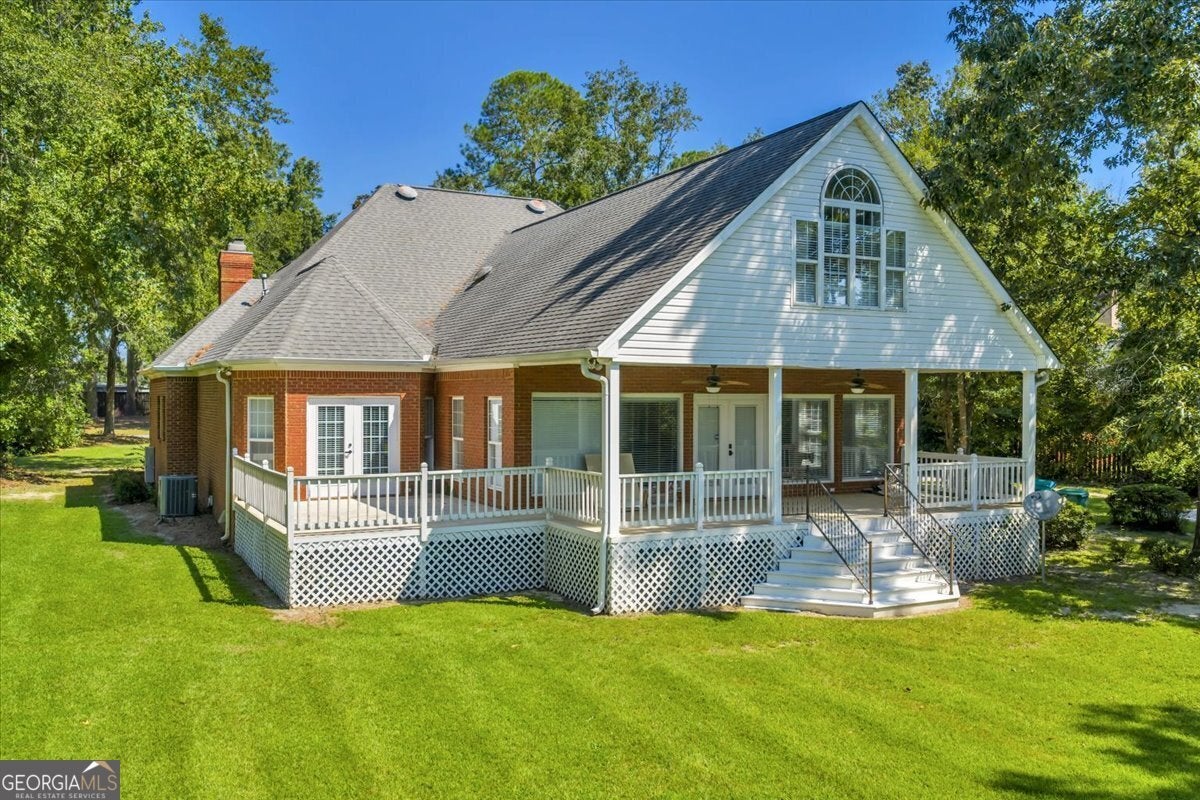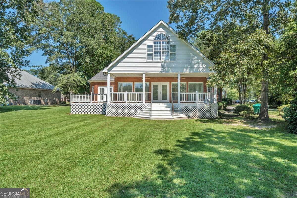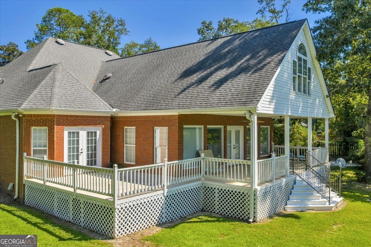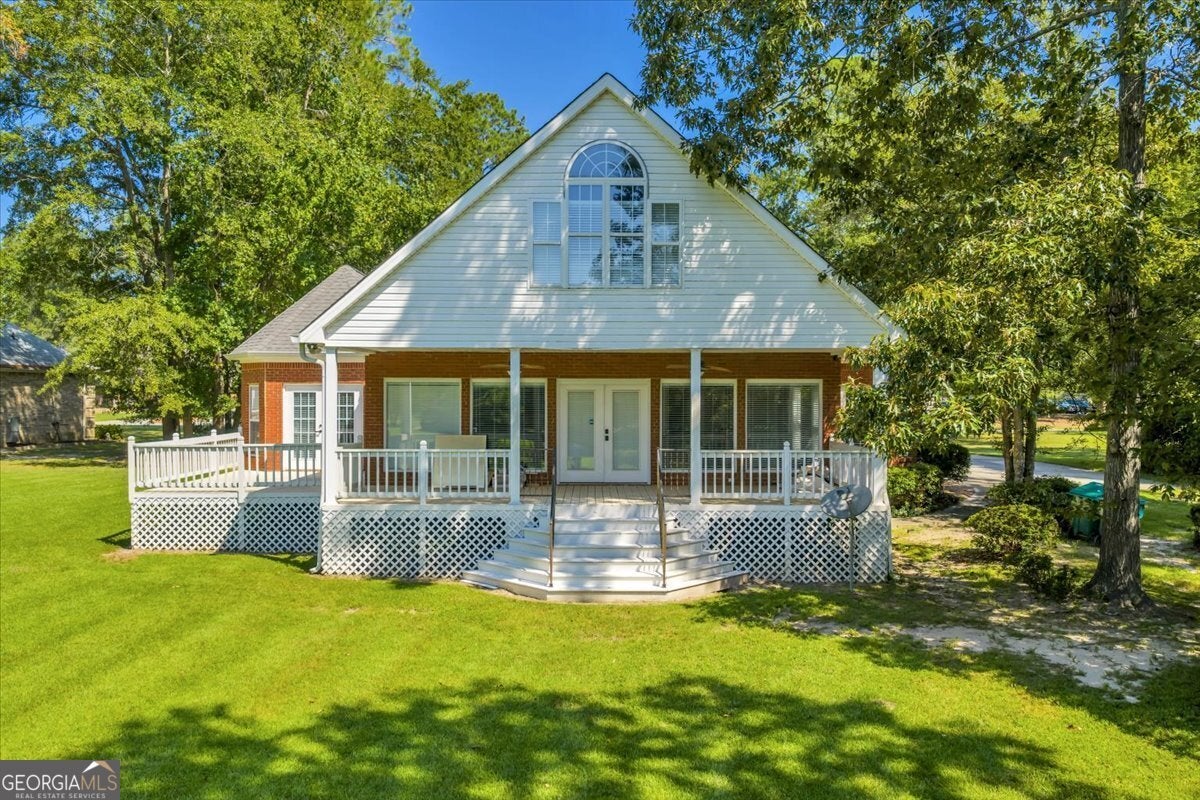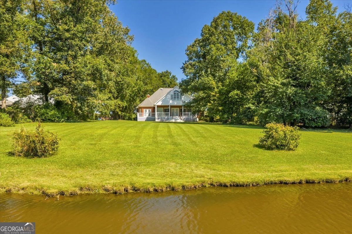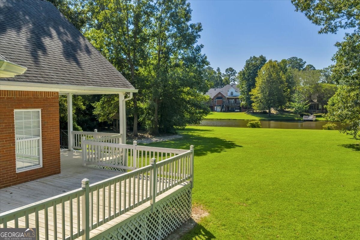 **$40,000 BUYER INCENTIVE TO BE USED TOWARD BUYER CLOSING COST FEES, DESIGN ALLOWANCE, INTEREST RATE BUY DOWN POINTS OR PRICE REDUCTION!!!** This stunning full-brick home is zoned for County Taxes Only and sits on a 1.59-acre waterfront lot in the highly sought-after Statham's Landing Golf Course Community, offering timeless elegance, modern functionality, and easy access to the course. With extensive trim and moldings, hardwood floors throughout, and thoughtful design, this home is perfect for both everyday living and entertaining. The main level features a large foyer, formal dining room, and formal living room/den with fireplace and the open floor plan flows into a spacious great room with custom built-ins, a fireplace with floor-to-ceiling stone accents, and open staircase while he chef's kitchen boasts of custom cabinetry, a gas range, convection oven/microwave plus separate oven, granite countertops, and a large island with breakfast bar. The oversized primary suite includes a sitting area, spa-like bath with dual vanities, makeup vanity, separate tub, gorgeous shower, and a walk-in closet. Additional main floor highlights include a half bath for guests, a large laundry room with utility sink and storage closet, an additional bedroom with private bath, and a huge sunroom. Upstairs, the front staircase leads to a loft area and two bedrooms with a Jack-and-Jill bath while a separate staircase off the sunroom leads to a massive bedroom/bonus room with a full bath-perfect for a studio, game room, playroom, or teen suite. From the sunroom, step out onto the massive partially covered deck overlooking the lush backyard with waterfront views and direct pond access. This is the perfect home for hosting large parties or just relaxing with your close friends and family. While being Located in a well-established golf course community, this home also offers optional membership for access to the clubhouse, golf course, and community pool. Call Today To Schedule a Tour of This Amazing Home!