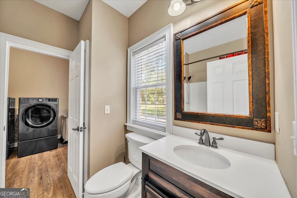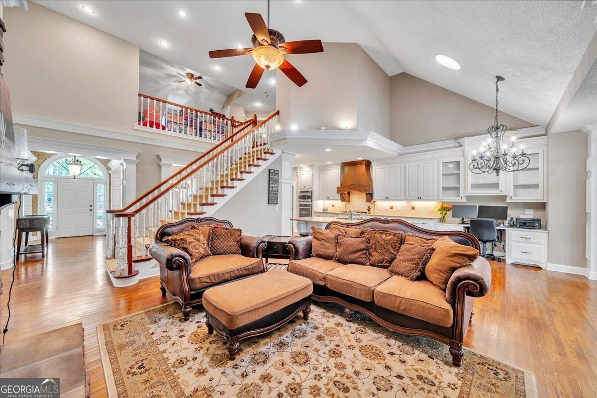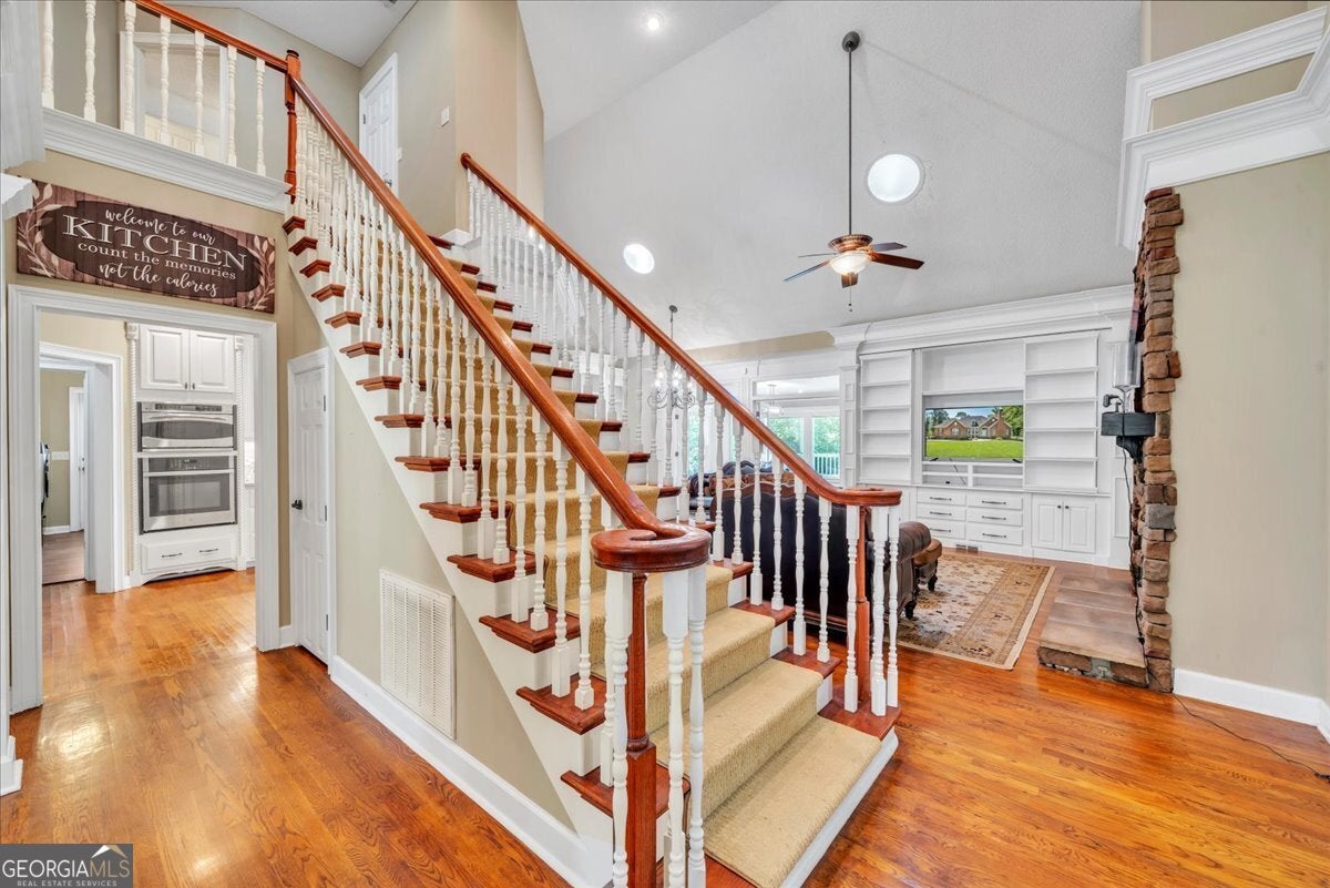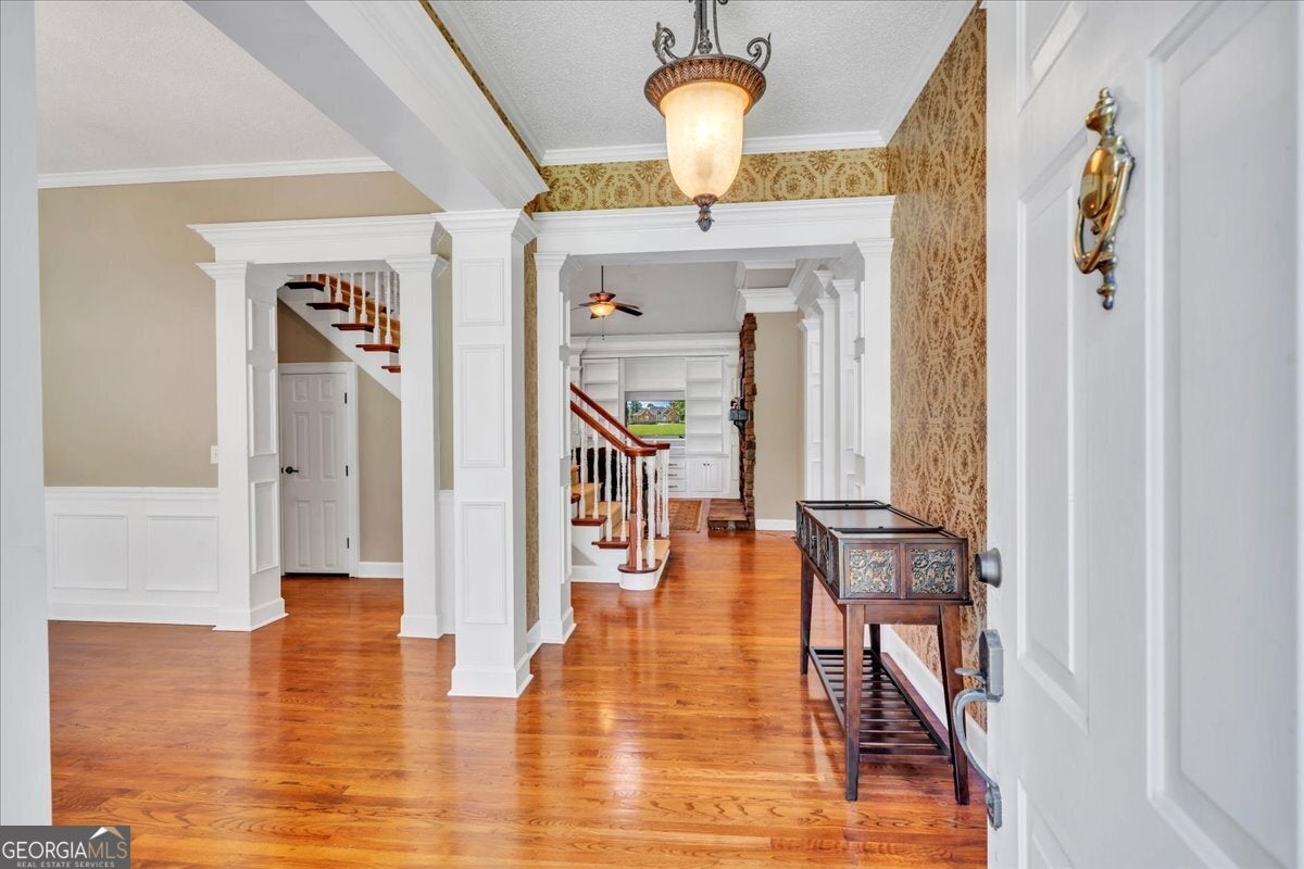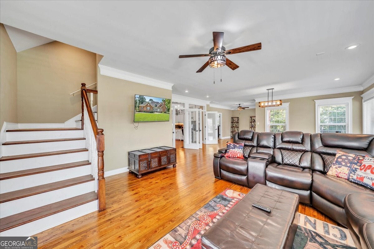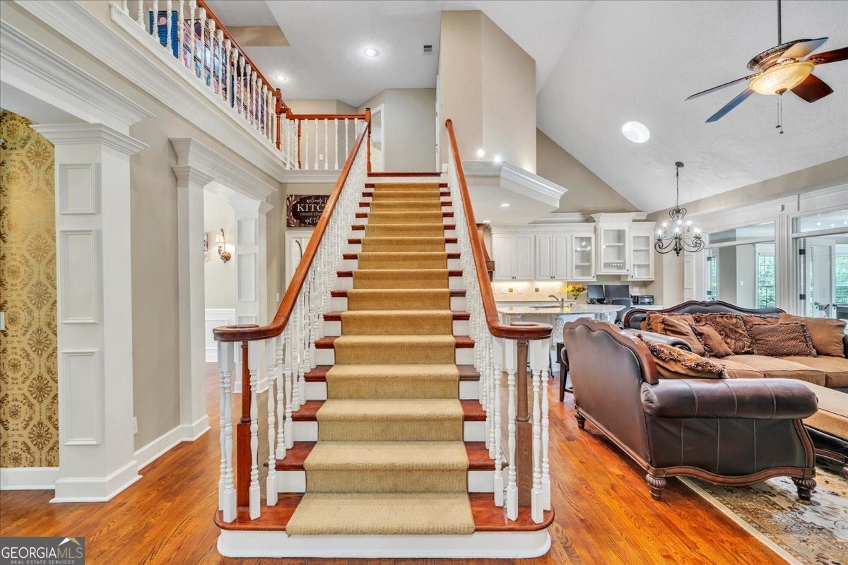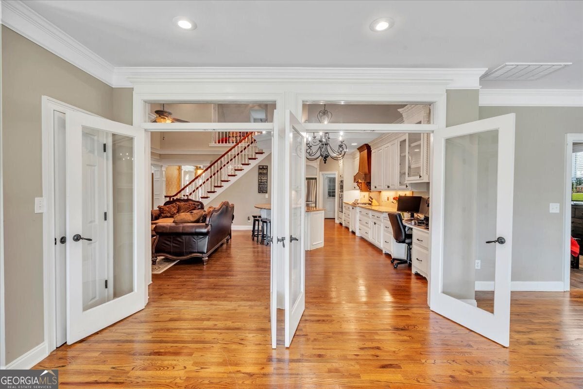 **$40,000 BUYER INCENTIVE TO BE USED TOWARD BUYER CLOSING COST FEES, DESIGN ALLOWANCE, INTEREST RATE BUY DOWN POINTS OR PRICE REDUCTION!!!** This stunning full-brick home is zoned for County Taxes Only and sits on a 1.59-acre waterfront lot in the highly sought-after Statham's Landing Golf Course Community, offering timeless elegance, modern functionality, and easy access to the course. With extensive trim and moldings, hardwood floors throughout, and thoughtful design, this home is perfect for both everyday living and entertaining. The main level features a large foyer, formal dining room, and formal living room/den with fireplace and the open floor plan flows into a spacious great room with custom built-ins, a fireplace with floor-to-ceiling stone accents, and open staircase while he chef's kitchen boasts of custom cabinetry, a gas range, convection oven/microwave plus separate oven, granite countertops, and a large island with breakfast bar. The oversized primary suite includes a sitting area, spa-like bath with dual vanities, makeup vanity, separate tub, gorgeous shower, and a walk-in closet. Additional main floor highlights include a half bath for guests, a large laundry room with utility sink and storage closet, an additional bedroom with private bath, and a huge sunroom. Upstairs, the front staircase leads to a loft area and two bedrooms with a Jack-and-Jill bath while a separate staircase off the sunroom leads to a massive bedroom/bonus room with a full bath-perfect for a studio, game room, playroom, or teen suite. From the sunroom, step out onto the massive partially covered deck overlooking the lush backyard with waterfront views and direct pond access. This is the perfect home for hosting large parties or just relaxing with your close friends and family. While being Located in a well-established golf course community, this home also offers optional membership for access to the clubhouse, golf course, and community pool. Call Today To Schedule a Tour of This Amazing Home!