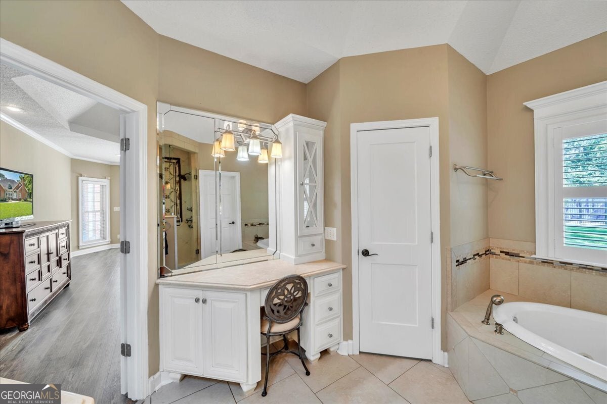 - Interior FeaturesBookcases, Double Vanity, High Ceilings, In-Law Floorplan, Master On Main Level, Rear Stairs, Roommate Plan, Separate Shower, Split Bedroom Plan, Tile Bath, Vaulted Ceiling(s), Walk-In Closet(s), Whirlpool Bath