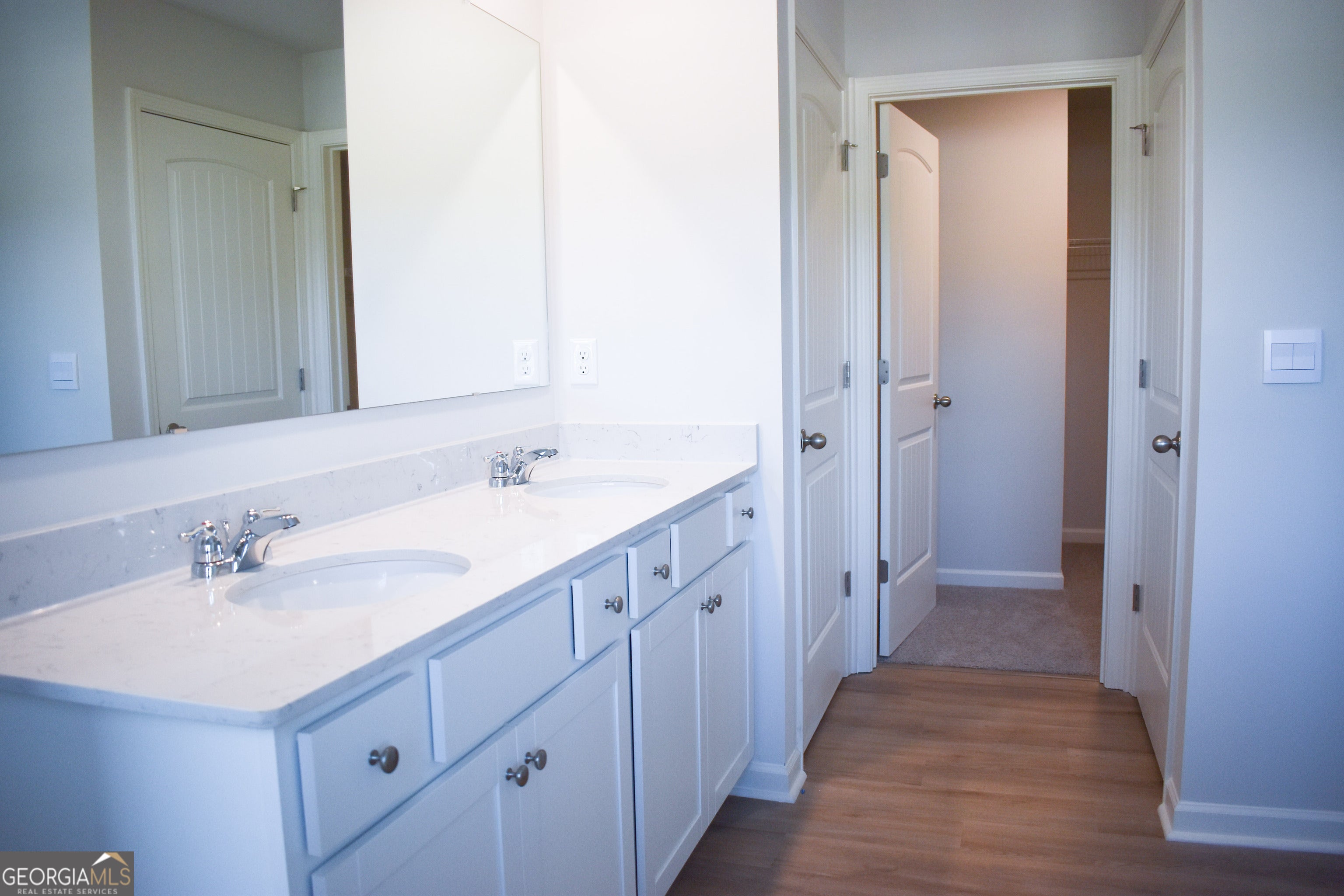 Be the first to live in this beautiful brand-new townhome in the desirable Waypoint community of Flowery Branch! Located at 6686 Corryton Street, this property has never been occupied and offers comfort, modern style, and an excellent location. The Sudbury floorplan features 3 bedrooms, 2.5 bathrooms, and a 2-car garage. Upon entry, a welcoming foyer leads into the open-concept main living area with a spacious family room, perfect for gatherings. The kitchen is fully equipped with stainless steel appliances, quartz countertops, shaker-style cabinetry, subway tile backsplash, and a central island, creating a stylish and functional space. The dining area opens to the backyard, ideal for indoor-outdoor living. Upstairs, the primary suite offers a luxurious retreat with a spa-like bathroom that includes a separate tub and shower, dual vanities, private walking closet, and a large walk-in closet. Two additional bedrooms, a full bath with dual vanities, and the laundry room complete the upper floor. +Highlights: Brand-new construction (never lived in!). Bright, modern, and open spaces. Peaceful community in Flowery Branch. Easy access to shopping, dining, parks, I-985 and just minutes from the Lake Lanier and chateau elan winery & resort. This home combines modern living with convenience and comfort in a prime location.