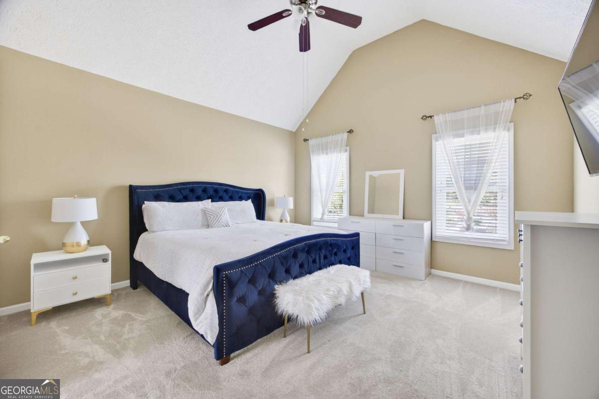 - Interior FeaturesBookcases, Double Vanity, High Ceilings, Pulldown Attic Stairs, Vaulted Ceiling(s), Walk-In Closet(s)