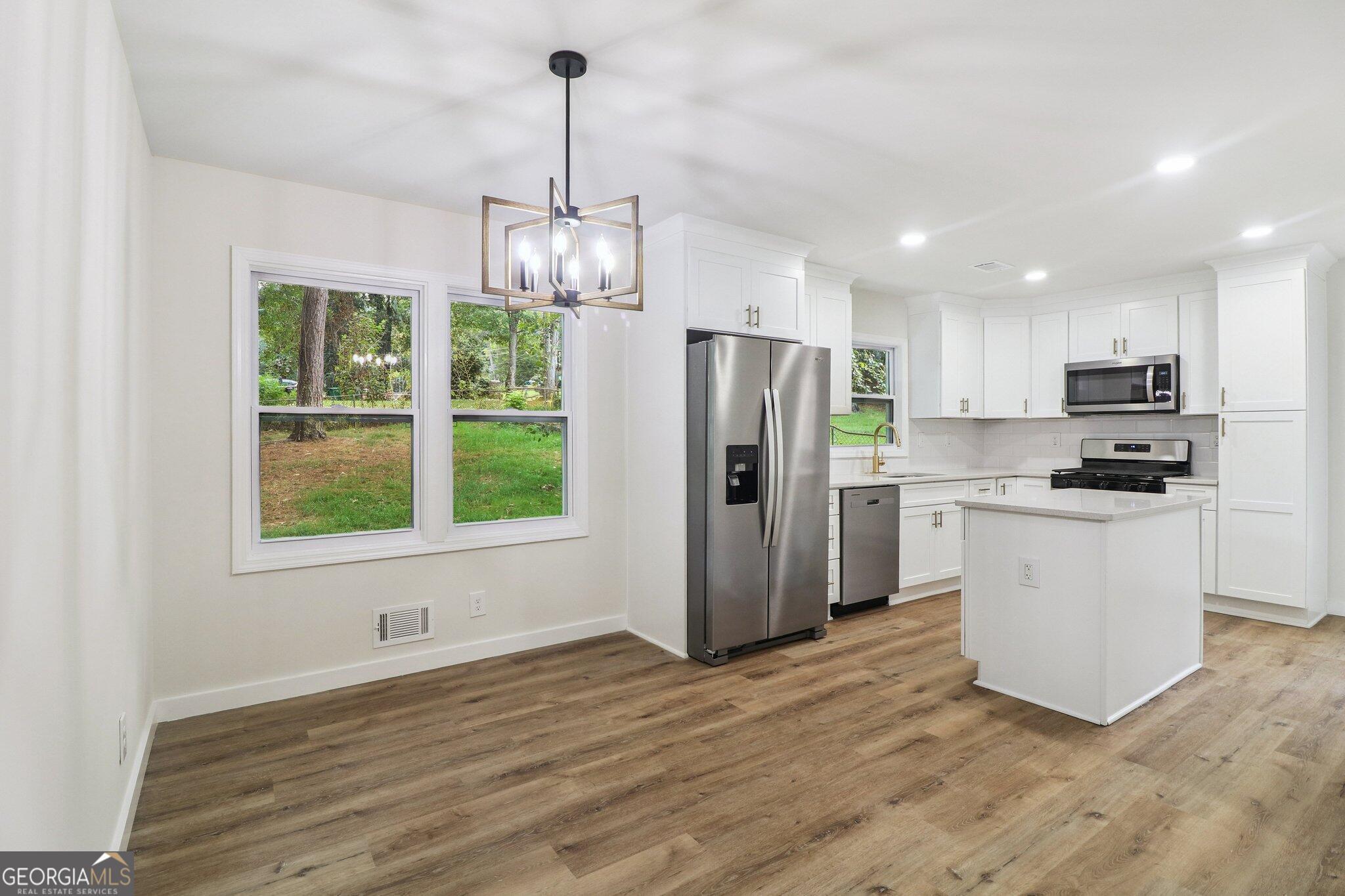 Stunning 3-Bedroom Ranch house - Fully Updated & Move-In Ready! This beautifully updated 3-bedroom, 2-bath home sits on a peaceful lot and offers the perfect blend of style and comfort. The bright, open-concept main floor showcases a stunning accent wall and a modern kitchen with soft-close white cabinetry, quartz countertops, recessed lighting, and a centerpiece island, all enhanced by fresh, contemporary paint. Move in with confidence, knowing this home is completely turnkey, featuring brand-new stainless steel kitchen appliances, a new furnace and AC unit, a new roof and water heater, new LVP flooring with updated plumbing, and energy-efficient windows. Homes like this don't stay on the market long.