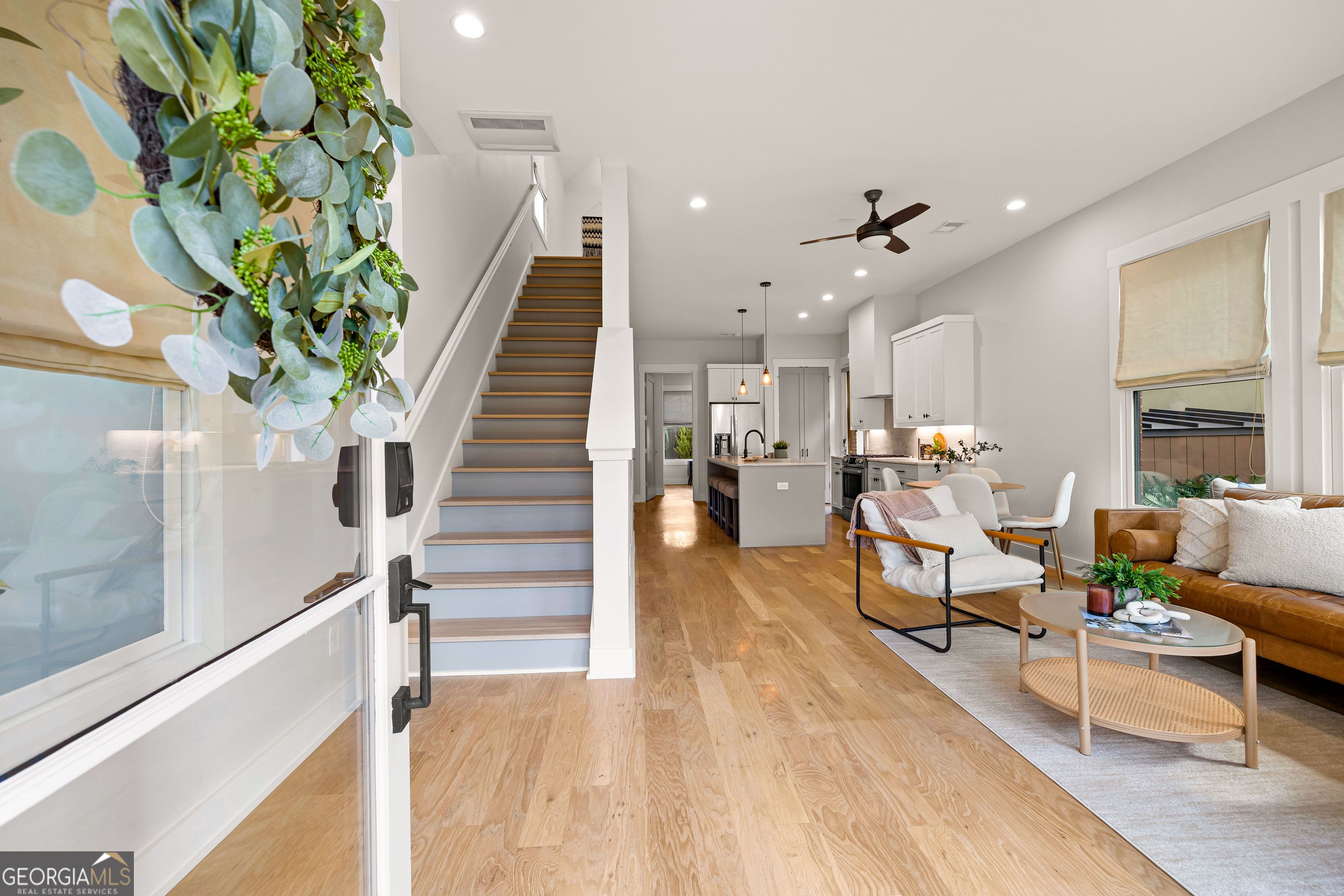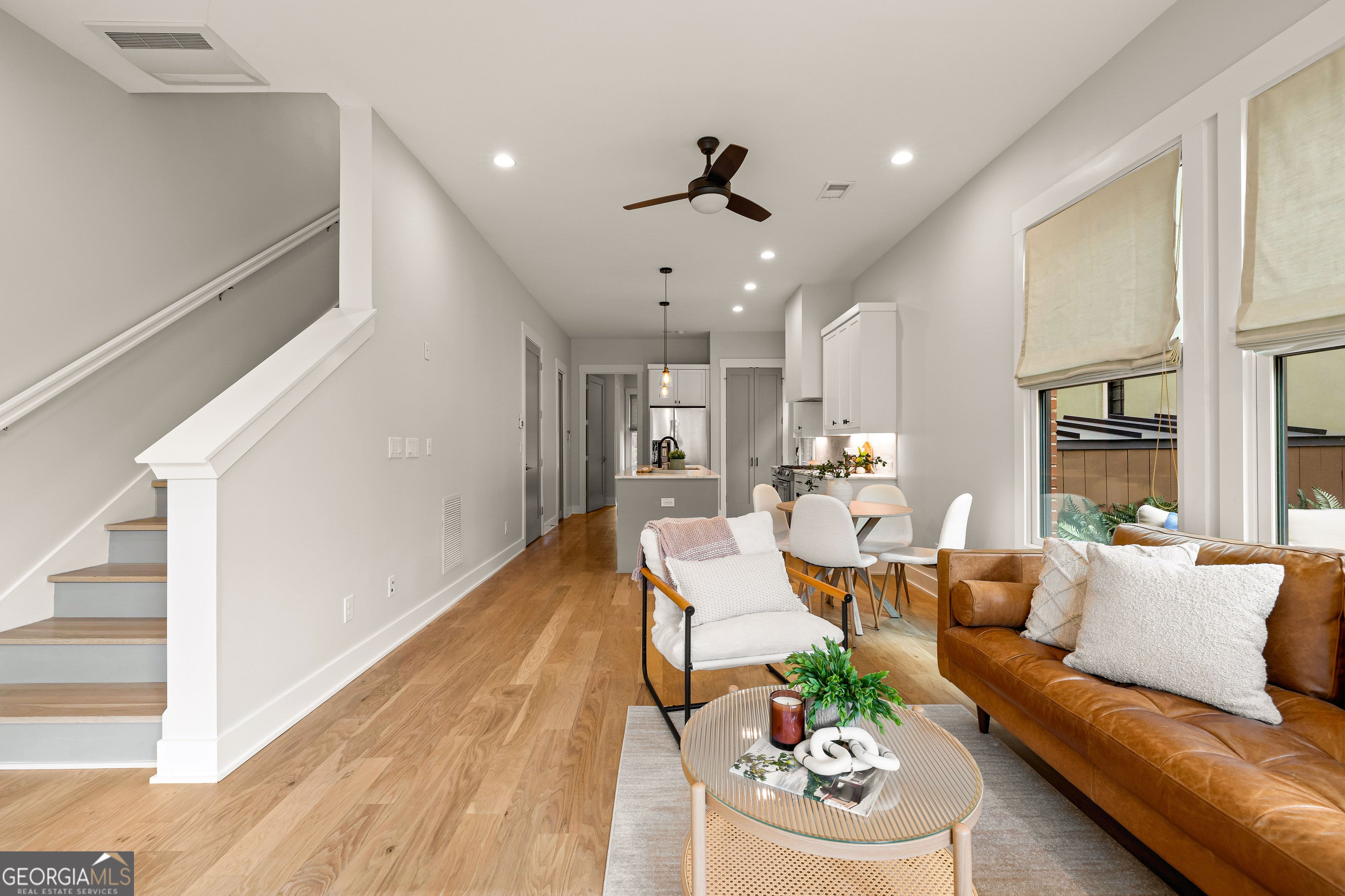 Welcome home to luxury and community! This stunning 3-bedroom, 3.5-bath residence offers modern elegance, thoughtful design, and exceptional functionality-perfect as a primary residence or high-end investment property. The open-concept main level features soaring ceilings, expansive windows, and high-end finishes, including marble countertops and premium fixtures. Enjoy effortless indoor-outdoor living with a private patio, ideal for relaxing or entertaining. The second-floor primary suite is a true retreat with a private balcony overlooking Triangle Park's lush green space. A guest suite with en-suite bath on the first floor and a flexible third bedroom or office upstairs provide comfort and versatility. Two dedicated parking spaces and a Tesla EV charger complete this exceptional offering. Residents of Trilith enjoy a vibrant, walkable community with world-class dining, boutique shops, a wellness center, resort-style pool, tennis and pickleball courts, walking trails, and dog park. A state-of-the-art cinema is coming soon. Located just minutes from Trilith Studios and a short drive to Hartsfield-Jackson Airport, this home delivers unmatched convenience, community, and opportunity. Experience the lifestyle, location, and investment value of Trilith-schedule your private showing today! This home has a rare leasing permit available to be an investment property at Trilith!