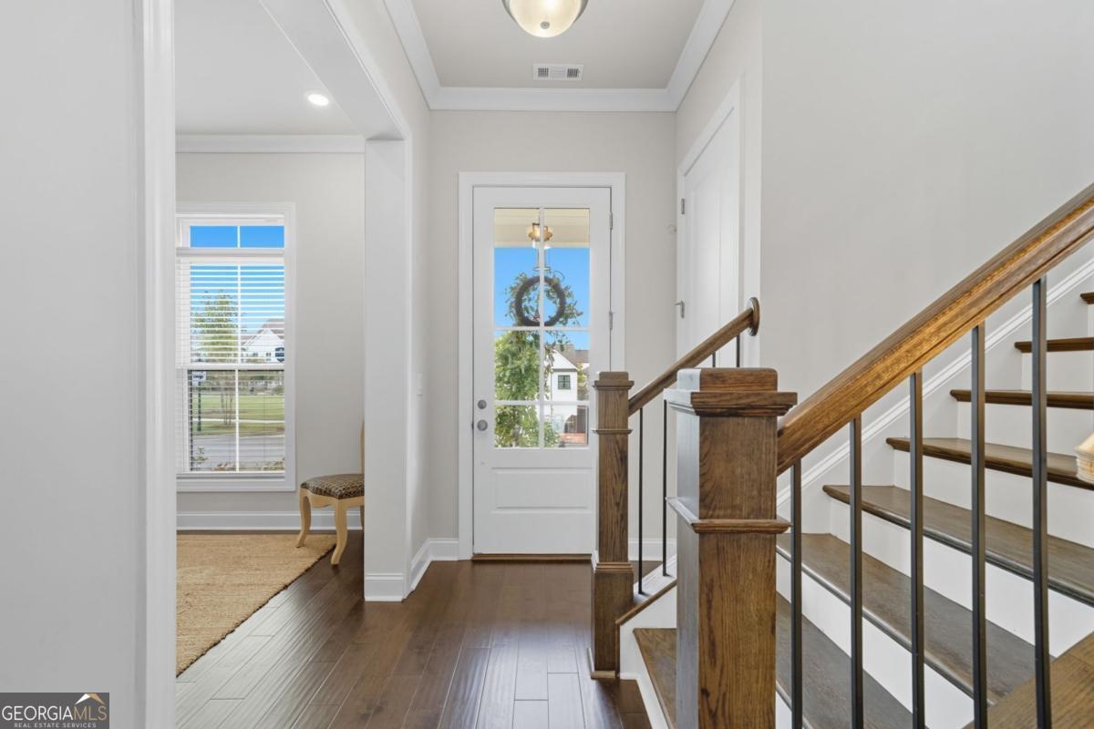 Welcome home to this 4-bedroom, 3.5-bath home with the owner's suite on the main level in the highly sought-after Idylwilde community. Perfectly positioned on a corner lot overlooking the park, this home combines charm, convenience, and modern upgrades. Step inside to a bright open-concept layout with a spacious great room, a chef's kitchen with an oversized island, and a flex/dining room perfect for entertaining or working from home. The main-level owner's suite features a spa-like bath and generous walk-in closet, while the upstairs offers large secondary bedrooms with walk-in closets for everyone's comfort. Enjoy evenings on your welcoming front porch or retreat to the private side patio. With rear entry parking, the curb appeal shines from every angle. Community Amenities: Clubhouse, pickleball courts, pool, fire pit, garden club, and walking trails - all designed to bring neighbors together. Location Highlights: Minutes from shopping, dining, schools, and easy access to I-575 for a quick commute. Don't miss the chance to experience Idylwilde living - where modern design meets neighborhood charm. With multiple master-on-main options and homes in various stages of construction, there's a fit for every timeline. Schedule your showing today and come see why Idylwilde is one of Canton's most desirable communities!