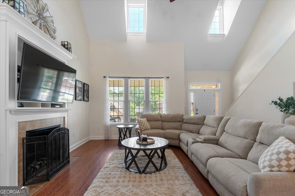 Step inside this beautifully maintained home in the desirable Huntington Shoals neighborhood and you'll immediately feel at home! You're welcomed by a soaring two-story living room filled with natural light, centered around a cozy fireplace-perfect for relaxing or gathering with guests. The open-concept dining area flows into a well appointed kitchen featuring granite countertops, stainless appliances, and ample cabinet space. Just off the main living area, the spacious primary suite offers comfort and privacy with an ensuite bath that includes dual vanities, an expanded shower, and a generous walk-in closet. Upstairs, you'll find three additional well-sized bedrooms and a full bath-ideal for family, guests, or home office needs. Step outside to an expansive back deck, perfect for hosting and entertaining, which overlooks a beautifully landscaped backyard, complete with a fire pit and natural stone accents. The yard backs up to a wooded buffer, offering privacy and a peaceful setting year-round. Located just minutes from the Loop, Hwy 316, shopping, dining, and schools, this move-in ready home blends comfort, charm, and convenience. Don't miss the opportunity to make it yours!