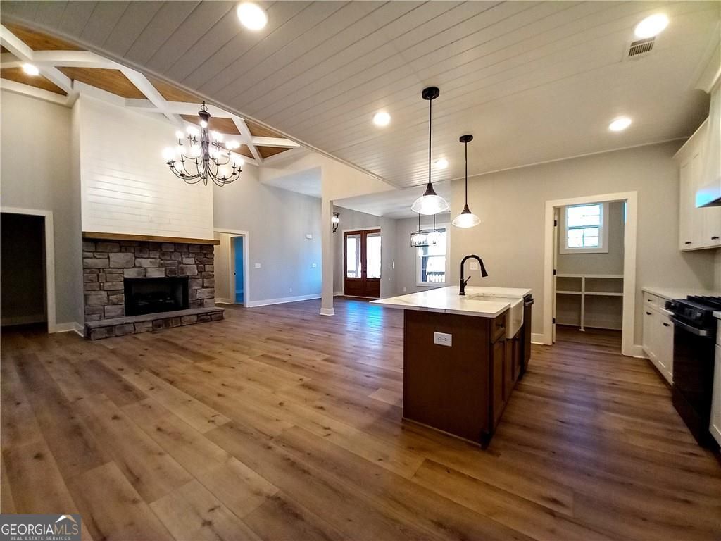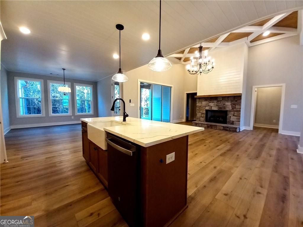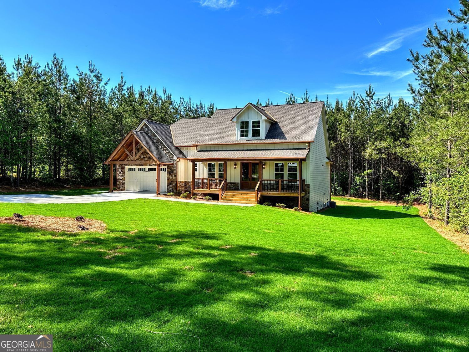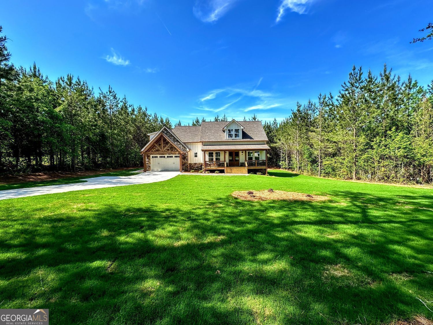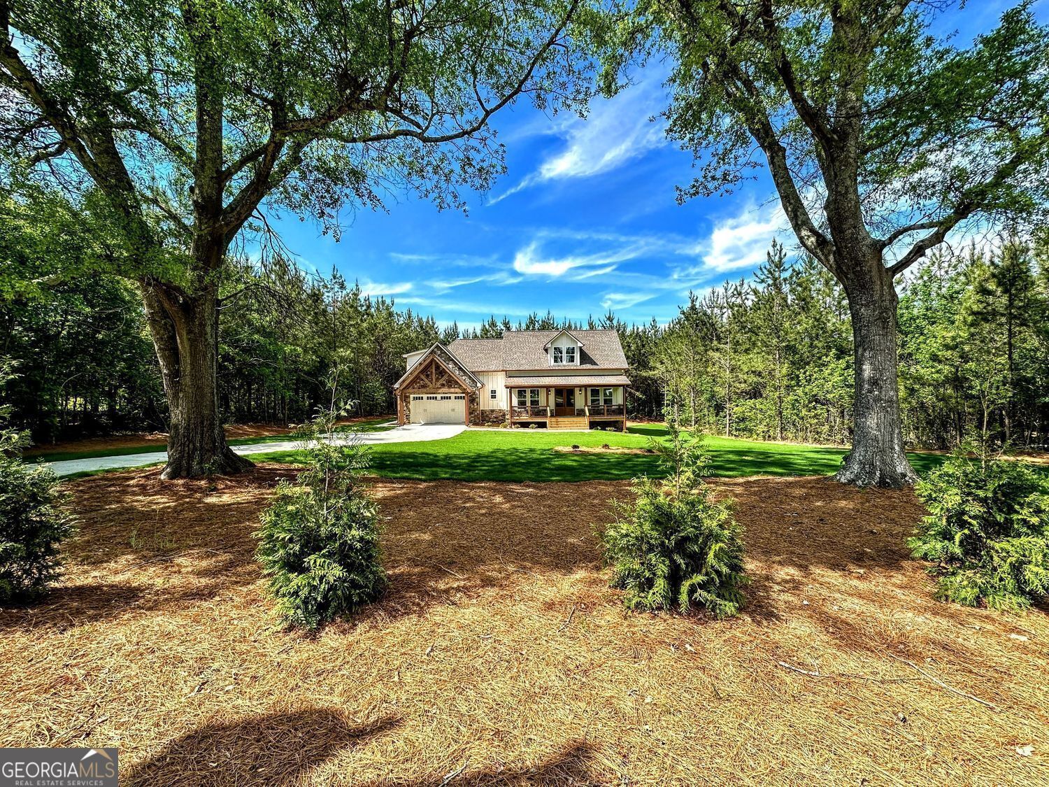 **PRICE IMPROVEMENT** 4.99% Interest Rate for Approved Buyers with Preferred Lender!! Why wait!!** Move-In Ready!! New Construction by Collins Homes!! Welcome to a place you'll truly love to call home! - nestled on 1.61 peaceful wooded acres in Temple, GA. This beautifully designed 2,844 SQ.FT. Craftsman-Style home blends rustic charm with modern elegance, featuring a spacious open concept plan including 4 bedrooms, 3.5 baths, 14ft coffered ceilings, rich stone accents, and oversized sliding glass doors that open to a stunning timber-covered back porch - perfect for morning coffee or quiet evenings under the trees. The gourmet kitchen is a dream, complete with a pot filler over the cooktop, quartz countertops, walk-in pantry, stainless steel appliances and an open layout that flows right into the spacious living area. The formal dining room and separate kitchen dining area make this the perfect home for entertaining friends and family. The owner's suite is warm and inviting, with a vaulted ceiling, custom lighting, and spa-like bath with a freestanding soaking tub, large walk-in tile shower and dual vanities. An oversized laundry room connects to both the hallway and the owner's walk-in closet for convenient everyday use. This split bedroom plan includes two additional bedrooms with a Jack-and-Jill bath on the main level and a large private 4th bedroom ensuite upstairs. Built with luxury high-end finishes, multiple upgrades, thoughtful details, and true craftsmanship - this isn't just another house, it's the home you've been waiting for. 2/10 Home Warranty included. Additional buyer incentives available.