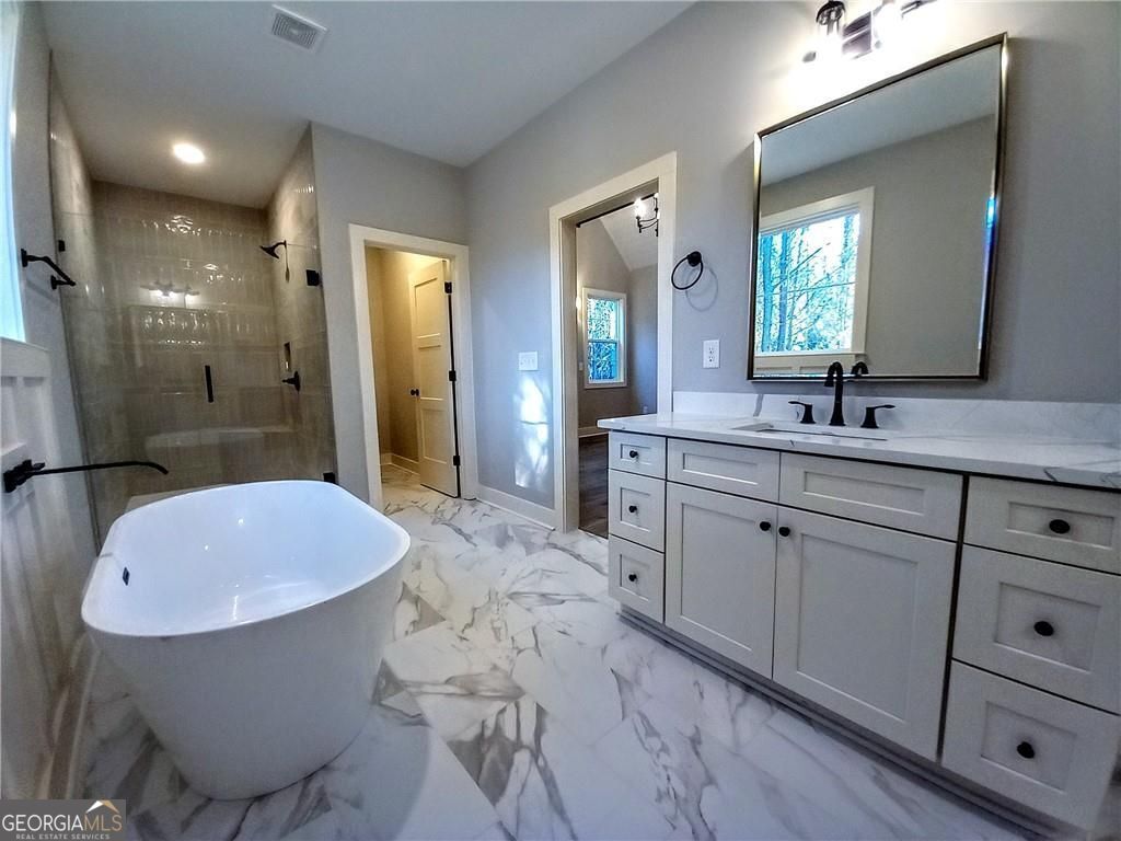 - Interior FeaturesDouble Vanity, Master On Main Level, Soaking Tub, Split Bedroom Plan, Vaulted Ceiling(s)