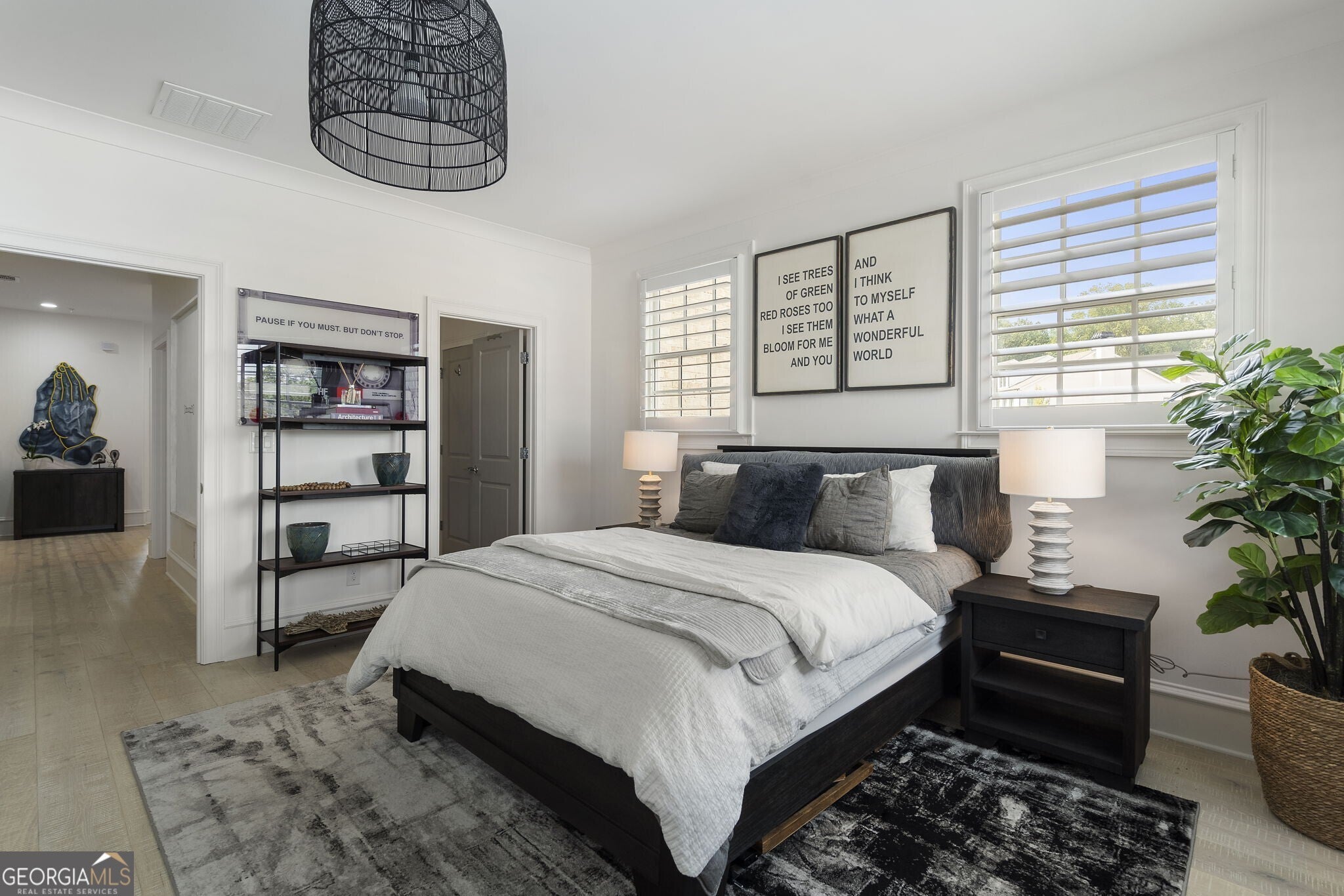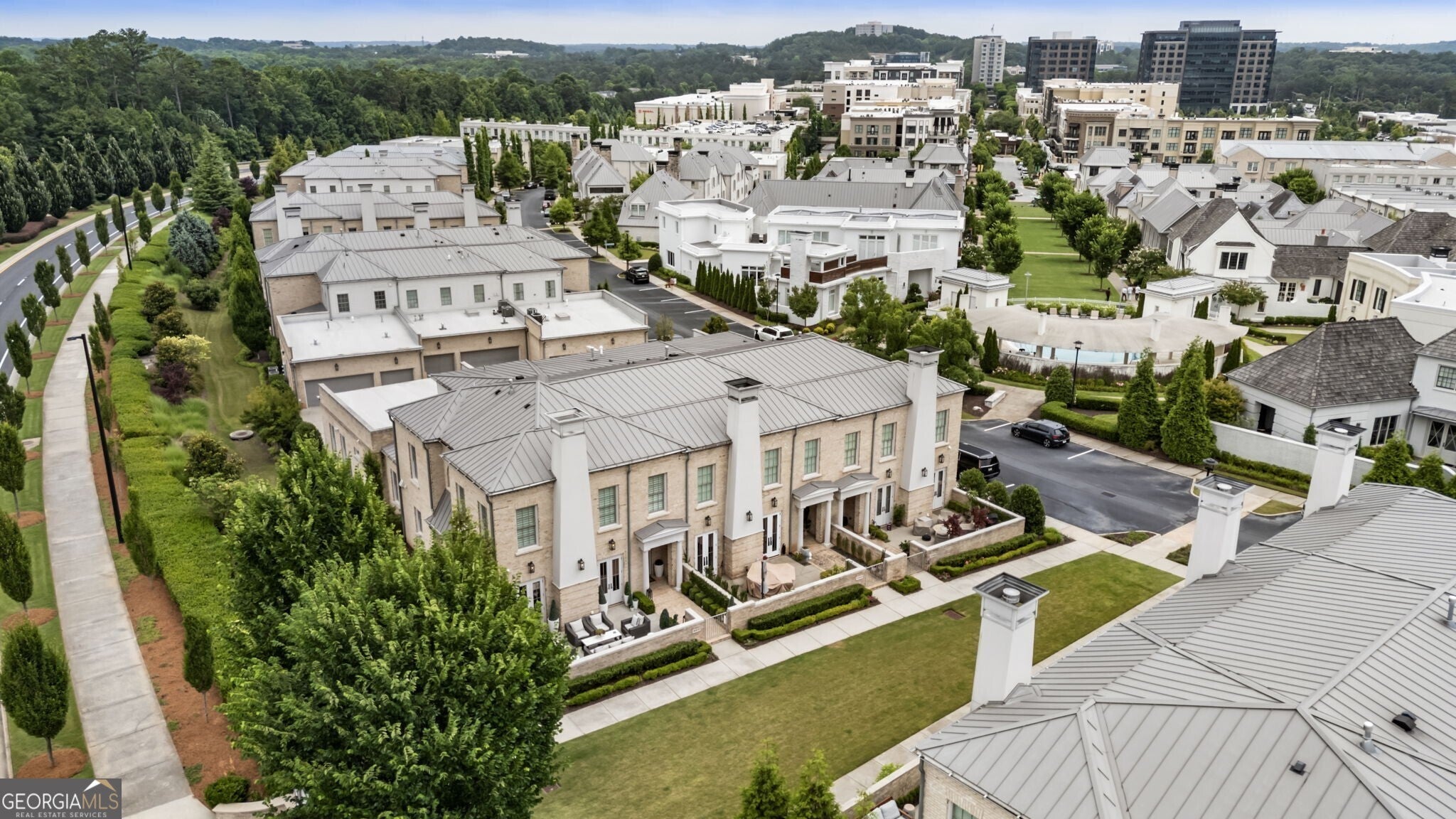 Custom European-Style End Unit Estate Townhome in Avalon - Alpharetta's Premier Mixed-Use Community! Welcome to an exceptional opportunity to own one of Avalon's most sought-after and popular floorplans - a custom-designed, two-story estate townhome situated in the heart of Metro Atlanta's most vibrant mixed-use community. This coveted end unit location offers enhanced privacy, with only one shared wall, and an abundance of natural light that fills every space. Ideally positioned in Alpharetta, this residence offers unrivaled convenience with easy access to GA-400, the Alpha Loop, and charming downtown Alpharetta - all just moments away. But life at Avalon is more than a home - it's a lifestyle. Enjoy the ease of resort-style amenities, world-class shopping, top-rated restaurants, and year-round entertainment events just steps from your door. Private community features such as a sparkling pool, and inviting gathering spaces create an elevated, low-maintenance living experience you will absolutely love. This like-new, all-brick estate townhome is a rare offering, showcasing nearly 3,700 square feet of thoughtfully designed living space, an impressive 30-foot wide floor plan, 10' high ceilings, and a spacious 3-car garage. The flexible layout includes 4 bedrooms and 3.5 baths, featuring both a primary owner's suite on the main level and a second owner's suite upstairs - ideal for guests or multi-generational living. Both suites offer generous custom closets for exceptional storage. Luxurious details are found throughout: rich engineered white oak flooring on both levels, a chef's kitchen with top-tier appliances and timeless designer finishes, and a gated front courtyard that creates a peaceful retreat perfect for outdoor entertaining or relaxing. The entire home has been professionally repainted with high-quality eggshell finish - an expensive upgrade that not only provides a beautiful soft sheen but also allows every wall to be easily cleaned and maintained, preserving the fresh, new feel of the space. To further elevate the home, all-new designer lighting fixtures have been installed, perfectly complementing the modern yet classic aesthetic. For the tech-savvy homeowner, a fully integrated Control4 home automation system manages audio, video, and smart home features seamlessly throughout the residence. Every detail - from the expansive, sunlit layout to the premium finishes - reflects superior craftsmanship and thoughtful design, making this residence both sophisticated and exceptionally livable. If you desire the perfect blend of location, luxury, and effortless lifestyle, this Avalon end-unit townhome stands unmatched - offering the finest in upscale Alpharetta living.
