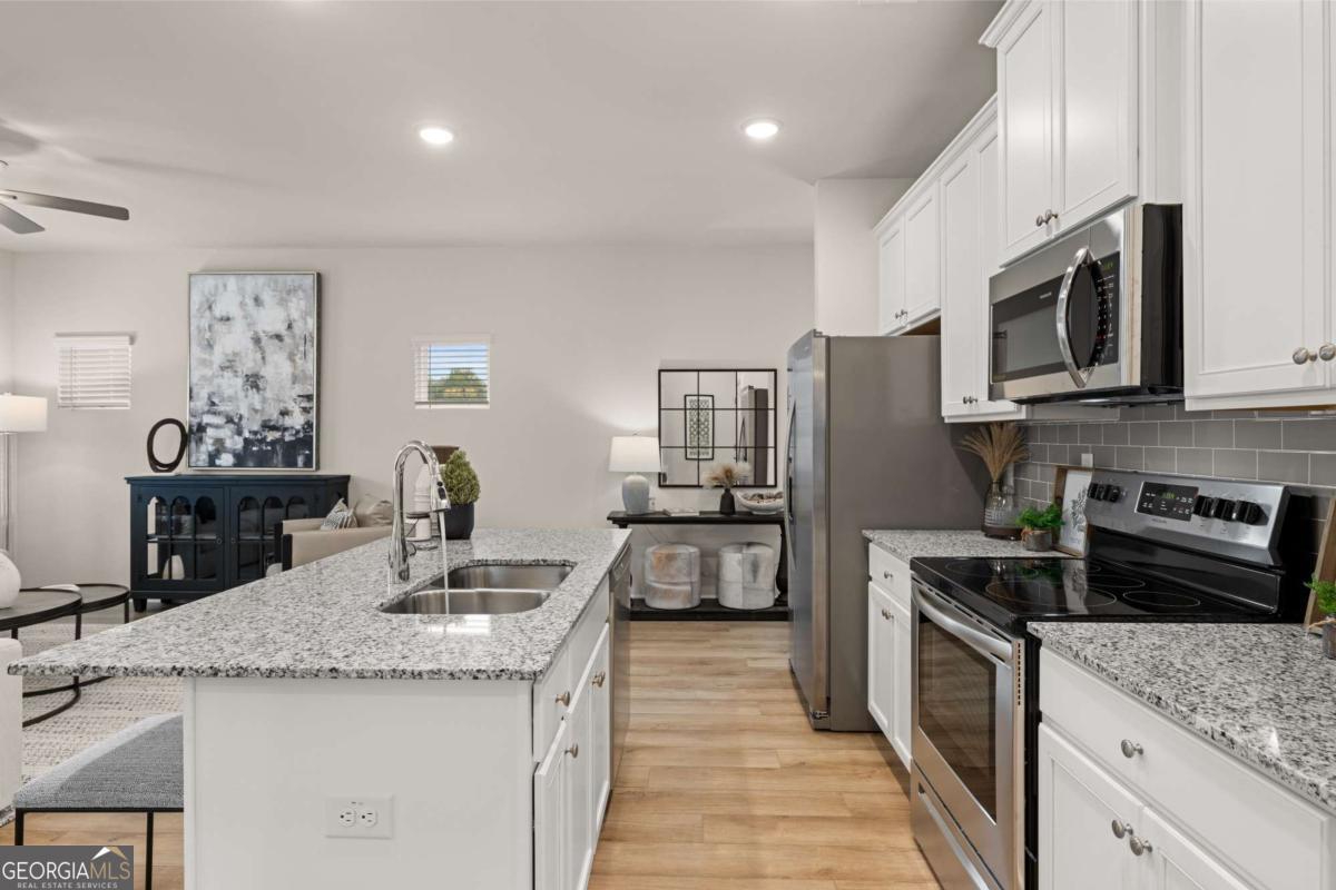 Quik Move-in Modern Luxury Edmund plan This townhome is located in the desirable Rivershire Place community in Villa Rica. Thoughtfully designed with a modern open-concept layout, high ceilings, and a full smart home technology package. The kitchen features 42" cabinets, granite countertops, tile backsplash, stainless steel appliances, a large island, and pantry-perfect for everyday living and entertaining. The oversized owner's suite includes a spacious walk-in closet and a spa-inspired ensuite bathroom featuring a soaking tub and a separate oversized tiled shower. All rooms come equipped with 2" faux wood blinds for comfort and privacy. Prime Location: seconds from I-20 and Downtown Villa Rica, with a variety of shopping, dining, and recreation options nearby-including Sweetwater Creek State Park and Arbor Place Mall. Interior photos are stock images of the decorated model home with the same floor plan. Schedule your showing today to tour the actual home!
