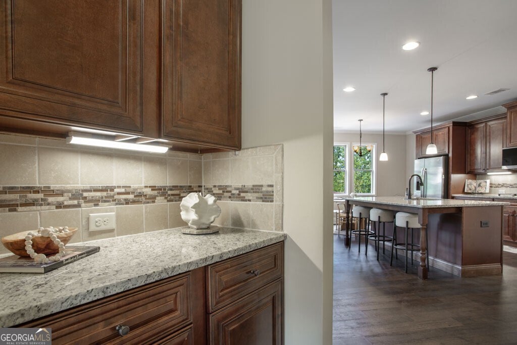 Congratulations, you've finally found THE HOUSE where every detail is designed for comfort, connection, and convenience. This beautifully updated 6-bedroom, 5-bath retreat overlooks a serene forest, offering a rare blend of privacy and community living. The full daylight basement features durable wood tile and multiple flex spaces. The main level boasts a guest bedroom, perfect for grandparents or out-of-town guests. This home offers the space and versatility every lifestyle needs. Plus, it may just be the GREATEST INVESTMENT you ever make with Medley, the exciting mixed-use development, scheduled for completion in late 2026, less than 5 minutes from your front door. Let's talk more about why this house is so special... Step inside and you're greeted by a flood of natural light and open spaces that immediately put you at ease. The backdrop of lush trees through the two-story living room windows creates a calming retreat you'll look forward to coming home to every day. Morning coffee on the deck feels like a getaway, yet the energy of city life is just minutes away. The spacious kitchen, with its brand-new solid wood cabinets, new appliances, and generous storage, flows seamlessly into the vast living area, perfect for hosting holiday parties, lively game nights, or quiet evenings. Upstairs, you'll find 3 additional bedrooms plus the expansive master bedroom suite with a spa-like bathroom, complete with soaking tub, double vanities, granite countertops and an oversized walk-in closet. The fully finished basement extends your living space with yet another bedroom and updated bathroom, plus room for movie nights, game-day entertaining, or a teen hangout, while the tiled flooring ensures both style and durability. The flex spaces in this home offer endless options for a home office, playroom, or gym. Community amenities add to the lifestyle: enjoy the pool and playground just down the street, perfect for summer afternoons and connecting with neighbors. And don't forget Medley, the exciting mixed-use development opening in late 2026! You'll soon have even more shopping, dining, and entertainment less than 5 minutes from your doorstep. Recent upgrades include: new engineered hardwood flooring with sound-absorbing underlayment, new lighting, full replacement of original hot-water PEX piping, fresh interior and exterior paint, and a Moen Flo Smart Water Monitoring System. This home truly is move-in ready.