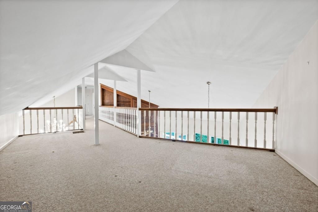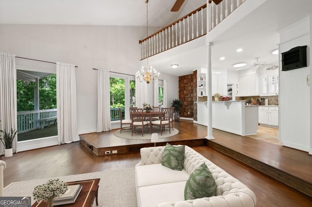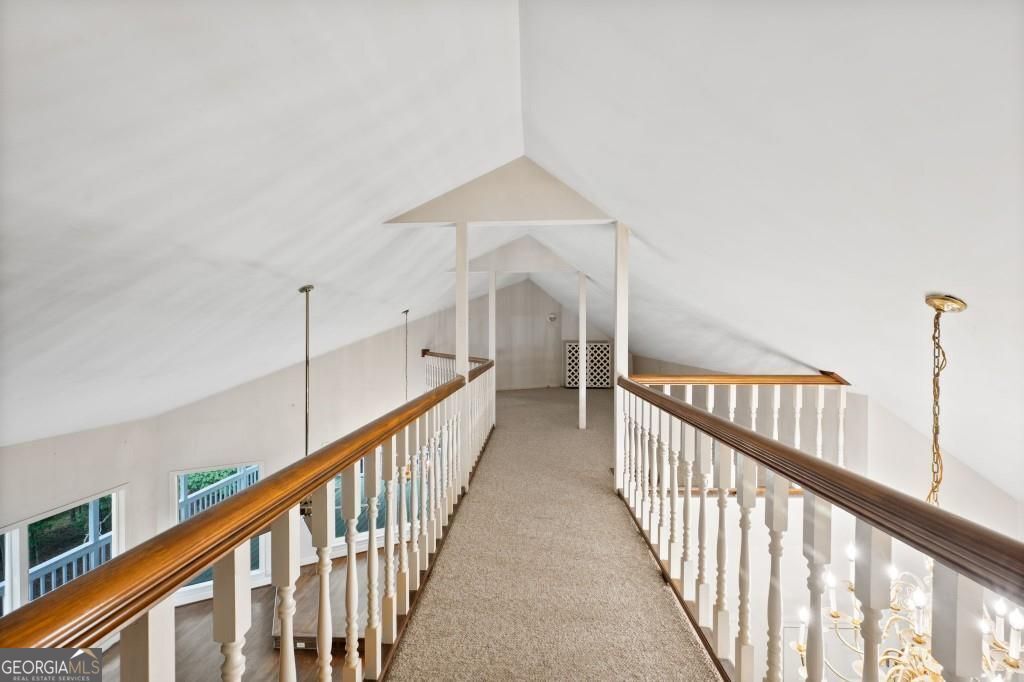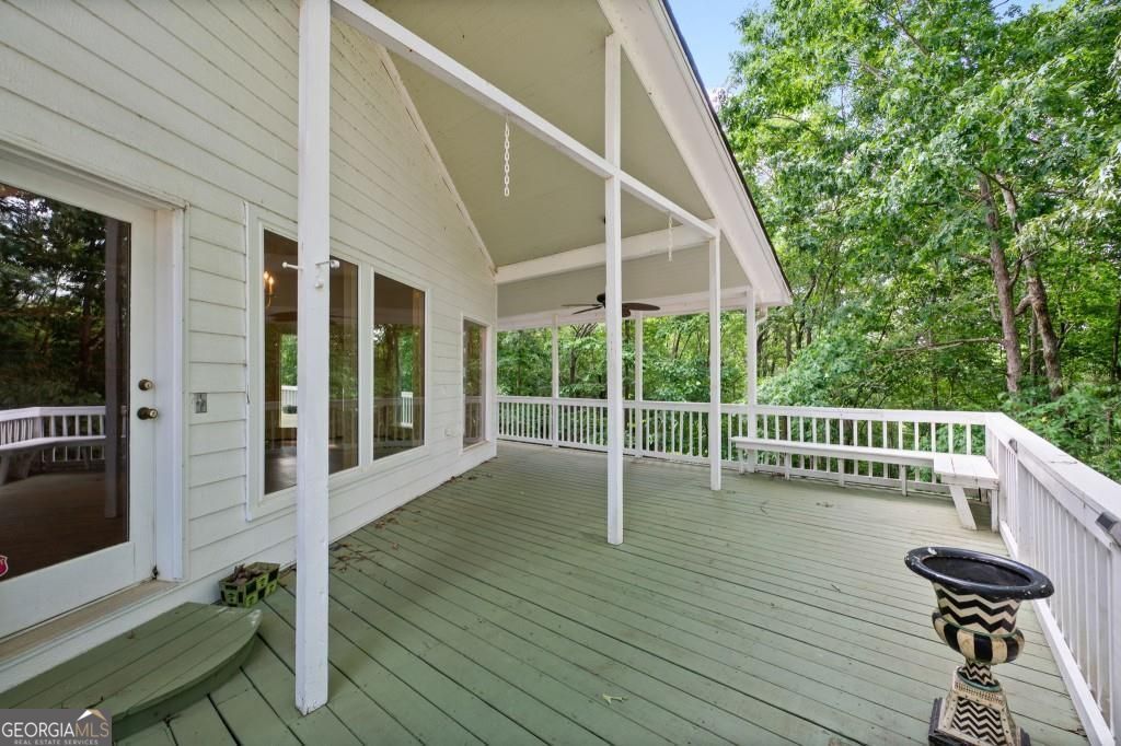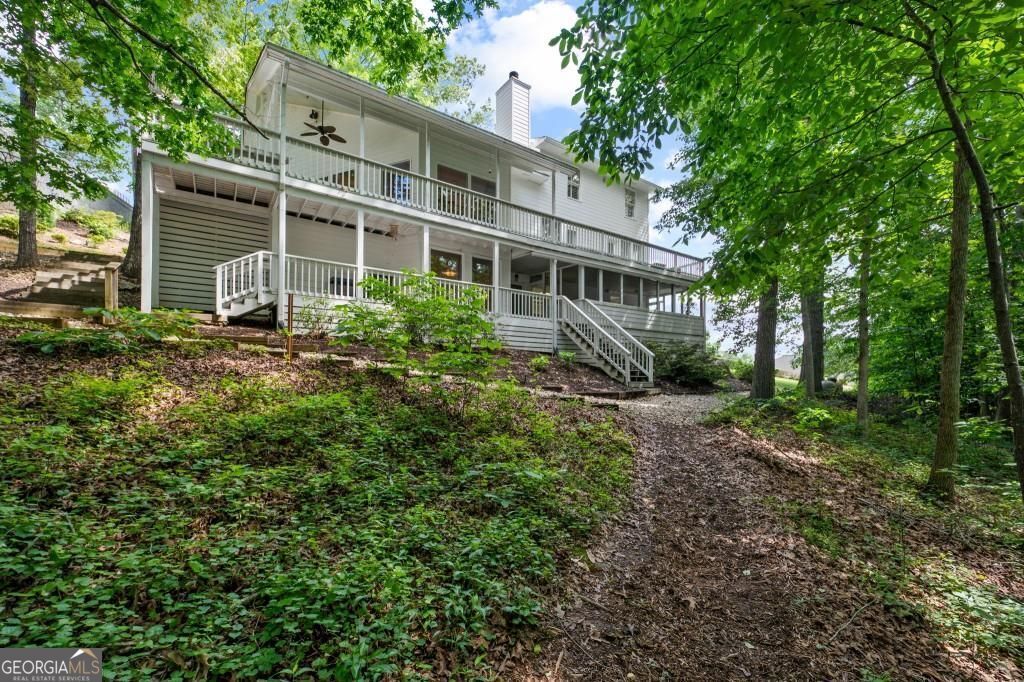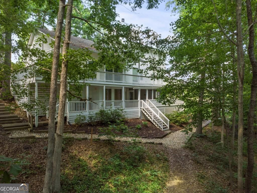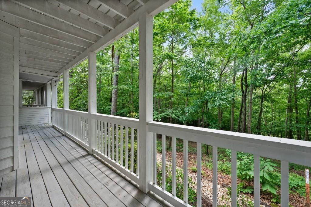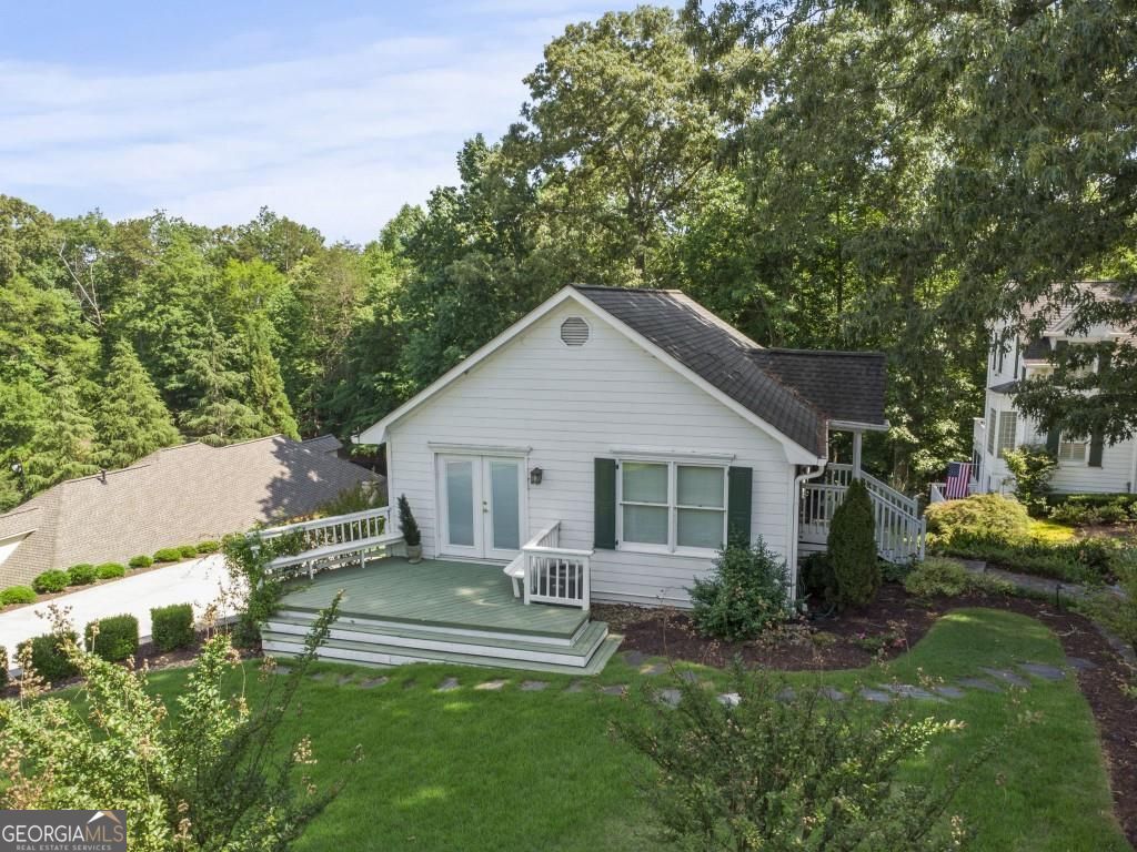 PRIVATE GUEST HOUSE, PRIVATE DOCK, DEEPWATER, NO HOA, EASY COMMUTE TO ATL, WHOLE HOUSE GENERATOR!! Nestled at the end of a tranquil cul-de-sac, this stunning residence boasts direct access to deep water with a PRIVATE (not shared) 2-slip dock, complete with electrical hookups. This magnificent home features four spacious bedrooms and four full baths, perfectly designed for comfort and luxury. Upon entering, you'll be greeted by a breathtaking two-story great room that provides an open and airy ambiance. The updated kitchen is a chef's delight, equipped with modern appliances and complemented by a butler's pantry for additional storage and prep space. Enjoy serene lakeside views from the screened porch, which features a relaxing hot tub. This home is equipped with a Generac generator ensuring uninterrupted power, an irrigation system for lush landscaping, and an updated electrical system for your peace of mind. Inside, unwind in one of the luxurious jacuzzi tubs, and appreciate the several new windows that flood the space with natural light. The exterior boasts siding replaced just five years ago, ensuring both durability and curb appeal. The gentle, lit path to the dock makes evening strolls to the lake a delight. The upstairs deck offers a perfect spot to enjoy sunsets over the water. Hardwood floors run throughout the home, adding warmth and elegance to every room. Additionally, this property includes a separate carriage house (ADU- Additional Dwelling Unit) above a spacious three-car garage. The carriage house provides 768 square feet of comfortable living space, featuring one bedroom, one full bath, a fully-equipped kitchen, and a cozy living room. With no HOA restrictions, this lakefront haven offers the perfect blend of privacy and luxury, making it an ideal retreat for family and friends. Come and experience the unparalleled beauty and comfort of lakeside living at its finest.