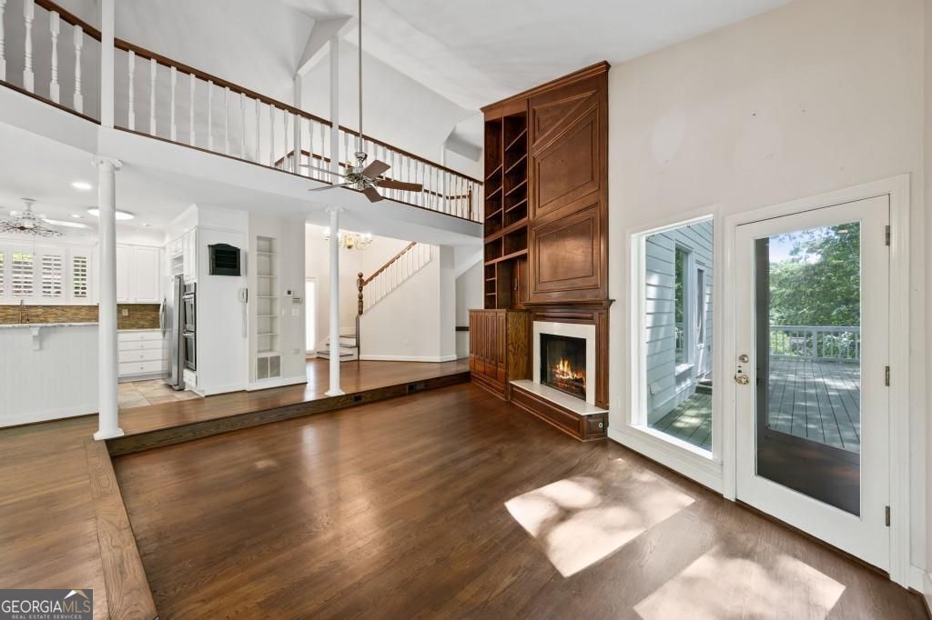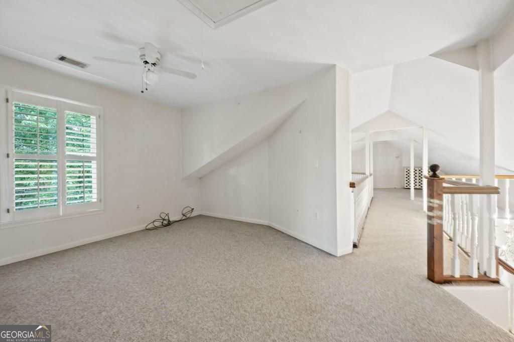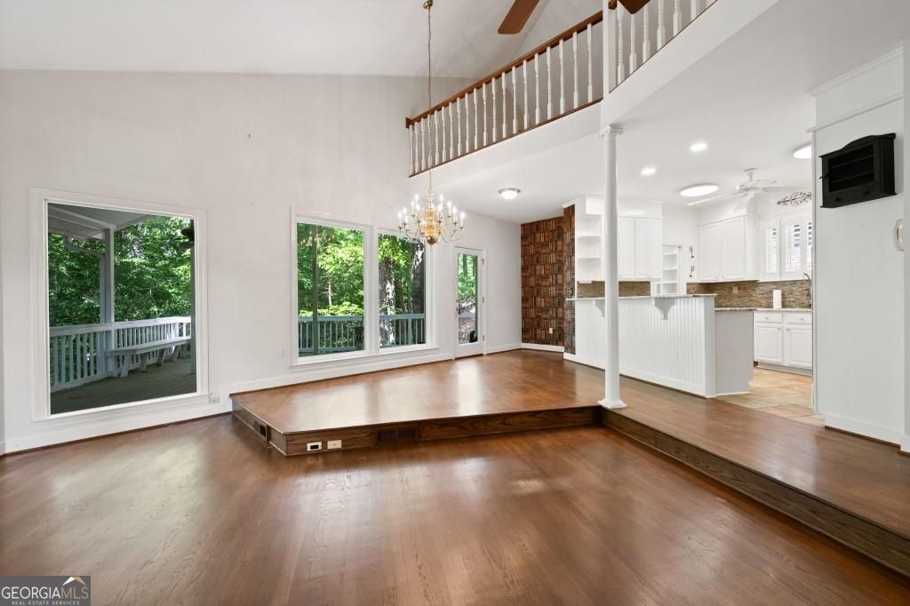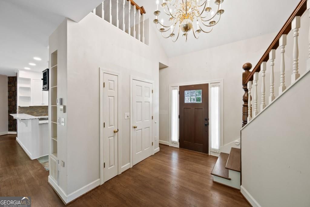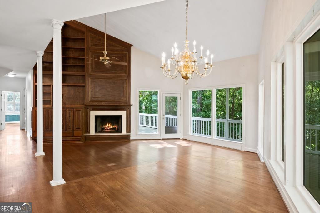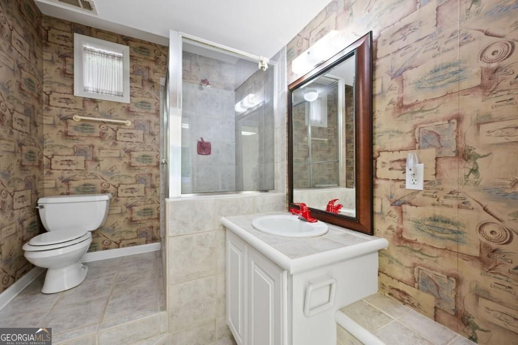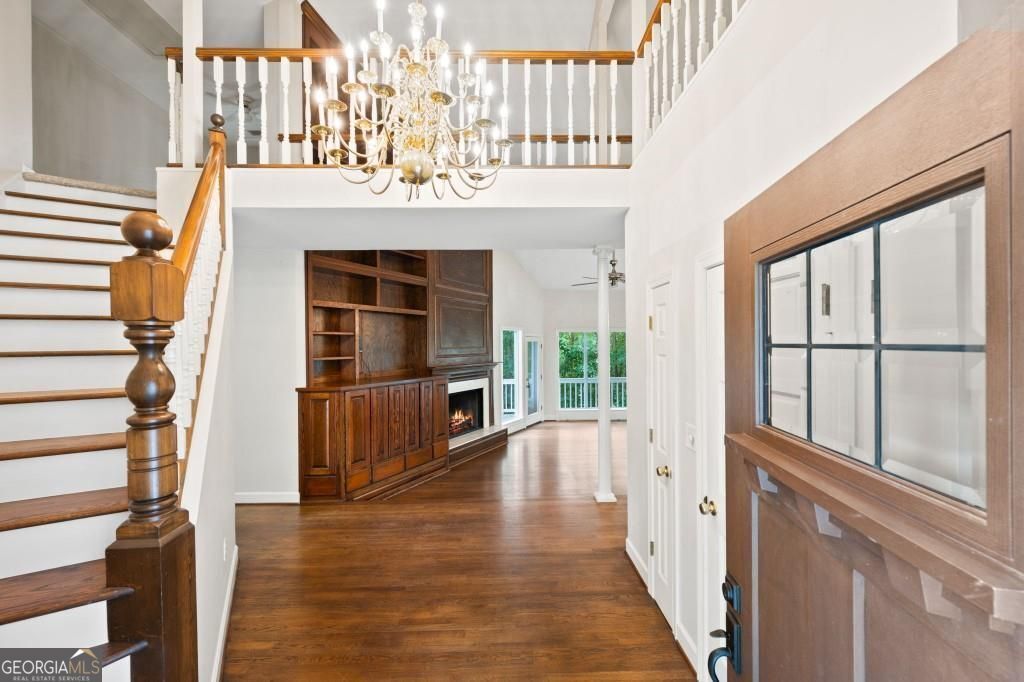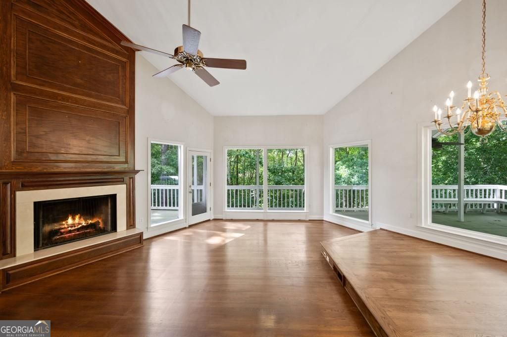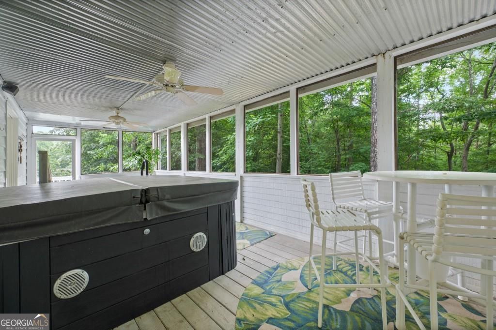 PRIVATE GUEST HOUSE, PRIVATE DOCK, DEEPWATER, NO HOA, EASY COMMUTE TO ATL, WHOLE HOUSE GENERATOR!! Nestled at the end of a tranquil cul-de-sac, this stunning residence boasts direct access to deep water with a PRIVATE (not shared) 2-slip dock, complete with electrical hookups. This magnificent home features four spacious bedrooms and four full baths, perfectly designed for comfort and luxury. Upon entering, you'll be greeted by a breathtaking two-story great room that provides an open and airy ambiance. The updated kitchen is a chef's delight, equipped with modern appliances and complemented by a butler's pantry for additional storage and prep space. Enjoy serene lakeside views from the screened porch, which features a relaxing hot tub. This home is equipped with a Generac generator ensuring uninterrupted power, an irrigation system for lush landscaping, and an updated electrical system for your peace of mind. Inside, unwind in one of the luxurious jacuzzi tubs, and appreciate the several new windows that flood the space with natural light. The exterior boasts siding replaced just five years ago, ensuring both durability and curb appeal. The gentle, lit path to the dock makes evening strolls to the lake a delight. The upstairs deck offers a perfect spot to enjoy sunsets over the water. Hardwood floors run throughout the home, adding warmth and elegance to every room. Additionally, this property includes a separate carriage house (ADU- Additional Dwelling Unit) above a spacious three-car garage. The carriage house provides 768 square feet of comfortable living space, featuring one bedroom, one full bath, a fully-equipped kitchen, and a cozy living room. With no HOA restrictions, this lakefront haven offers the perfect blend of privacy and luxury, making it an ideal retreat for family and friends. Come and experience the unparalleled beauty and comfort of lakeside living at its finest.
