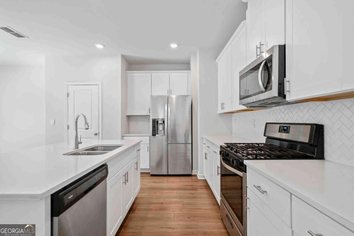 Welcome to this bright and modern Smart Home in the desirable Parc Terrace community, situated in a family-friendly area zoned for top-rated Cherokee County schools. Just minutes from I-575, Cherokee Aquatic Center, One Life Fitness, Alpine Bakery, Publix, The Outlet Malls, and charming Downtown Woodstock. Step inside to discover an inviting, open-concept floor plan. Spacious kitchen with white cabinets, a massive island, and a layout that connects beautifully to the rest of the home! You'll love a spacious primary suite upstairs and a large loft-great for a home office, playroom, or media space. Good-sized secondary bedrooms. There's room for everyone! This house features: high ceilings & recessed lighting, luxury vinyl plank flooring, granite countertops & stainless appliances, a tankless water heater, remote climate control & keyless entry, washer & dryer, etc. Relax on your back patio or enjoy peaceful walks around this quiet neighborhood, or visit the private dog park-perfect for your furry friends! Schedule your showing today-homes like this don't last long in Holly Springs!