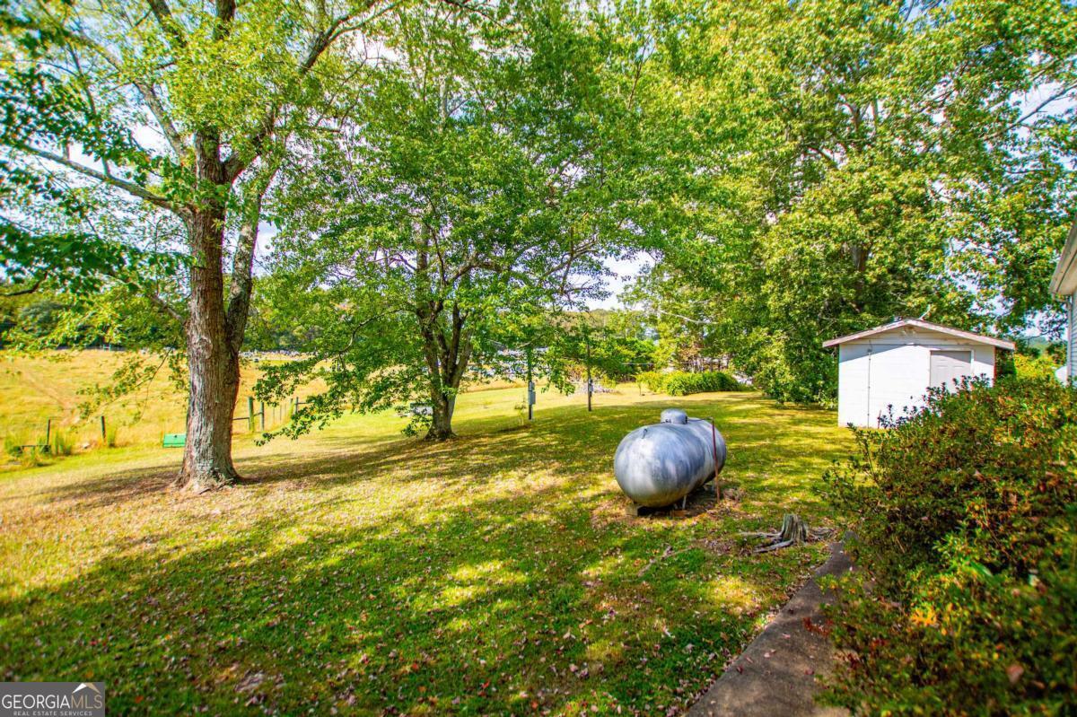 This is an absolutely gorgeous setting in beautiful Ranburne, Alabama. Low maintenance vinyl sided double wide on paved road with a metal roof on over an acre. 3 bedroom, 2 baths, LVP flooring, fireplace, dining and laundry rooms, and attached double carport. Small storage building/workshop with power, fruit vines, and beautiful views.