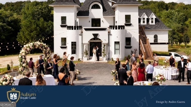 HUGE PRICE REDUCTION!! Exciting new progress is being made on this unique Castle "De Kennedy"! Features a huge Owner's Suite, and an abundant flex space to be finished out to buyer's specifications. 2 Upper Levels offers three bedrooms and a game room, all with baths and access to balconies. The transitional areas are still in progress. The home is constructed with ICF concrete reinforced with rebar, making it sound and storm proof, with a high level of construction throughout. The design allows for up to 2 large kitchens and includes a massive unfinished basement that could serve as an entire separate level with additional bedrooms, kitchen, and living areas. Set on 7 beautiful acres with a winding river in the backyard, there is also potential to construct a second smaller home on the property. With many outside balconies and rooftop areas for outdoor enjoyment, this property offers endless possibilities-perfect for a VRBO, event venue, or even a winery. Its location is highly convenient to Chateau Elan and surrounded by large estate homes. Currently, the home is being used as a movie set for the film "Late Night at the Mafia", creating great income for the seller. More pictures to come as completion continues! **Owner financing available at 30% down.