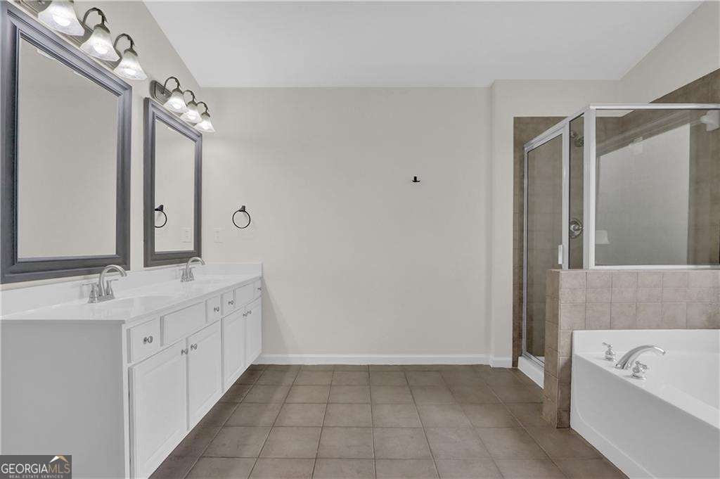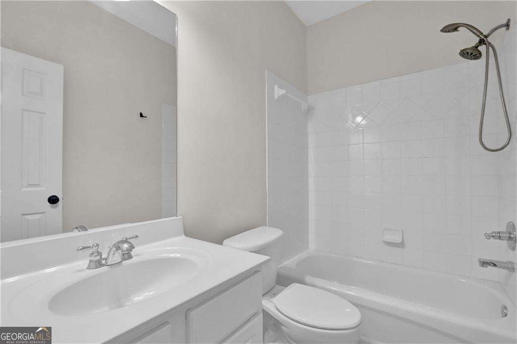 This one will make you say "this is it!". FIVE FULL BEDROOMS AND THREE FULL BATHROOMS in desirable Mableton! This tastefully renovated home is ready for it's next tenants. A grand two story foyer opens to the dining room, family room with fireplace, and eat-in-kitchen, The kitchen has newer appliances, solid surface countertops, and a great peninsula for entertaining or watching the kids do their homework. A great sized bedroom on the main is complete with a full bathroom next door, which is a perfect guest room for when the in-laws come into town! A full two-car garage completes the main floor. Upstairs there's a total of four bedrooms, and two full bathrooms, plus the greatest 21st century invention- an upstairs laundry room! The master bedroom is spacious, with a vaulted ceiling, a nice sized sitting area, and large windows looking over your private backyard. The master bathroom feels like a spa with a separate shower, jetted tub, and beautiful floors. The master closet will inspire even the most disorganized person with all of the beautiful built ins with cabinets and drawers. It is definitely a WOW closet, and so unheard of for this price point. The back yard is serene and private, with a level patio, grassy area, and then up top is the parent's getaway- perfect for a firepit when the kids go to bed. This well-kept neighborhood has a pool, tennis court, and basketball court, so in other words- a great place to raise a family! Run, don't walk, and make 5891 Buckner Creek your next home.