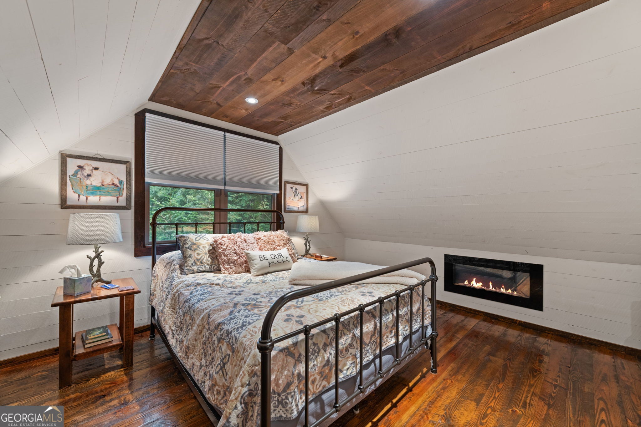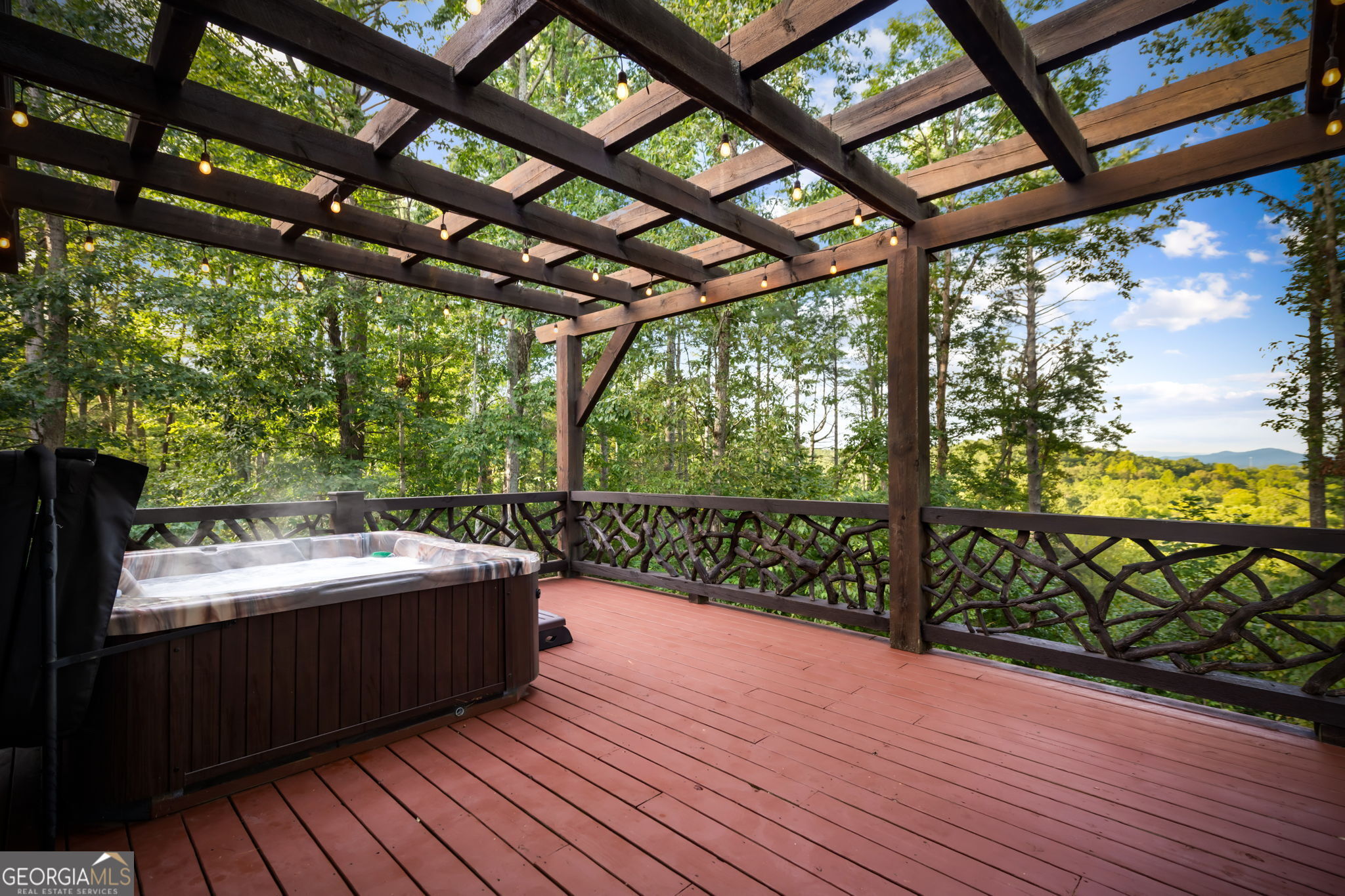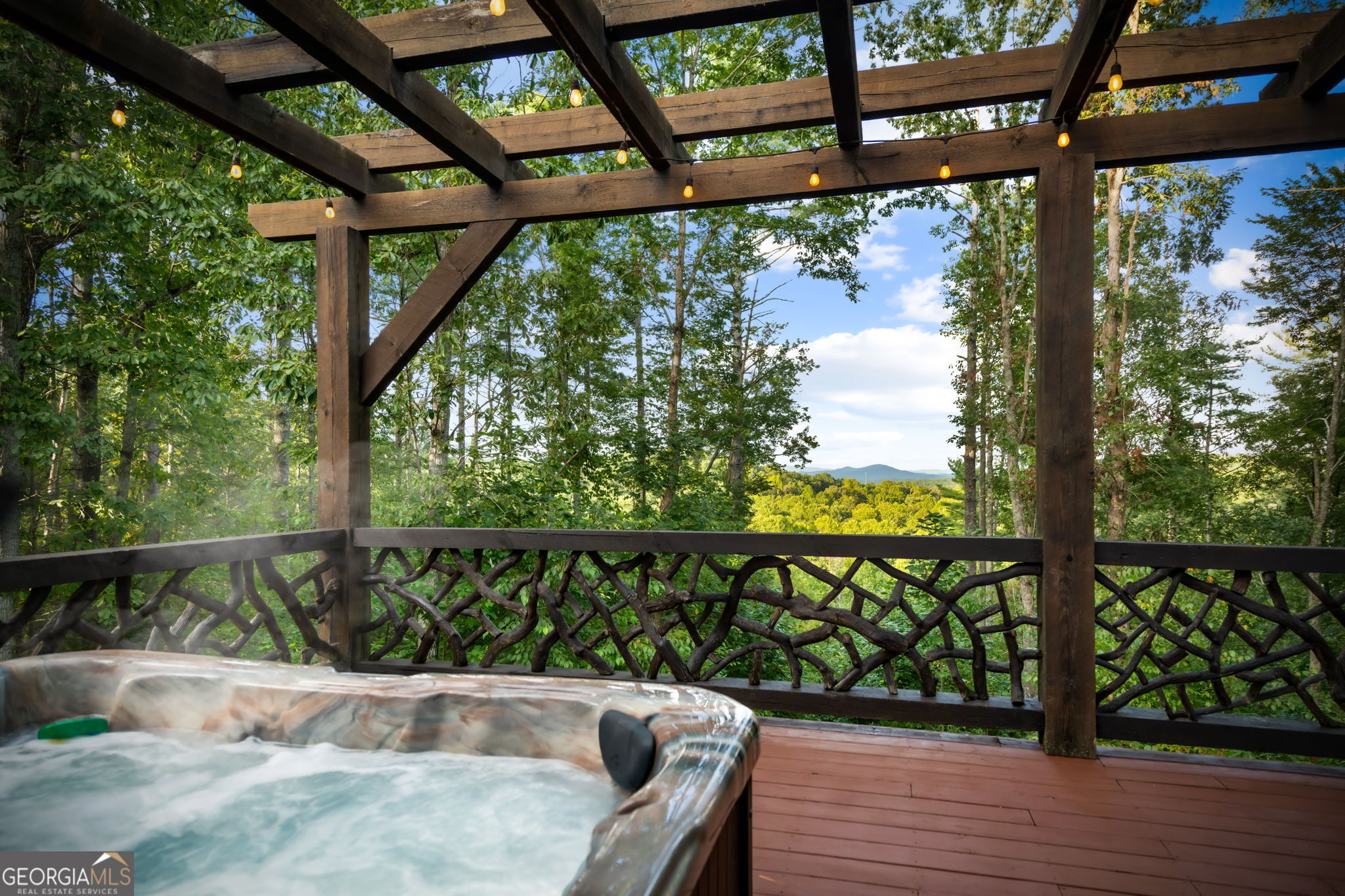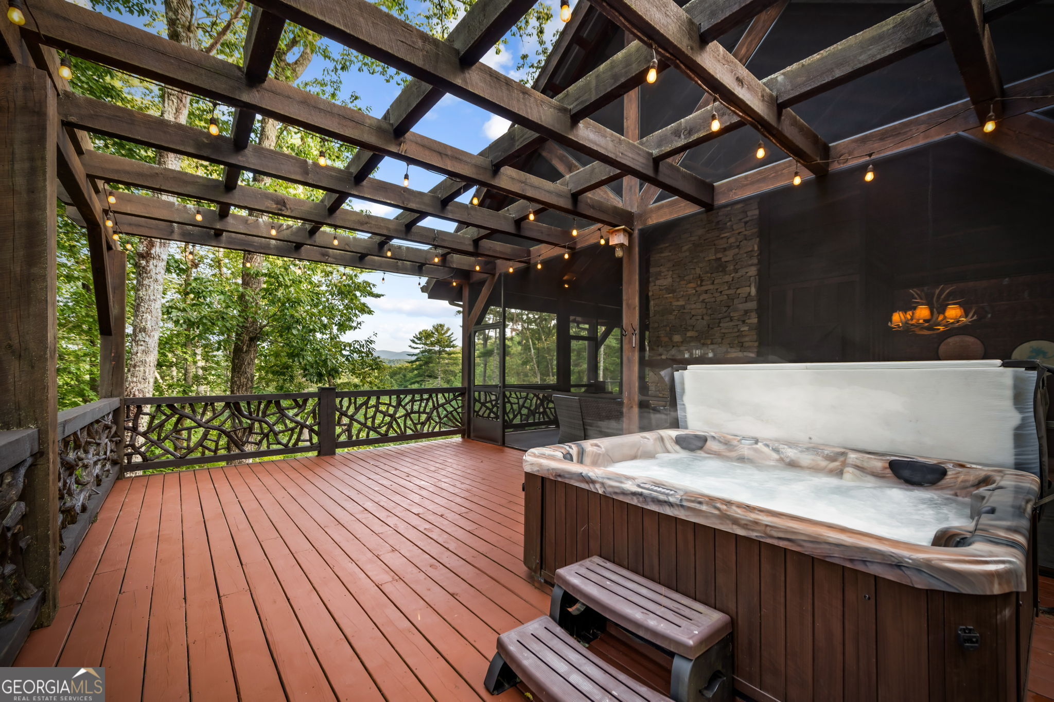Indulge in this exquisite six-acre mountain estate where privacy, natural beauty, and refined luxury converge. Surrounded by towering trees and sweeping mountain vistas, this turn-key retreat offers tranquility and grandeur at every turn. The spacious residence features four bedrooms and three full baths, thoughtfully designed to blend sophistication with comfort. The main level boasts two primary suites with spa-like en suite baths. One offers walls of windows framing breathtaking views, a walk-in closet, dual vanities, and a custom rock shower with a cascading waterfall. The other showcases a cozy linear fireplace and upscale finishes, ideal for relaxation or hosting. At the heart of the home, the gourmet kitchen is outfitted with Viking appliances, farmhouse sink, custom wood cabinetry, stone accents, and a large island perfect for gatherings. A formal dining area sets the stage for intimate dinners and holiday celebrations. Throughout, rustic charm meets modern elegance-barn wood beams, artisanal accent walls, and rock fireplaces are paired with oversized windows that fill the home with light and mountain panoramas. Outdoor living is just as spectacular. An expansive wrap-around deck captures sunsets and breezes, while the screened porch with fireplace and shaded pergola with hot tub invite year-round enjoyment. The lower level is an entertainer's dream with a full wet bar, recreation room, and two guest suites with a custom rock bath. A sauna, fire pit, and sparkling pool elevate the retreat. Above the two-car garage, a versatile fifth bedroom with private bath offers additional space for guests, office, or studio. Just minutes from Downtown Blue Ridge, with its boutique shopping, fine dining, and outdoor adventures, this estate embodies the best of mountain living-timeless elegance surrounded by unmatched natural splendor.