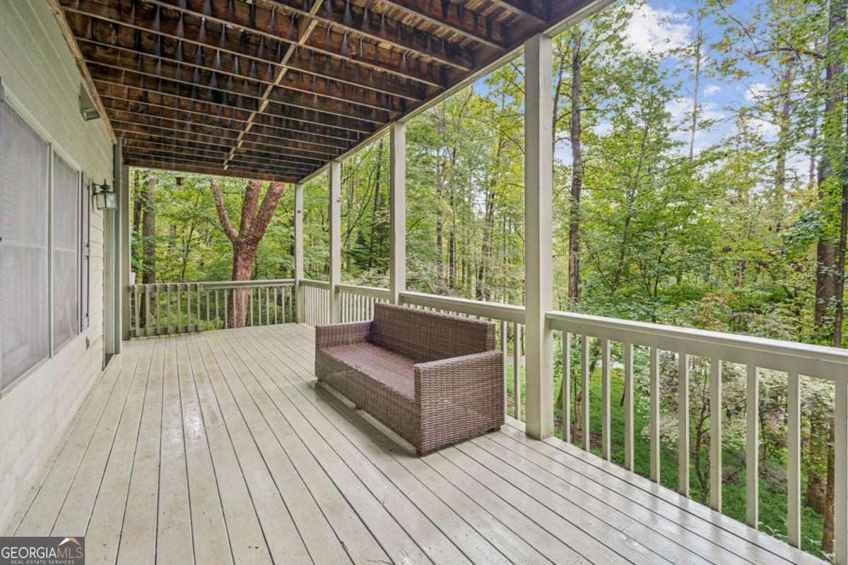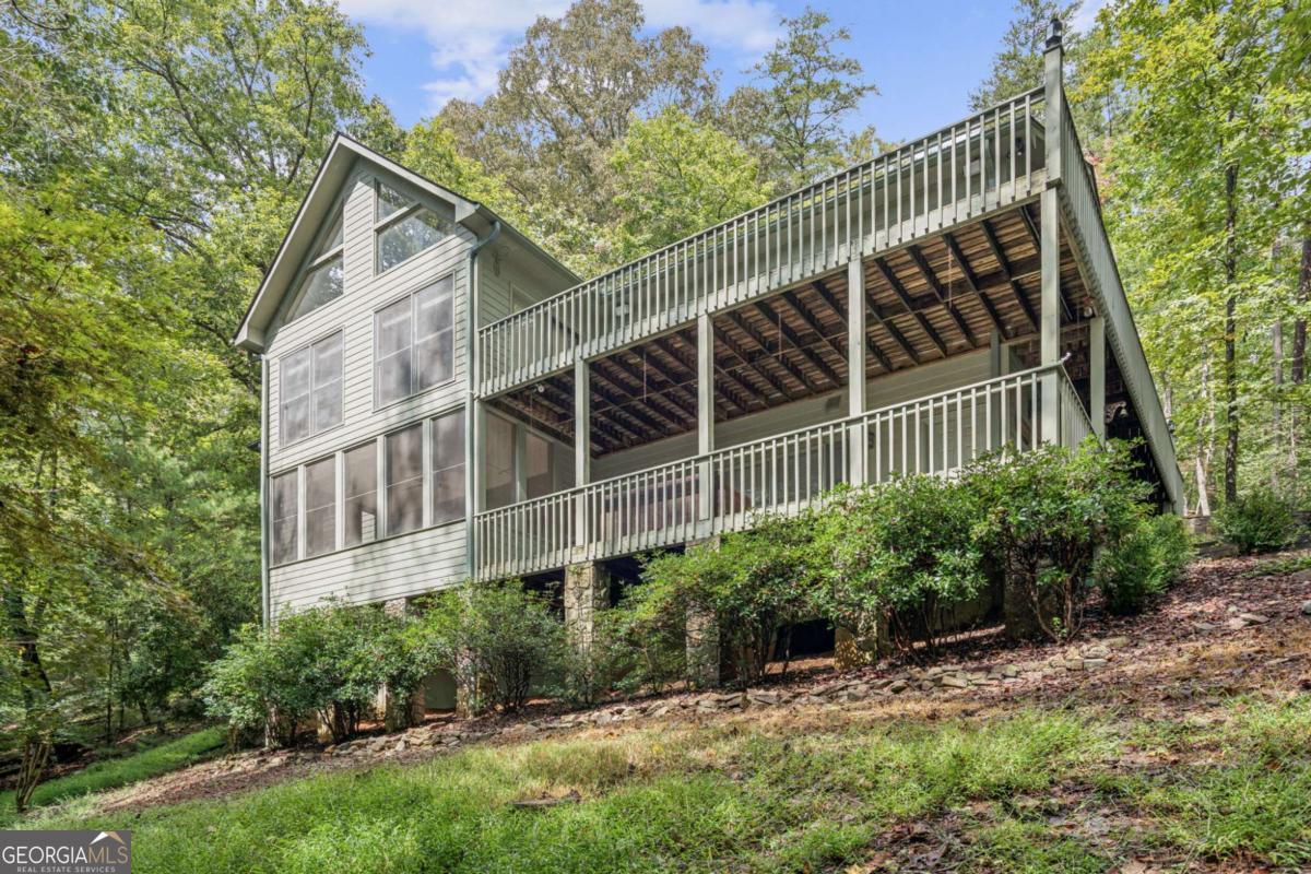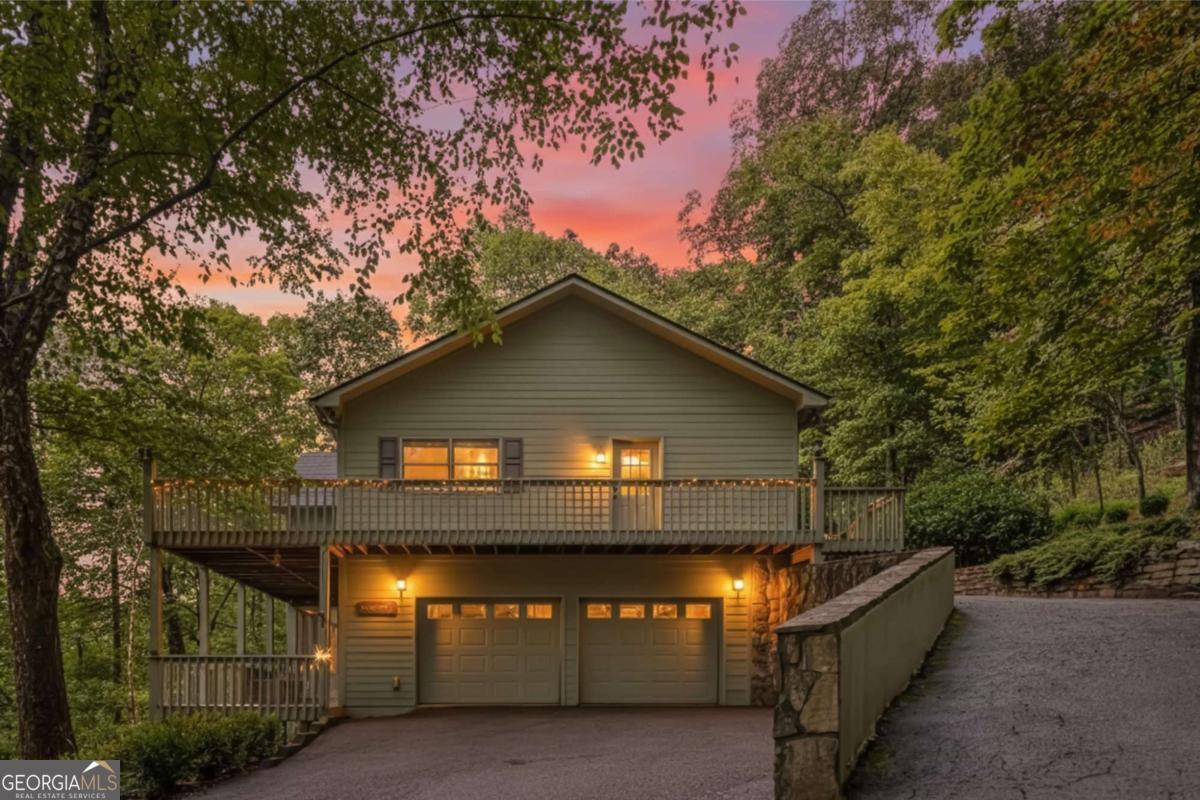 Tucked away in the gated Skylake community, this 4-bedroom, 3-bath mountain home sits on two combined lots totaling 3.57 acres, offering both space and privacy alongside some of North Georgia's best amenities. Relax on the expansive wraparound porch or step inside to an open-concept living area where the kitchen, dining, and great room come together under soaring ceilings. A dramatic stone fireplace and floor-to-ceiling windows create a warm, light-filled centerpiece for gatherings. The kitchen features a spacious island with cooktop, hardwood floors, and plenty of cabinetry. The main level hosts a generous owner's suite with tray ceiling, double-vanity bath, and tiled finishes. A second bedroom and full bath, plus a flexible laundry/bonus room that can serve as an office, complete this floor. The finished daylight basement expands the living space with two more bedrooms, a third full bath, and a large living area with wet bar. From here, enjoy morning coffee while watching deer wander past or take in views of the neighboring horse pastureland and tranquil green space. Skylake itself provides a lifestyle beyond compare: two lakes for fishing and kayaking, a clubhouse, swimming pool, tennis and pickleball courts, playgrounds, stables, a dog park, and more than 12 miles of hiking trails. Residents also enjoy a gated entrance with 24-hour security and amenities like boat, kayak, and RV storage. (Note: short-term rentals are not allowed.) If you've been waiting for a true mountain retreat with a strong community and resort-style amenities, this Skylake home is ready to welcome you.