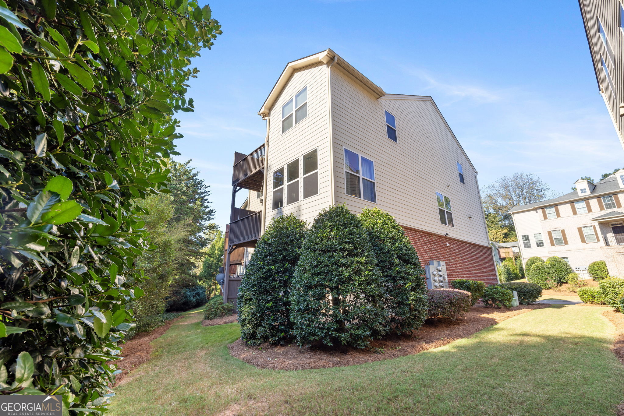 Welcome home to this beautifully refreshed tri-level end-unit in sought-after West Cobb-just minutes from The Battery, Truist Park, and Cumberland Mall. Freshly painted, this 3-bed, 3.5-bath townhome shines with natural light, modern updates, and custom boho-inspired design touches throughout. Step inside to find an open layout with upgraded lighting, hardwood & tile flooring, and stylish feature walls that make every space feel unique. The eat-in kitchen boasts stone countertops, stainless appliances, and flows into the dining area and bright sunroom-perfect for everyday living or entertaining. The oversized primary suite is a true retreat with a sitting area, spa-like ensuite featuring a massive rain shower, and a large walk-in closet. Secondary baths have been tastefully updated, while the finished basement offers flexible living space for guests, a home office, or playroom. Outdoors, enjoy a private deck and a landscaped backyard-ideal for relaxing or hosting. With Laurel Lake, local parks, I-285, and top shopping & dining nearby, this move-in-ready townhome delivers the perfect balance of convenience, comfort, and style.
