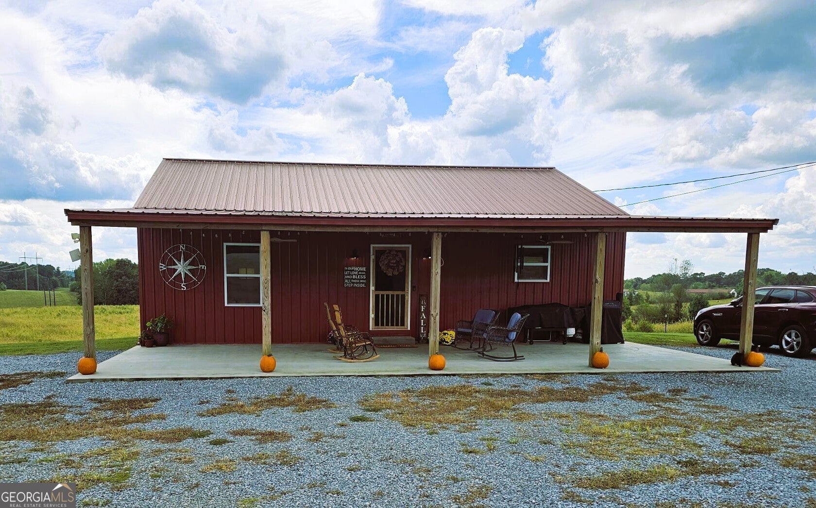 Priced below appraised value- A Peaceful Retreat with Room to Grow - Just Minutes from Buchanan. Welcome to this charming 1,249 sq ft Barndominium tucked away on 3.64 serene acres just off Hwy 27, north of Buchanan, with easy access to I-20. Designed with simplicity and function in mind, this metal-sided home features an open-concept layout with two spacious bedrooms, a full bath with a tiled shower, and a convenient laundry area. The kitchen is a standout with stainless steel appliances, generous cabinet space, and a large wall pantry perfect for stocking up. Downstairs, the 1,249 sq ft unfinished basement has 10-inch thick poured concrete walls and floors-ideal for storage or as a storm shelter. An unfinished attic with flooring adds even more storage flexibility. Step outside and enjoy the best of country living: a 16' x 40' covered back porch overlooking open pastureland and breathtaking sunsets, plus a matching front porch with a low-maintenance concrete floor. A 50' x 70' barn with electricity provides ample space to park your RV, boat, or equipment. The property also includes a 300-foot deep drilled well (installed in 2022), ensuring a reliable water supply. The property is fully fenced with a motorized gate for entry. With minimal upkeep, the land is perfect for gardening, farming, or hosting evening gatherings under the stars. Whether you're seeking a peaceful homestead, a weekend getaway, or a versatile space to make your own, this property offers endless possibilities. Come experience the quiet charm and natural beauty-this one's a must-see.