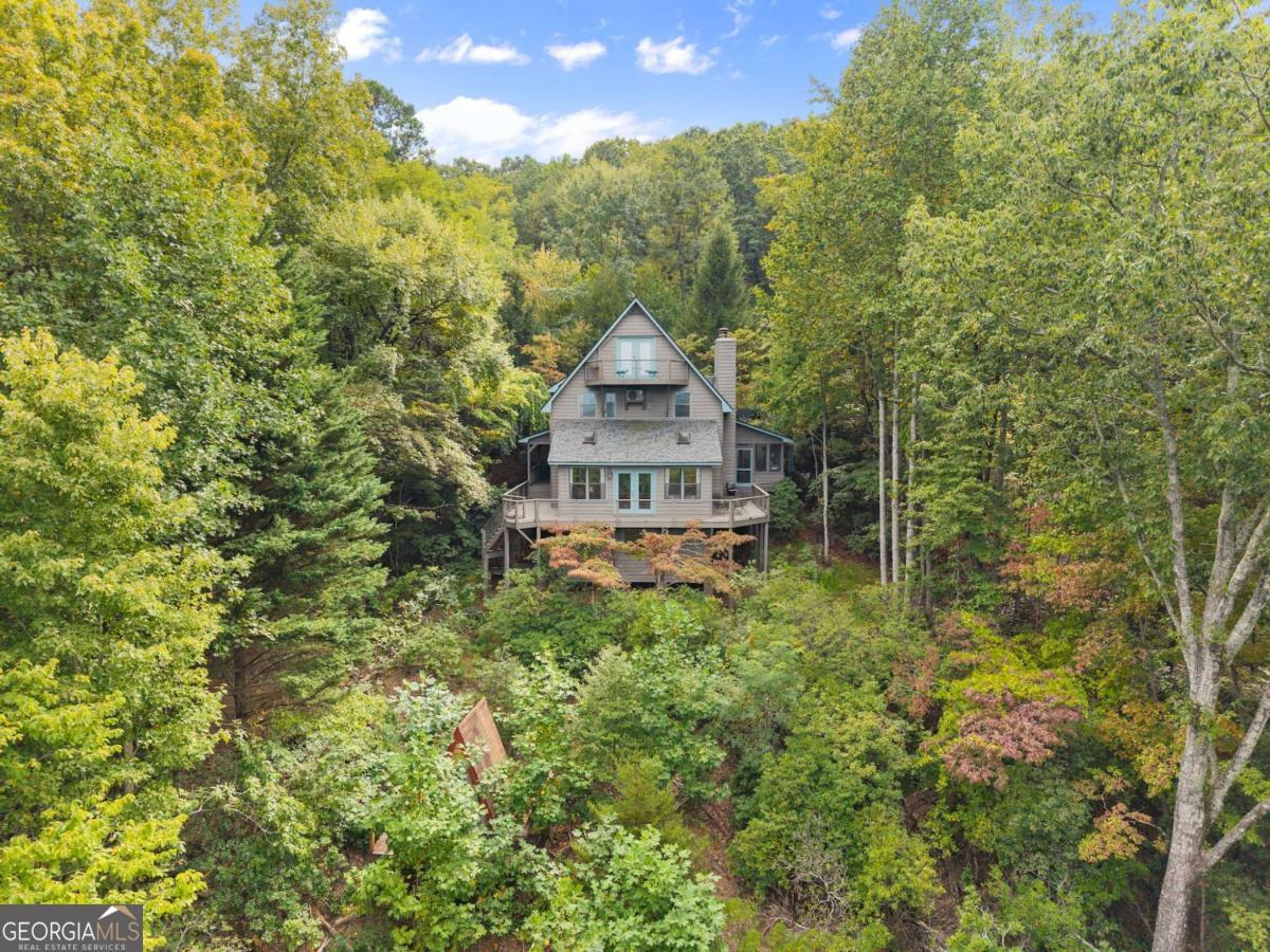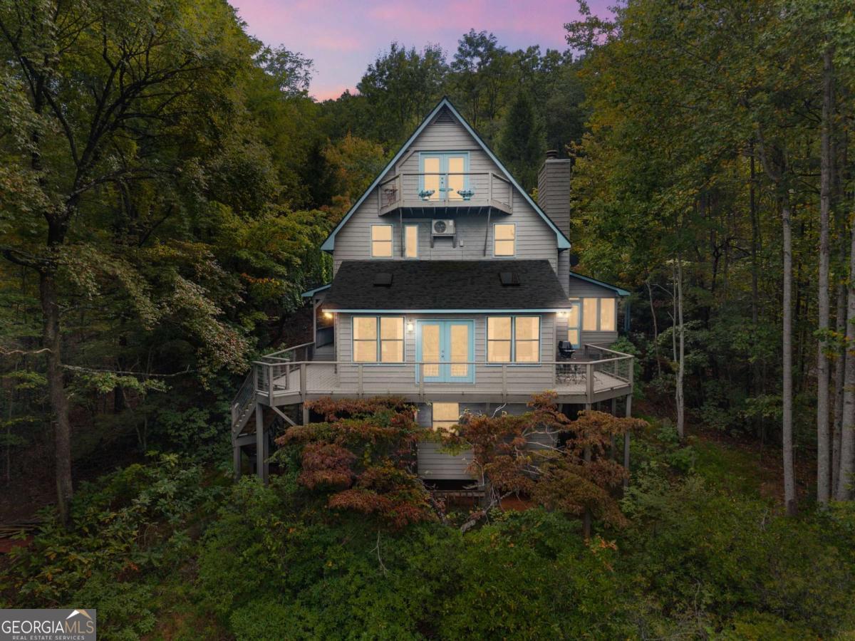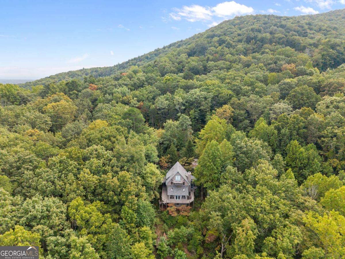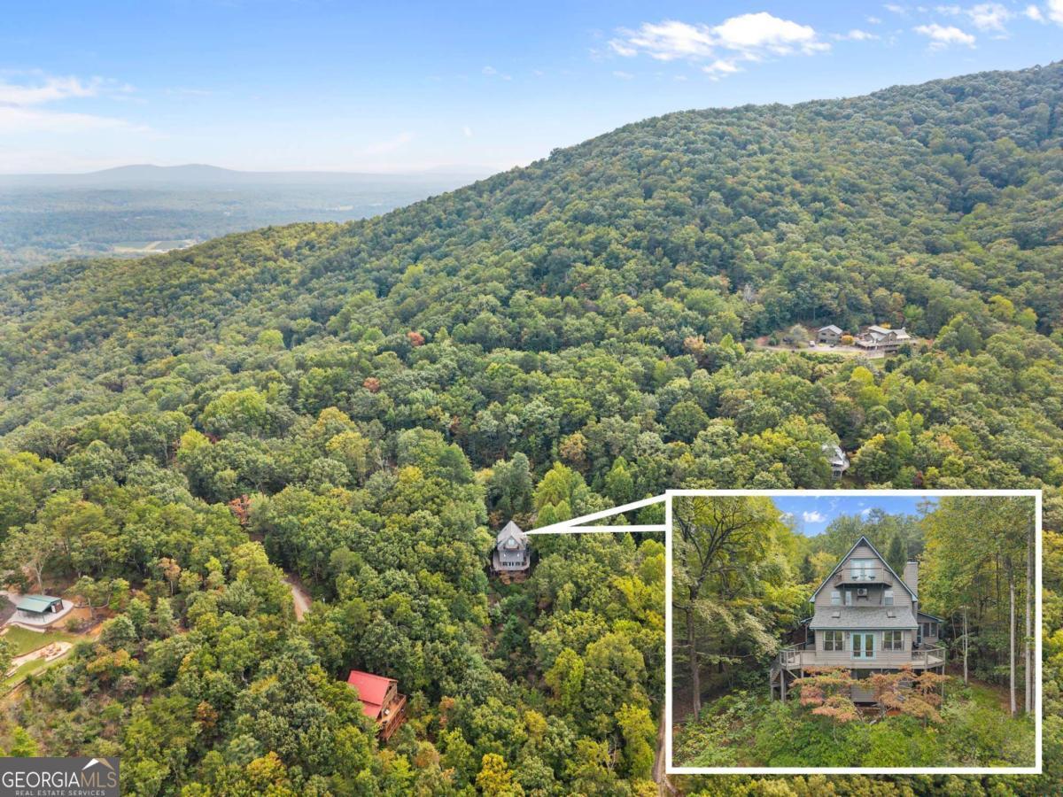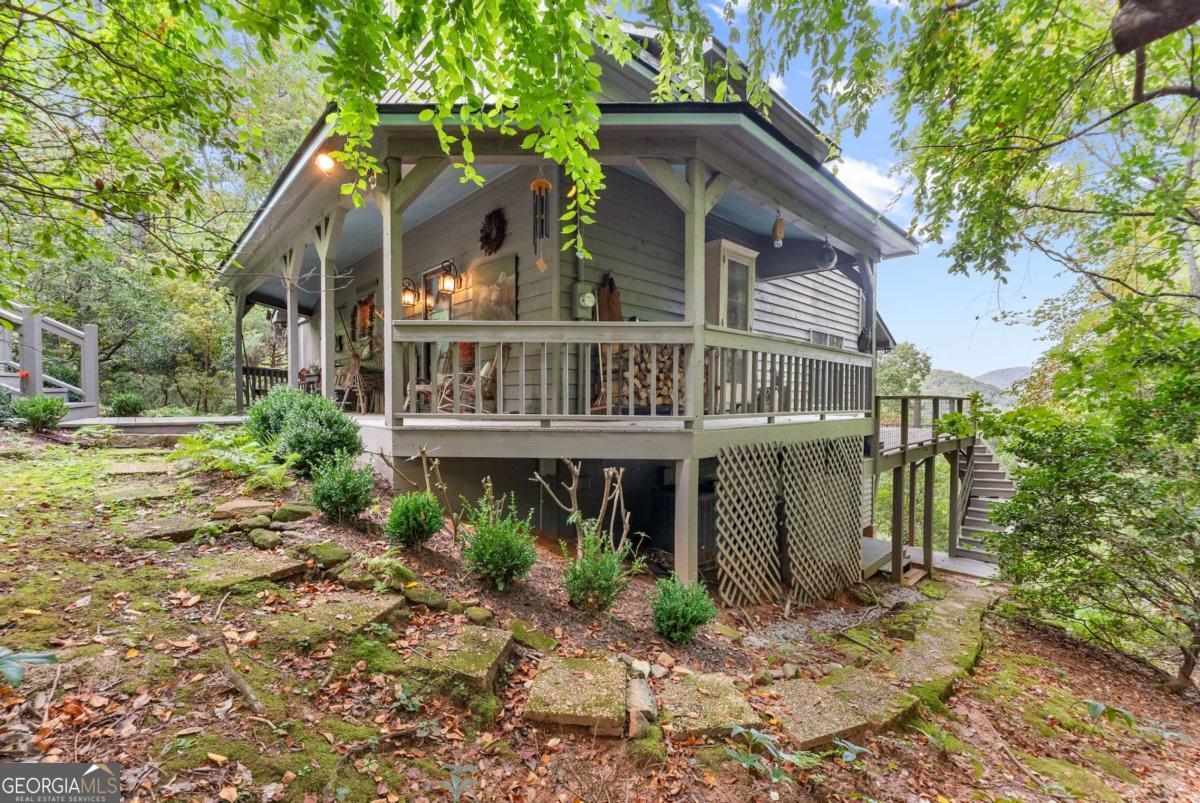 Perched atop Mount Yonah, this craftsman-style cabin captures sweeping, year-round views across nine mountain ranges. Set apart for ultimate privacy, it blends rustic character with modern comforts-ideal as a full-time retreat, private escape, or lucrative investment. The home's three levels balance open gathering areas with private retreats, all oriented toward the mountains beyond. On the main floor, a soaring stone fireplace and slate flooring set the tone, flowing seamlessly to the wraparound porch-partially screened for four-season enjoyment. Upstairs, the primary suite offers a true sanctuary with a new custom tile shower, a freestanding glass pedestal sink on a vintage base, and a private balcony where horizons stretch endlessly. Outdoors, the setting is as captivating as the views. Native plantings and mature greenery provide both beauty and privacy, while a circular gravel drive and stone archway create a storybook arrival. At the entrance, a whimsical architectural touch reminiscent of a fairy-tale gingerbread cottage hints at the magic waiting inside. With a freshly painted exterior, newer roof, and timeless character, this home is ready for its next chapter. Surrounded by natural wonders, the property is minutes from Helen's alpine village, scenic hiking trails, and world-class fishing on the Chattahoochee and Soque Rivers. Award-winning Serenity Cellars Winery is literally just down the road, adding to the charm and convenience. Whether you're savoring sunsets on the porch, exploring nearby trails, or sharing the mountain magic with guests, this property offers peace, privacy, and panoramic views that make it both a dream retreat and a highly desirable vacation rental opportunity.