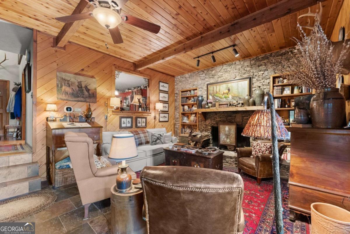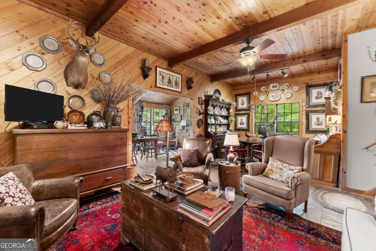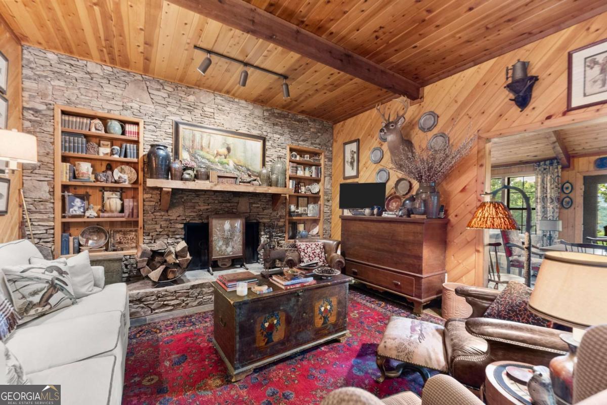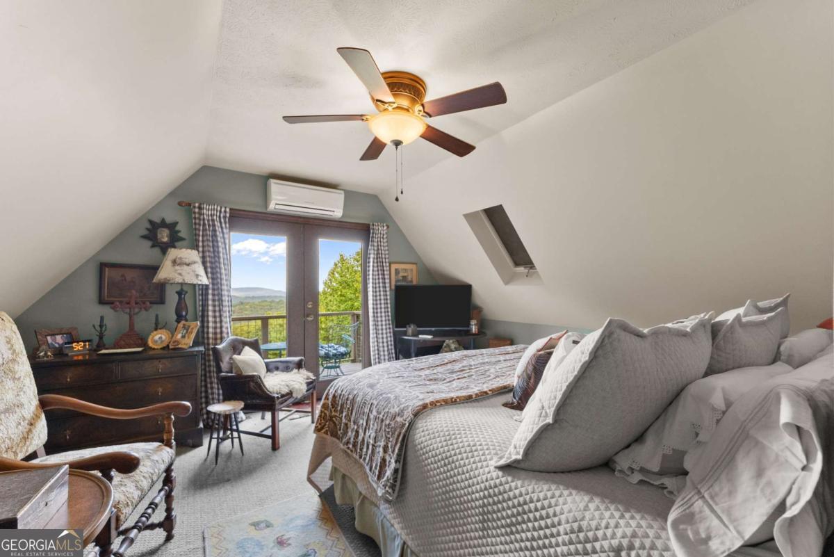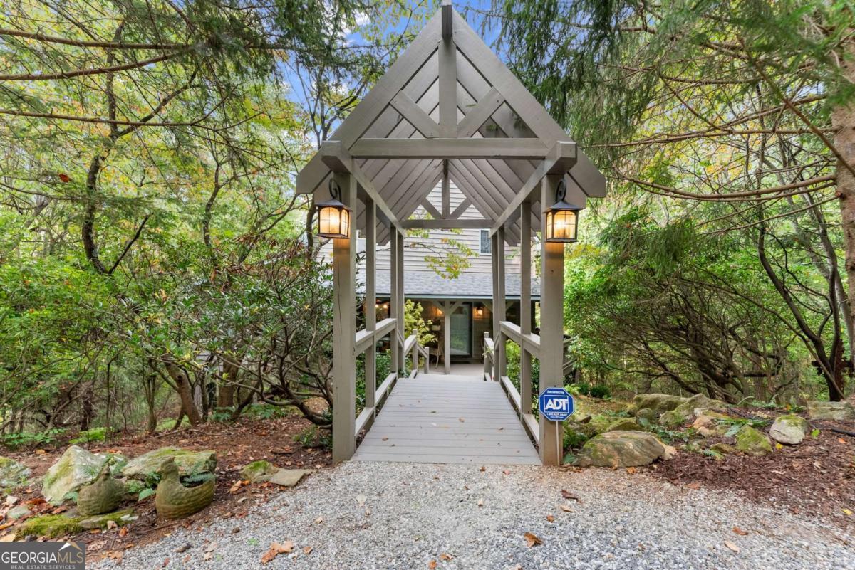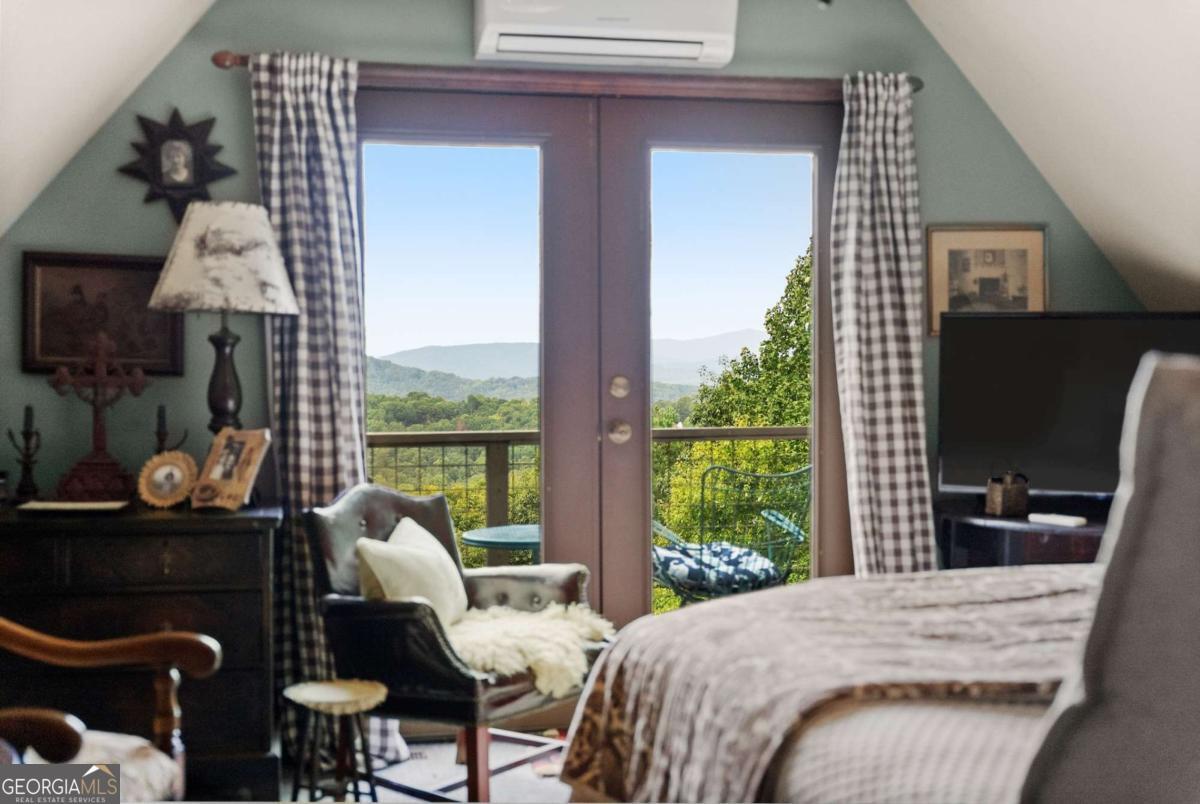 Perched atop Mount Yonah, this craftsman-style cabin captures sweeping, year-round views across nine mountain ranges. Set apart for ultimate privacy, it blends rustic character with modern comforts-ideal as a full-time retreat, private escape, or lucrative investment. The home's three levels balance open gathering areas with private retreats, all oriented toward the mountains beyond. On the main floor, a soaring stone fireplace and slate flooring set the tone, flowing seamlessly to the wraparound porch-partially screened for four-season enjoyment. Upstairs, the primary suite offers a true sanctuary with a new custom tile shower, a freestanding glass pedestal sink on a vintage base, and a private balcony where horizons stretch endlessly. Outdoors, the setting is as captivating as the views. Native plantings and mature greenery provide both beauty and privacy, while a circular gravel drive and stone archway create a storybook arrival. At the entrance, a whimsical architectural touch reminiscent of a fairy-tale gingerbread cottage hints at the magic waiting inside. With a freshly painted exterior, newer roof, and timeless character, this home is ready for its next chapter. Surrounded by natural wonders, the property is minutes from Helen's alpine village, scenic hiking trails, and world-class fishing on the Chattahoochee and Soque Rivers. Award-winning Serenity Cellars Winery is literally just down the road, adding to the charm and convenience. Whether you're savoring sunsets on the porch, exploring nearby trails, or sharing the mountain magic with guests, this property offers peace, privacy, and panoramic views that make it both a dream retreat and a highly desirable vacation rental opportunity.