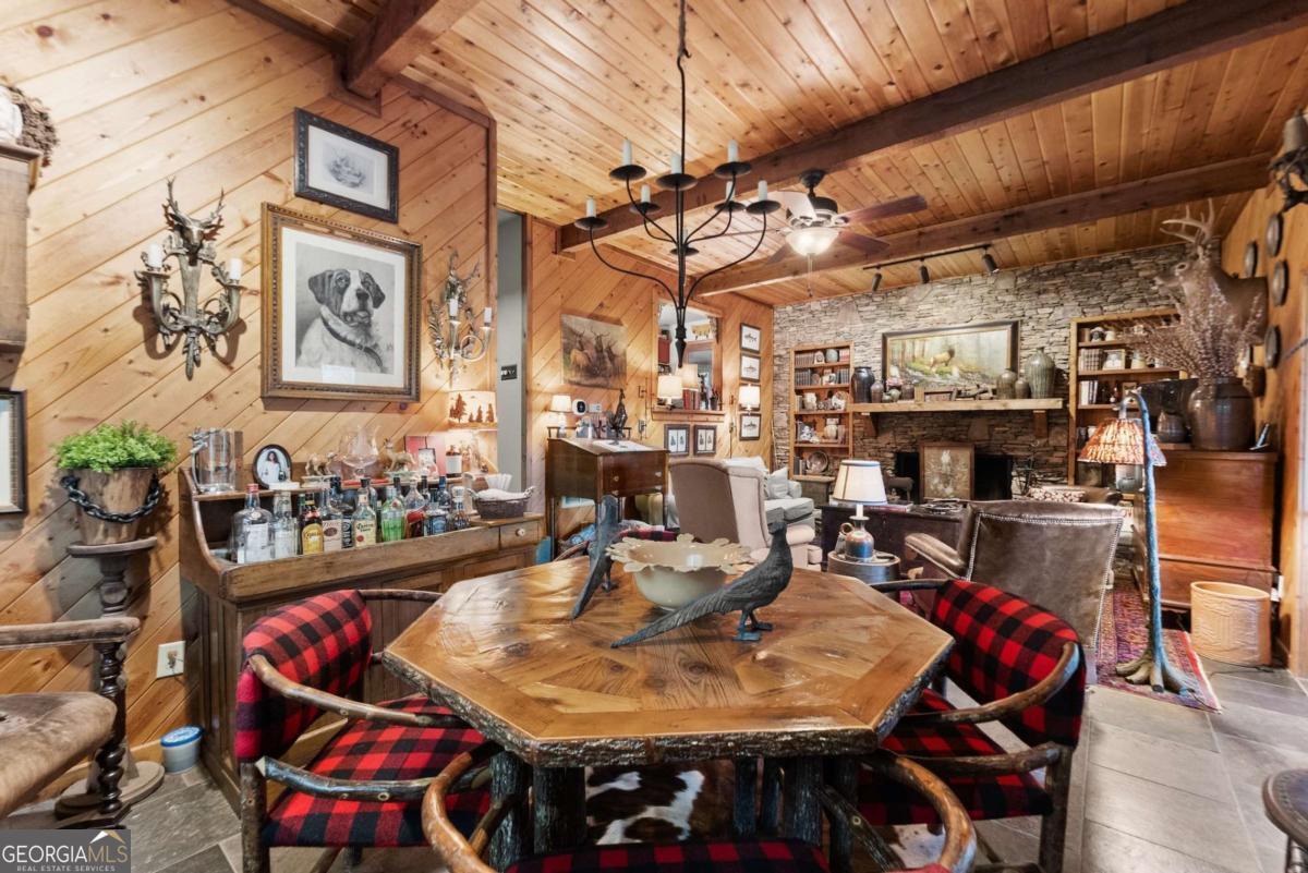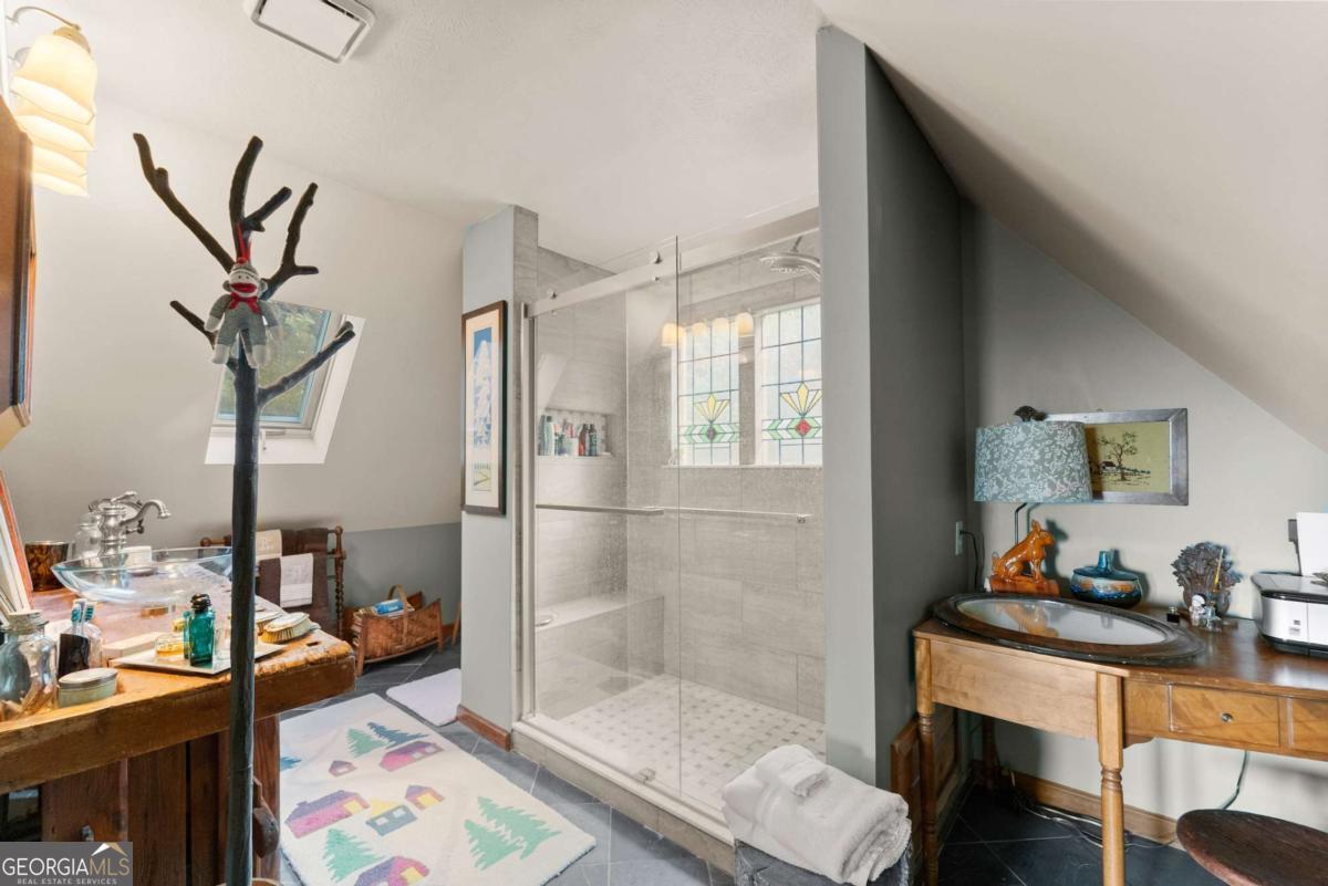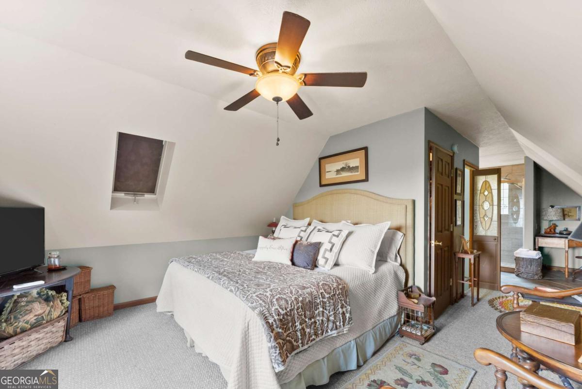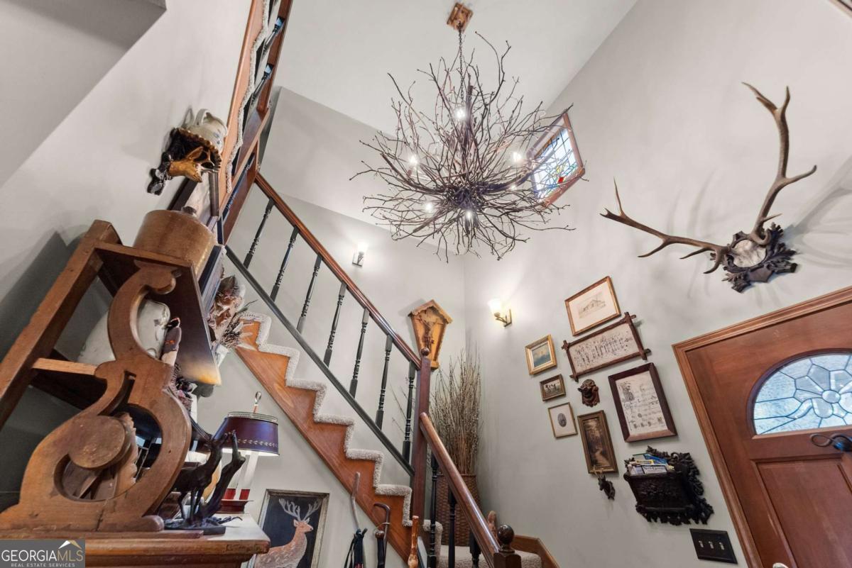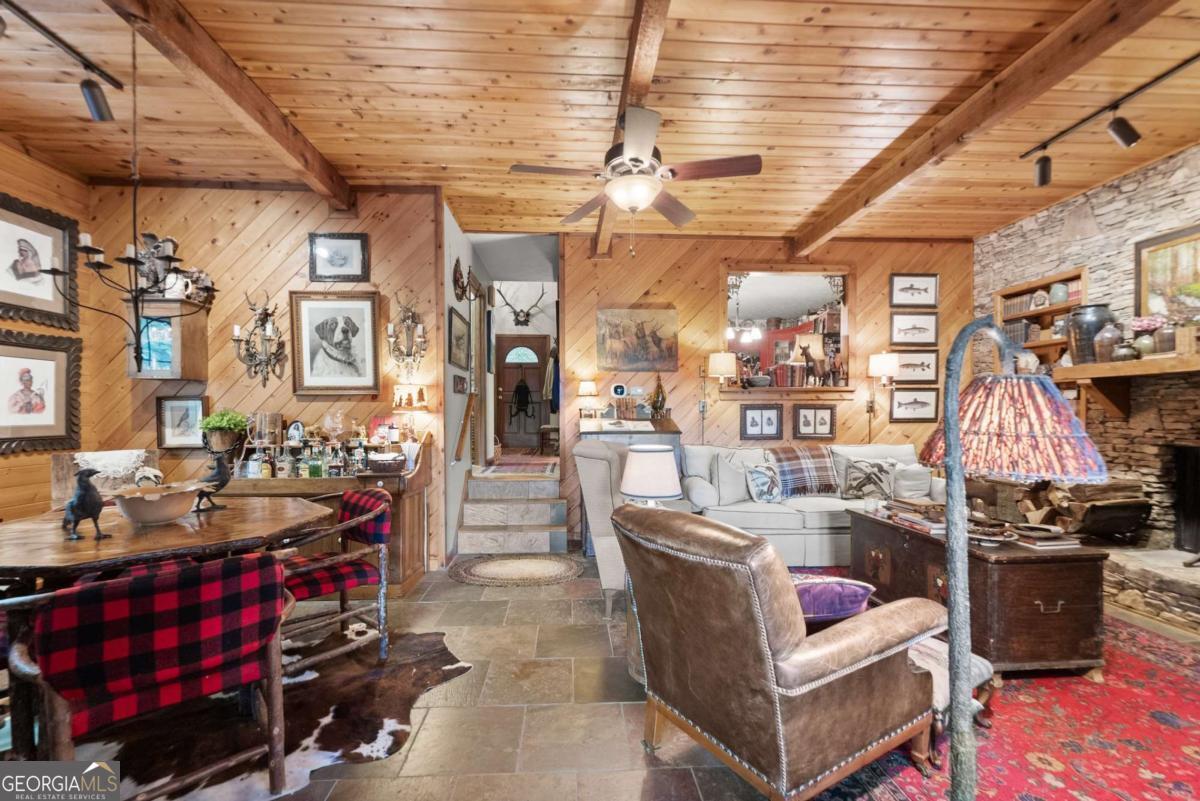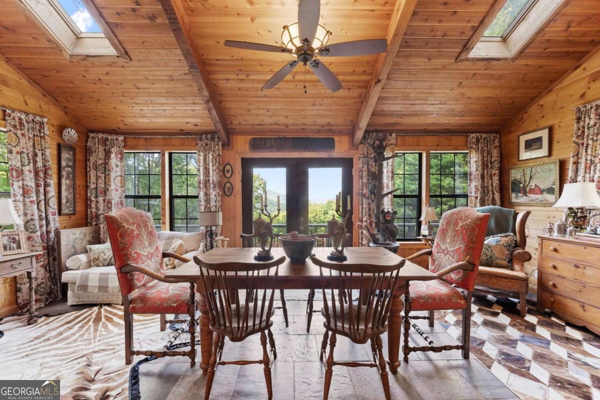 Perched atop Mount Yonah, this craftsman-style cabin captures sweeping, year-round views across nine mountain ranges. Set apart for ultimate privacy, it blends rustic character with modern comforts-ideal as a full-time retreat, private escape, or lucrative investment. The home's three levels balance open gathering areas with private retreats, all oriented toward the mountains beyond. On the main floor, a soaring stone fireplace and slate flooring set the tone, flowing seamlessly to the wraparound porch-partially screened for four-season enjoyment. Upstairs, the primary suite offers a true sanctuary with a new custom tile shower, a freestanding glass pedestal sink on a vintage base, and a private balcony where horizons stretch endlessly. Outdoors, the setting is as captivating as the views. Native plantings and mature greenery provide both beauty and privacy, while a circular gravel drive and stone archway create a storybook arrival. At the entrance, a whimsical architectural touch reminiscent of a fairy-tale gingerbread cottage hints at the magic waiting inside. With a freshly painted exterior, newer roof, and timeless character, this home is ready for its next chapter. Surrounded by natural wonders, the property is minutes from Helen's alpine village, scenic hiking trails, and world-class fishing on the Chattahoochee and Soque Rivers. Award-winning Serenity Cellars Winery is literally just down the road, adding to the charm and convenience. Whether you're savoring sunsets on the porch, exploring nearby trails, or sharing the mountain magic with guests, this property offers peace, privacy, and panoramic views that make it both a dream retreat and a highly desirable vacation rental opportunity.