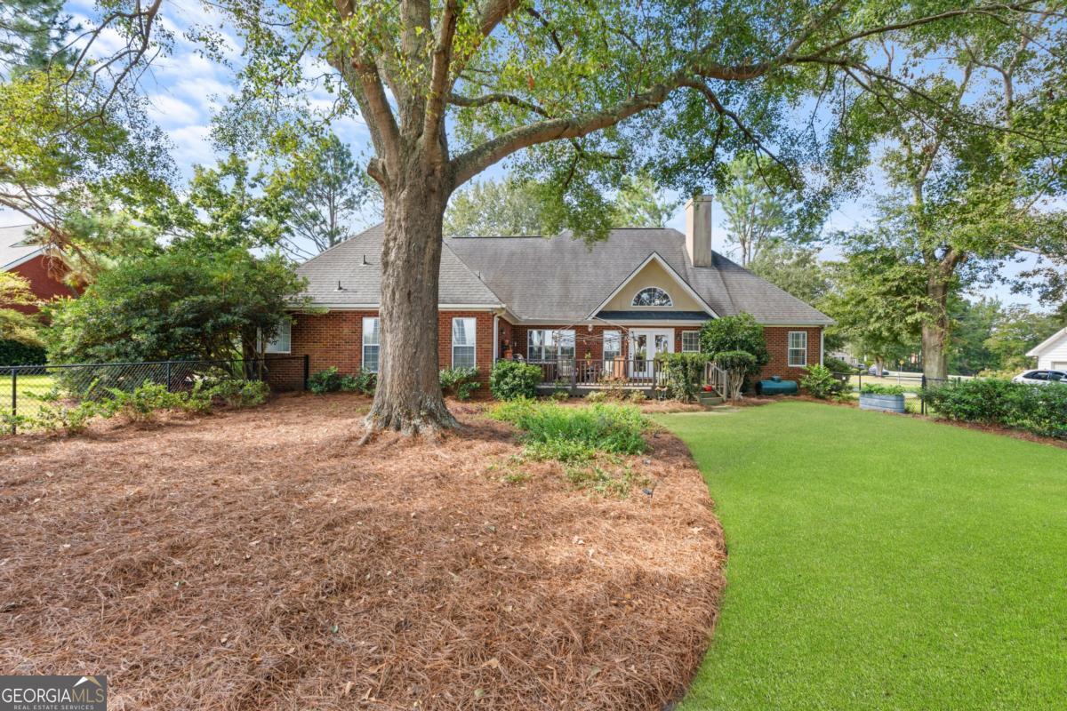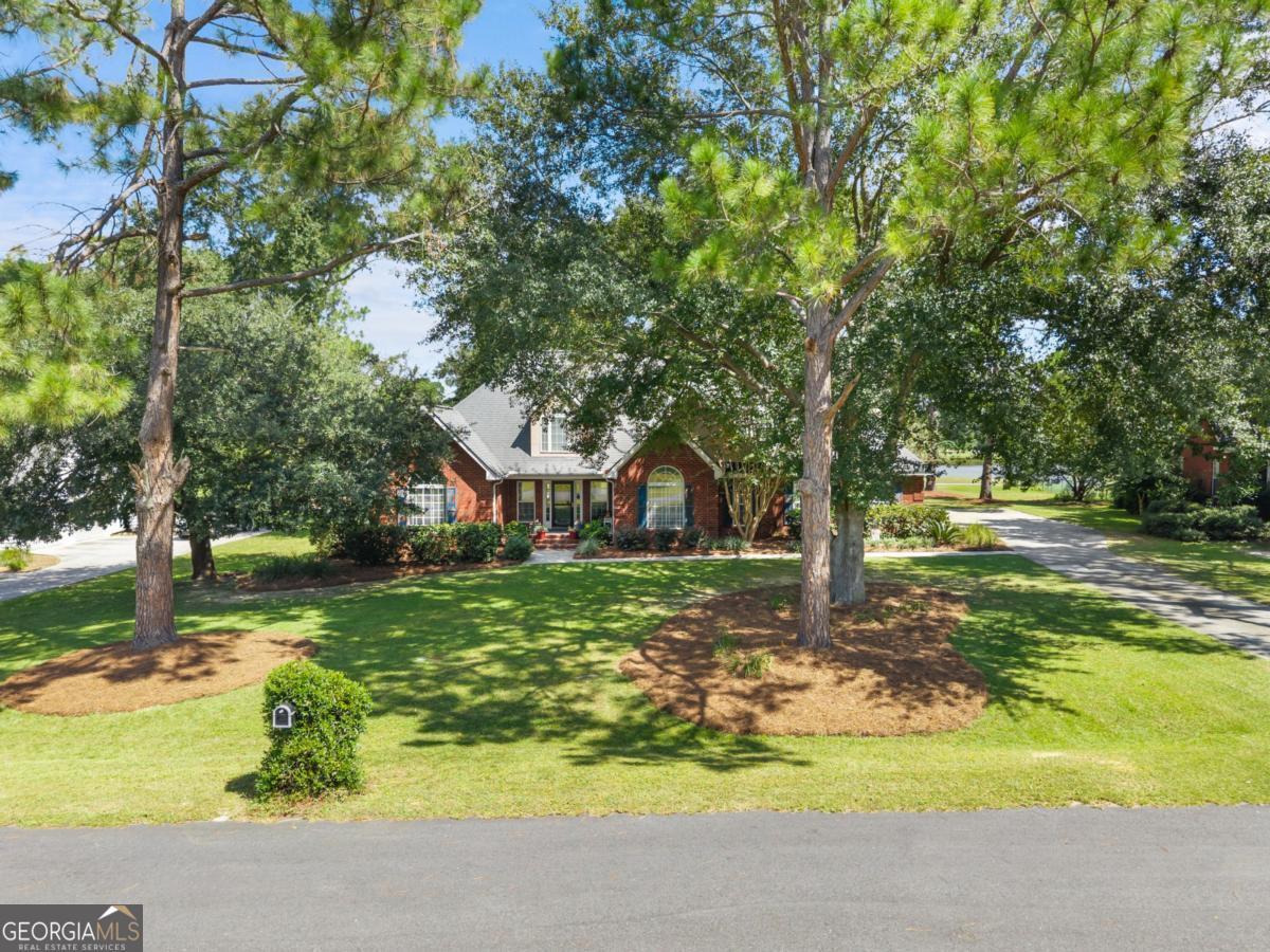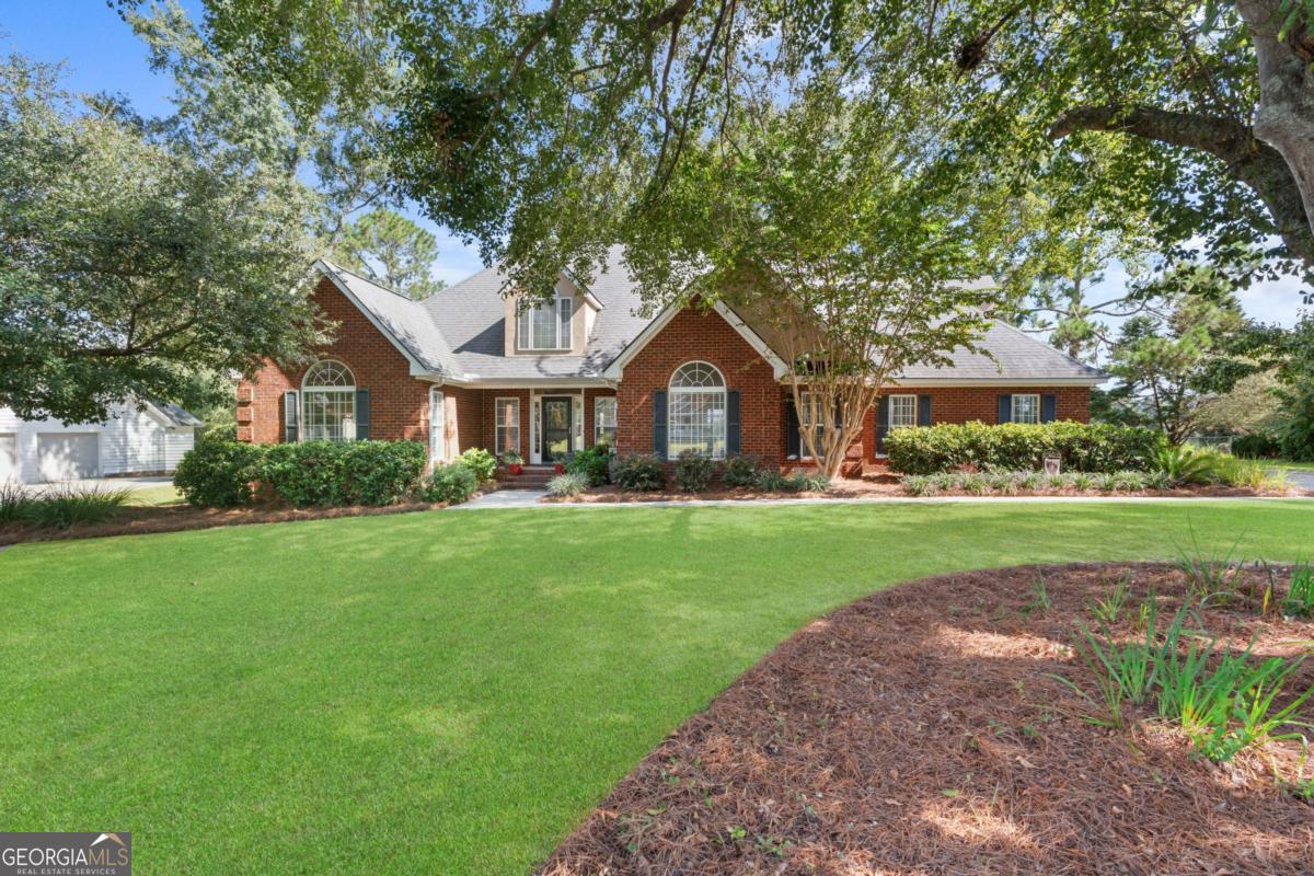 Tucked away on a quiet cul-de-sac, this stunning home on .62-acres offers panoramic views of the 5th-7th fairways and an 8-acre lake at Georgia Southern Golf Course. Surrounded by mature oaks, lush landscaping, and a butterfly garden, this all-brick home features 3 bedrooms, 3 full baths, and a spacious finished bonus room over the garage. Enjoy soaring 18-ft vaulted ceilings, beautiful solid cherry cabinetry, new stainless appliances, fresh paint, new lighting, and updated tile in the kitchen, breakfast nook, laundry, and primary bath. The primary suite includes a walk-in closet, dual vanities, garden tub, and separate shower. Relax on the private deck overlooking the lake-perfect for morning coffee or evening gatherings. Two new HVAC systems, two water heaters, and excellent storage including 3 garage closets. Just 10 minutes to Georgia Southern or I-16, yet worlds away in peace and privacy. A rare opportunity to own the Gem of the Georgia Southern Golf Course.