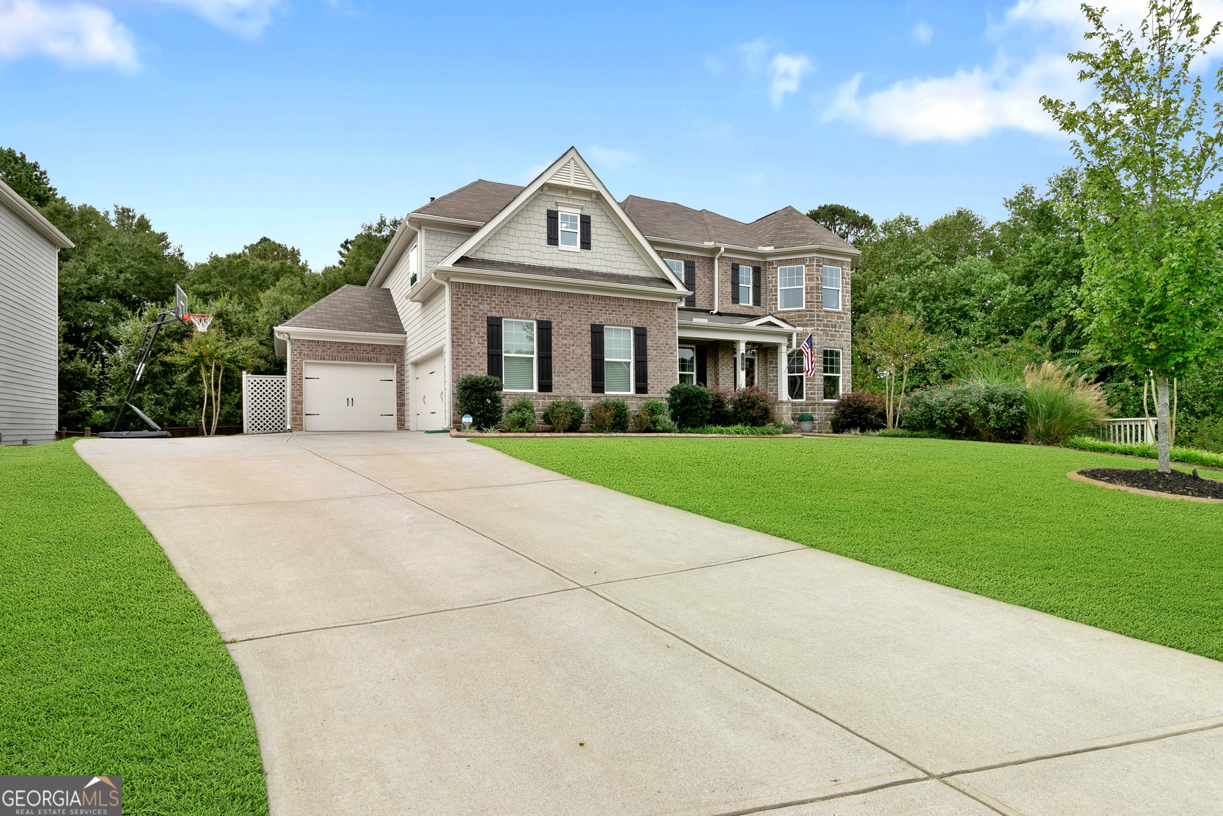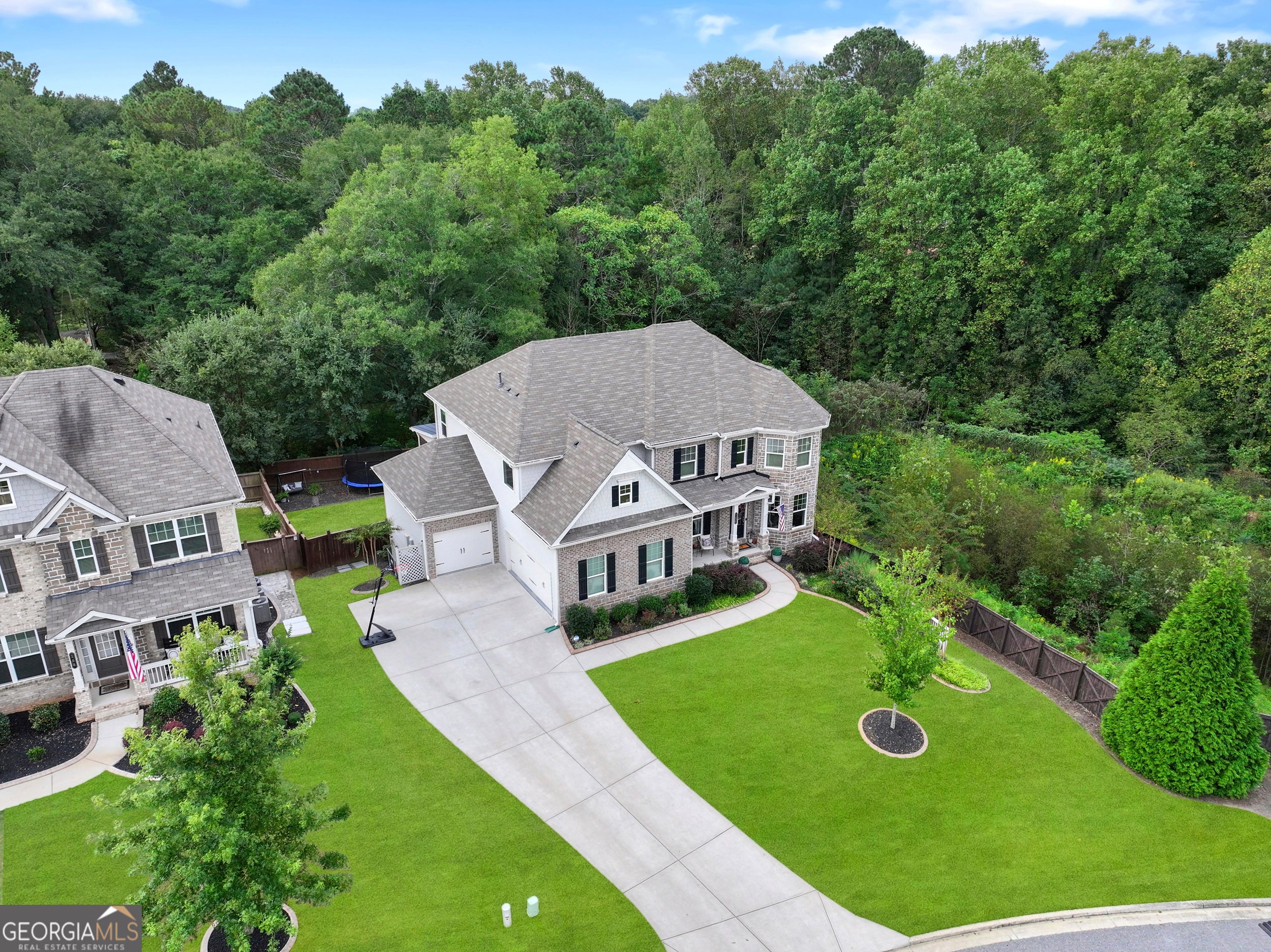 This stunning 5-bedroom, 4-bath residence seamlessly blends modern elegance with thoughtful functionality, offering an unbeatable location. Just a short drive to top-rated schools (Hickory Flat, Dean Rusk, & Sequoyah), dining, and shopping, with easy access to Milton, Avalon, Alpharetta, downtown Woodstock, and downtown Canton. Neighborhood amenities include a playground, a pool, and sidewalks, making this home right in the heart of it all while maintaining a private, peaceful retreat. Step into the gourmet kitchen, where a waterfall quartz island and countertops, a 5-burner gas stove, and a custom walk-in pantry with butcher block counter set the stage for effortless entertaining. The heart of the home flows into a bright, open living space and out to the screened porch, overlooking a fenced backyard enhanced by professional landscape lighting and a full irrigation system (front, back, and sides). Retreat to the owner's suite, a true sanctuary boasting a renovated spa-style bath with soaking tub, frameless tiled shower, and marble countertops. The customized closets offer built-in storage, a secret shoe organizer, and a vanity dressing area. For convenience, there's also an additional laundry room entrance through the master bath. Upstairs, you'll find a large bonus room ideal for play, media, or relaxation, along with generously sized secondary bedrooms all with private bathroom entry. The semi-finished terrace-level basement expands your living space with versatility. Complete with its own heating and cooling unit, this area is perfect for a home gym, office, or entertaining space and walks out to a private patio, creating a seamless indoor-outdoor connection. Throughout the home, you'll notice high-end finishes and custom details-from designer lighting and built-in storage solutions to the electric car charging station in the 3-car garage-all showcasing craftsmanship and care at every turn.