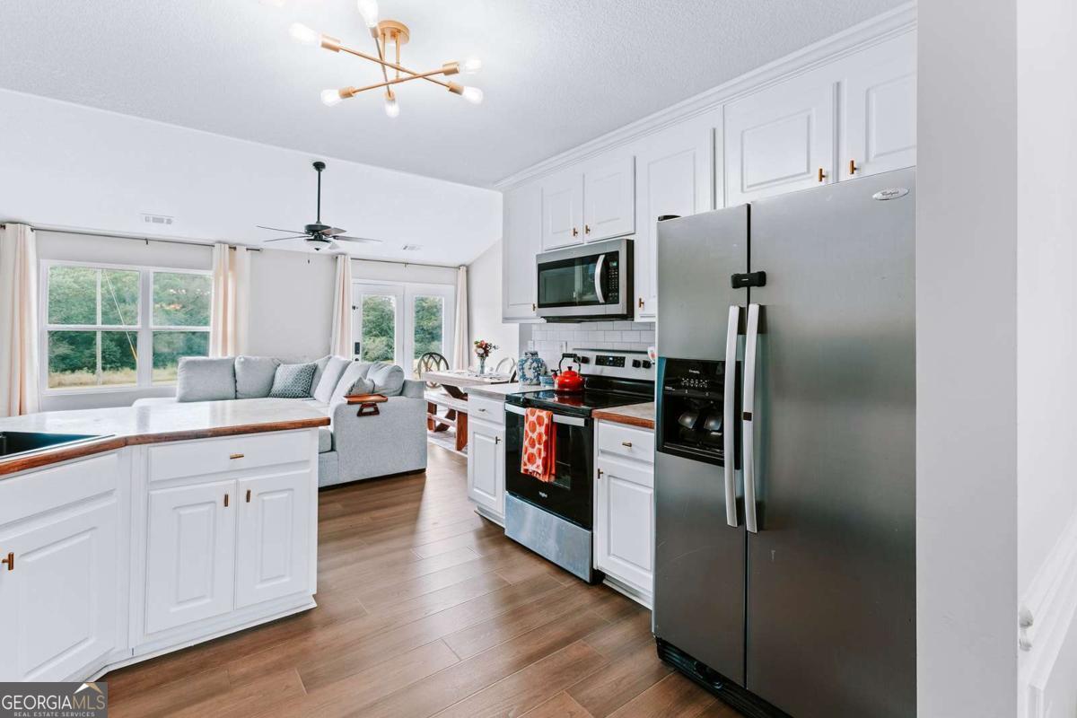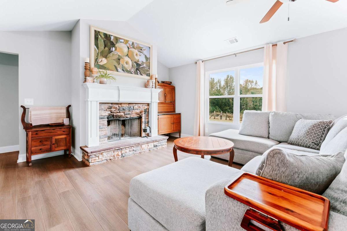 Feel at home the moment you step into this 3-bedroom, 2.5-bathroom craftsman charmer on three peaceful acres with no subdivision, no HOA and just 13 miles from Athens and UGA! Inside, you'll love the open floor plan, fresh paint, and cozy wood-burning fireplace. Enjoy new luxury vinyl plank flooring in the main living areas and primary suite. The kitchen shines with natural light, new sink, modern lighting, tile backsplash, and updated hardware. Your spacious primary suite includes a walk-in closet and a private bath with soaking tub, step-in shower, and water closet. Two additional bedrooms on the main floor make life extra convenient. Outside, relax on the front porch or patio, with plenty of space for pets, play, and hobbies. You'll also find a storage building with power, fenced area, attached two-car garage, and large driveway. A stylishly updated home on acreage, a rare find in Arnoldsville!