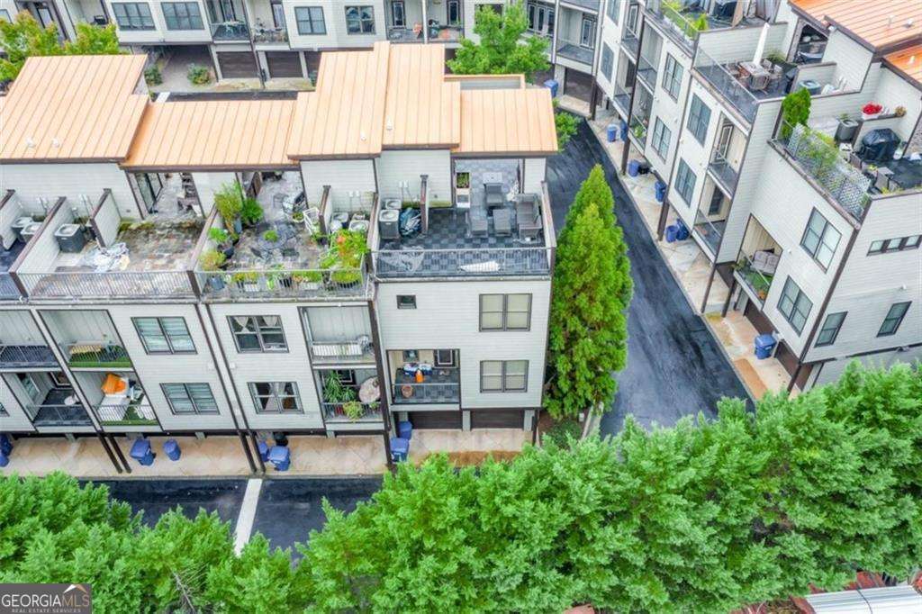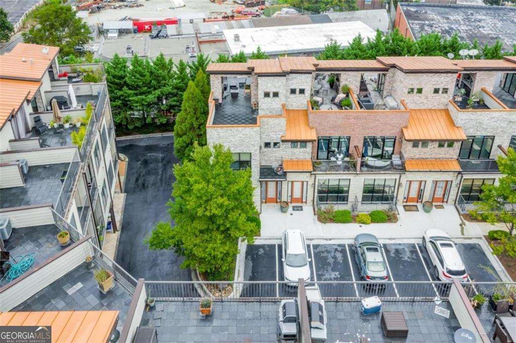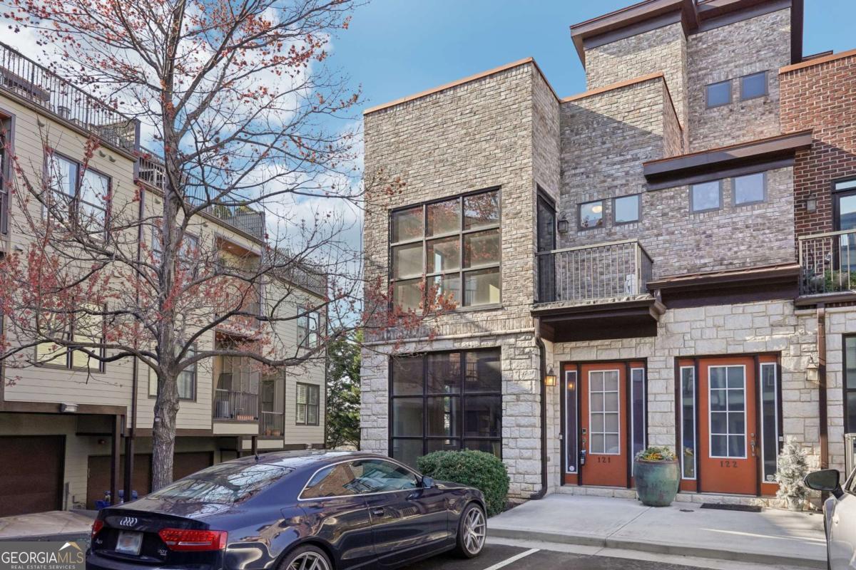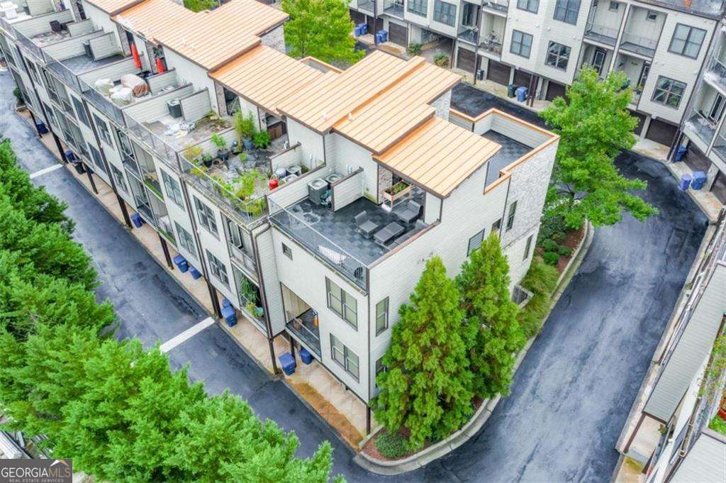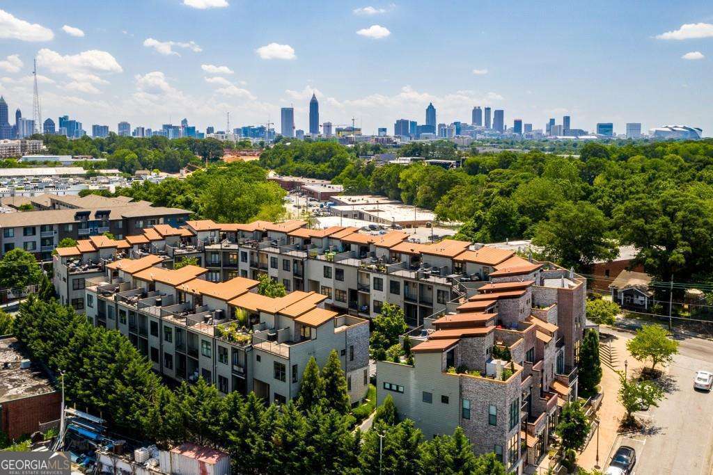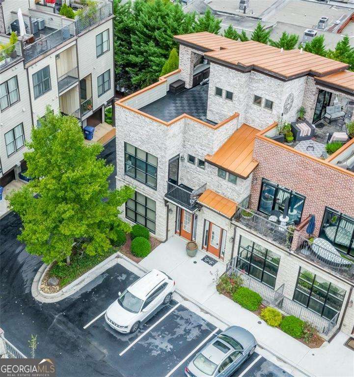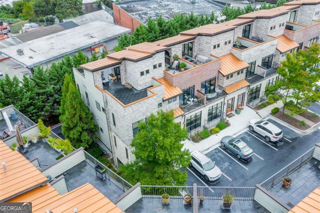 Impress everyone you know in this *corner end unit* brick and stone, four-story West Midtown townhome in a gated community boasting a jaw-dropping 750+ square foot rooftop patio with expansive skyline views of Buckhead and Vinings. The guest parking situation for this unit is supreme with plenty of parking spaces right at the front door of this unit! New carpet, and new LVP in basement! Freshly painted trim! Step inside and immediately feel the difference as natural sunlight pours in through an abundance of windows in every room, including two nine-panel picture window walls. From the moment you enter, the light-filled living room transitions seamlessly into the modern kitchen, where sleek hardwood floors set the stage for contemporary luxury. Whether you're hosting cocktails at sunset or curling up under the stars, the rooftop retreat offers an outdoor experience rarely found in townhome living. Venture further to discover a layout designed for versatility: each bedroom features its own ensuite bath, while the finished daylight basement can serve as a private guest suite, roommate space, or your dream home office. Two additional balconies-one off the main living level and another attached to the secondary bedroom-provide perfect spots for morning coffee or a quiet read. High ceilings, modern fixtures, and included appliances (washer/dryer) make daily living as convenient as it is stylish. Best of all, leasing is allowed, giving professionals both the freedom to move and potential for income generation. With low $200/month HOA fees, a secure two-car attached garage, and a gated community, you'll enjoy the ideal blend of convenience and luxury. Ready to experience the best of booming West Midtown? In minutes, walk over to Topgolf or explore the massive Westside Quarry Park, which is newer and larger than Piedmont Park. Plus, you're surrounded by some of Atlanta's top dining and nightlife. This is the address you've been waiting for, where corner-unit privacy meets show-stopping rooftop views in Atlanta's trendiest neighborhood.