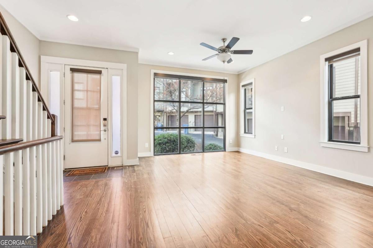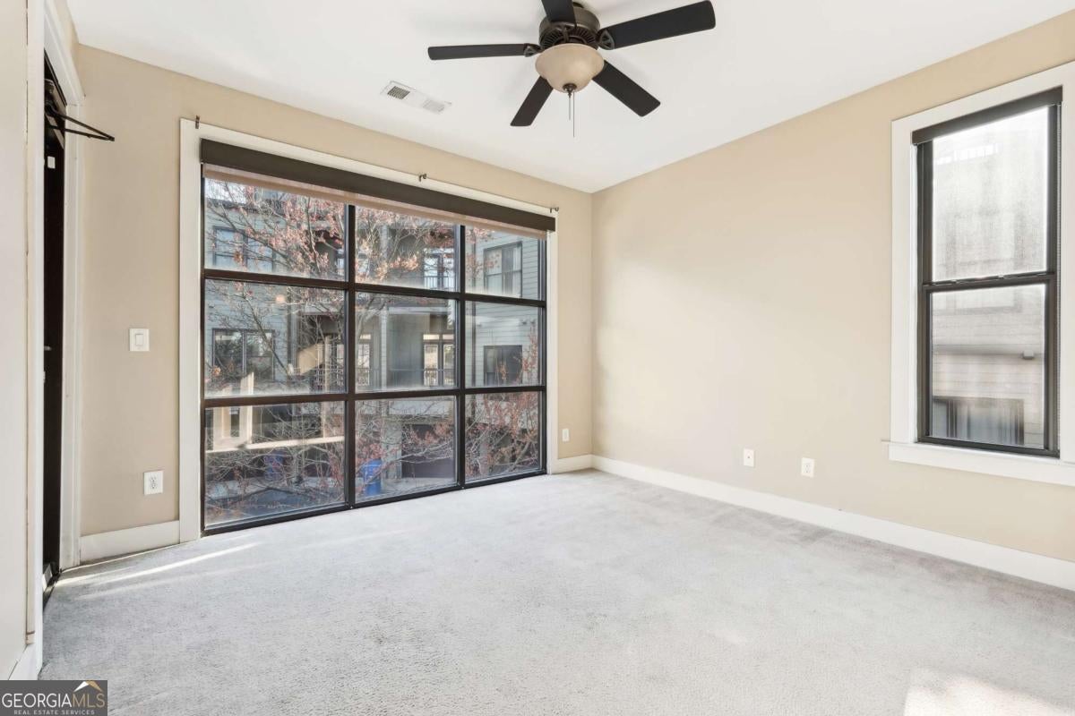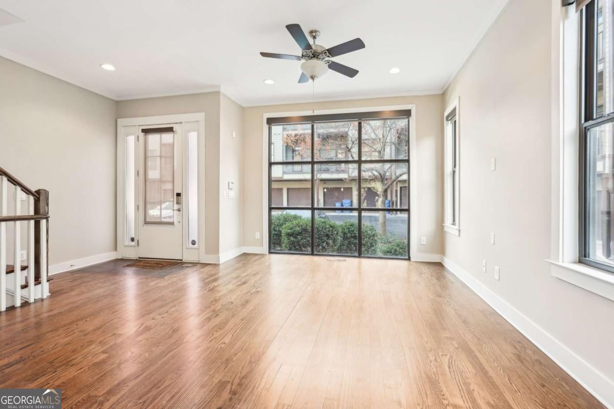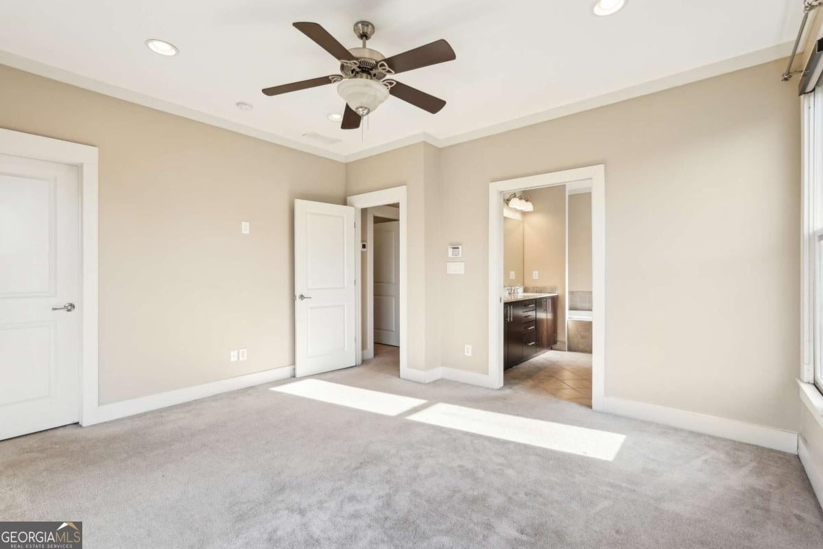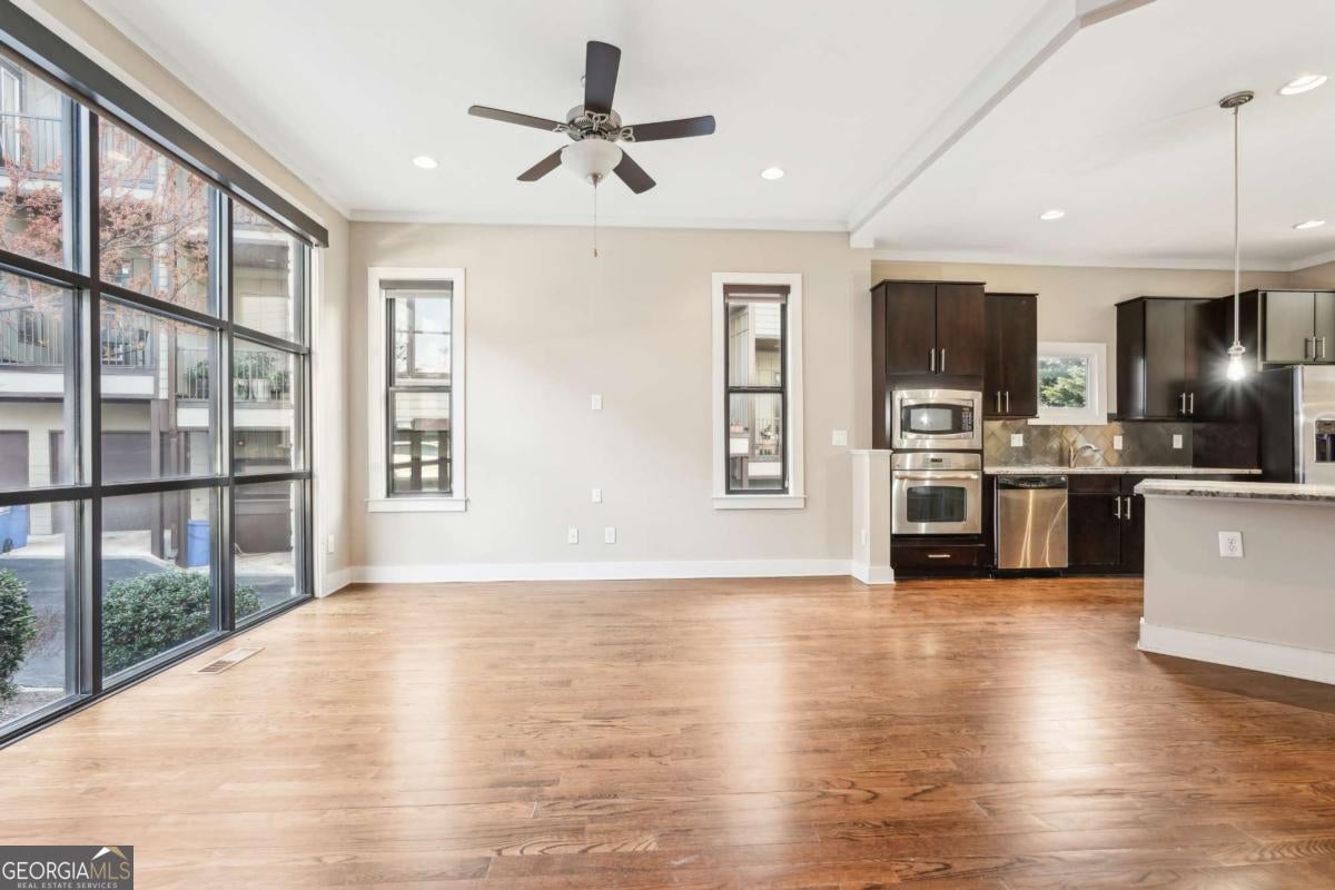 Impress everyone you know in this *corner end unit* brick and stone, four-story West Midtown townhome in a gated community boasting a jaw-dropping 750+ square foot rooftop patio with expansive skyline views of Buckhead and Vinings. The guest parking situation for this unit is supreme with plenty of parking spaces right at the front door of this unit! New carpet, and new LVP in basement! Freshly painted trim! Step inside and immediately feel the difference as natural sunlight pours in through an abundance of windows in every room, including two nine-panel picture window walls. From the moment you enter, the light-filled living room transitions seamlessly into the modern kitchen, where sleek hardwood floors set the stage for contemporary luxury. Whether you're hosting cocktails at sunset or curling up under the stars, the rooftop retreat offers an outdoor experience rarely found in townhome living. Venture further to discover a layout designed for versatility: each bedroom features its own ensuite bath, while the finished daylight basement can serve as a private guest suite, roommate space, or your dream home office. Two additional balconies-one off the main living level and another attached to the secondary bedroom-provide perfect spots for morning coffee or a quiet read. High ceilings, modern fixtures, and included appliances (washer/dryer) make daily living as convenient as it is stylish. Best of all, leasing is allowed, giving professionals both the freedom to move and potential for income generation. With low $200/month HOA fees, a secure two-car attached garage, and a gated community, you'll enjoy the ideal blend of convenience and luxury. Ready to experience the best of booming West Midtown? In minutes, walk over to Topgolf or explore the massive Westside Quarry Park, which is newer and larger than Piedmont Park. Plus, you're surrounded by some of Atlanta's top dining and nightlife. This is the address you've been waiting for, where corner-unit privacy meets show-stopping rooftop views in Atlanta's trendiest neighborhood.