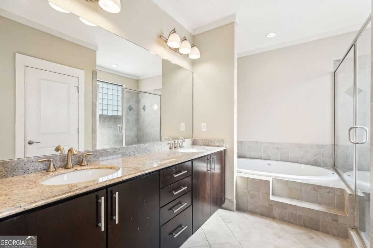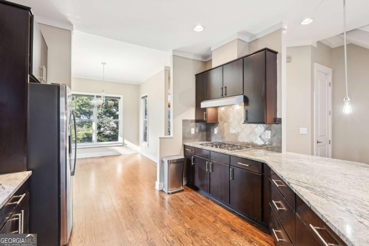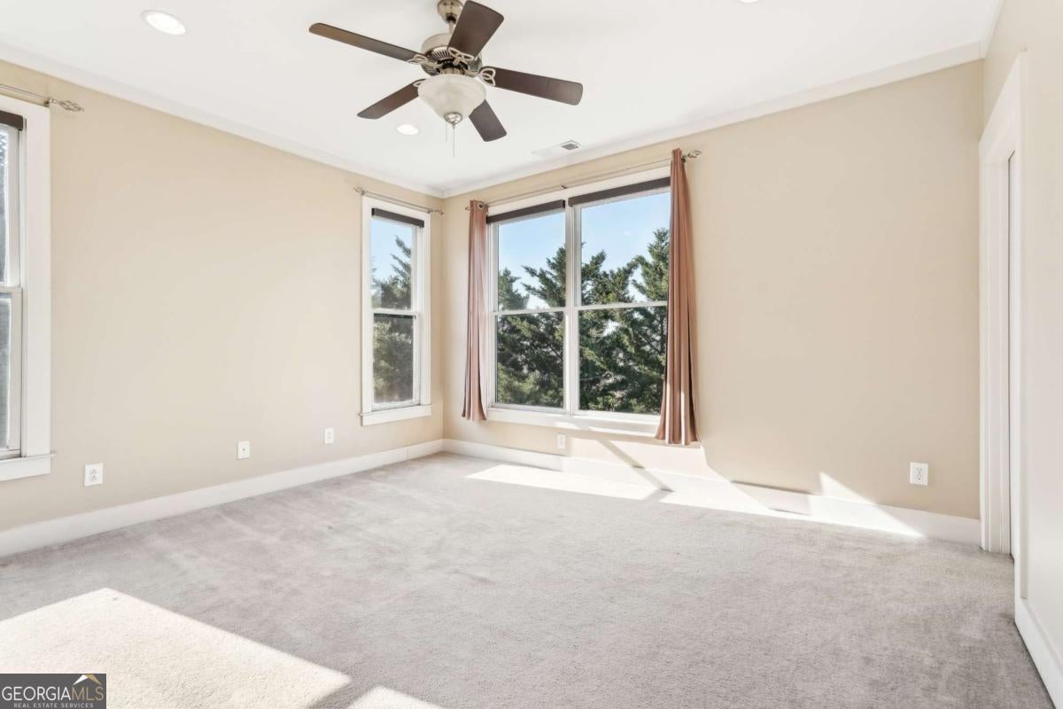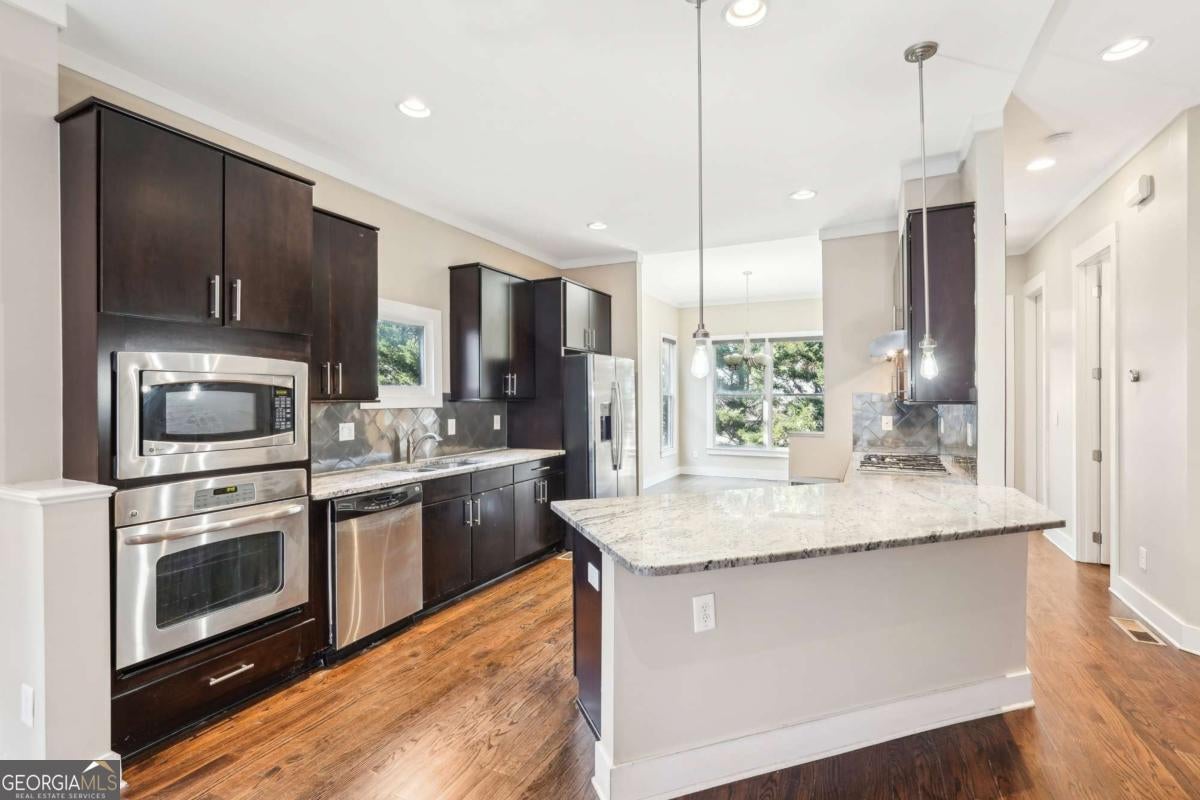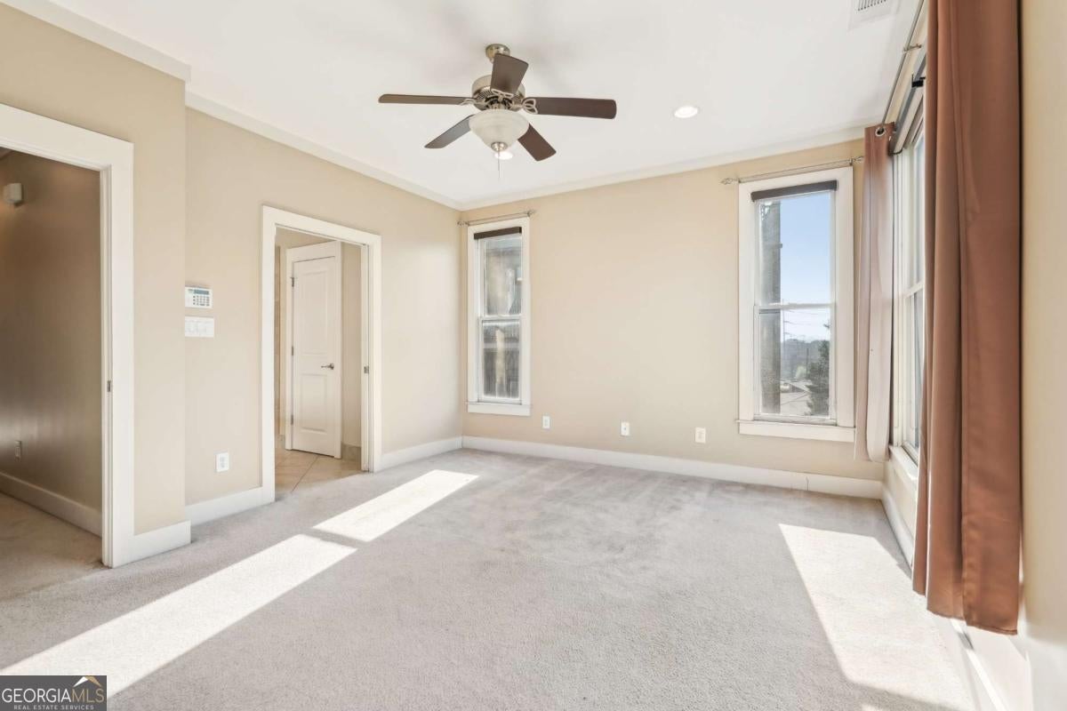 Impress everyone you know in this *corner end unit* brick and stone, four-story West Midtown townhome in a gated community boasting a jaw-dropping 750+ square foot rooftop patio with expansive skyline views of Buckhead and Vinings. The guest parking situation for this unit is supreme with plenty of parking spaces right at the front door of this unit! New carpet, and new LVP in basement! Freshly painted trim! Step inside and immediately feel the difference as natural sunlight pours in through an abundance of windows in every room, including two nine-panel picture window walls. From the moment you enter, the light-filled living room transitions seamlessly into the modern kitchen, where sleek hardwood floors set the stage for contemporary luxury. Whether you're hosting cocktails at sunset or curling up under the stars, the rooftop retreat offers an outdoor experience rarely found in townhome living. Venture further to discover a layout designed for versatility: each bedroom features its own ensuite bath, while the finished daylight basement can serve as a private guest suite, roommate space, or your dream home office. Two additional balconies-one off the main living level and another attached to the secondary bedroom-provide perfect spots for morning coffee or a quiet read. High ceilings, modern fixtures, and included appliances (washer/dryer) make daily living as convenient as it is stylish. Best of all, leasing is allowed, giving professionals both the freedom to move and potential for income generation. With low $200/month HOA fees, a secure two-car attached garage, and a gated community, you'll enjoy the ideal blend of convenience and luxury. Ready to experience the best of booming West Midtown? In minutes, walk over to Topgolf or explore the massive Westside Quarry Park, which is newer and larger than Piedmont Park. Plus, you're surrounded by some of Atlanta's top dining and nightlife. This is the address you've been waiting for, where corner-unit privacy meets show-stopping rooftop views in Atlanta's trendiest neighborhood.