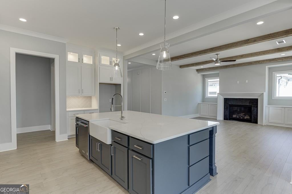 - Interior FeaturesBookcases, Double Vanity, In-Law Floorplan, Master On Main Level, Split Bedroom Plan, Tray Ceiling(s), Walk-In Closet(s), Beamed Ceilings