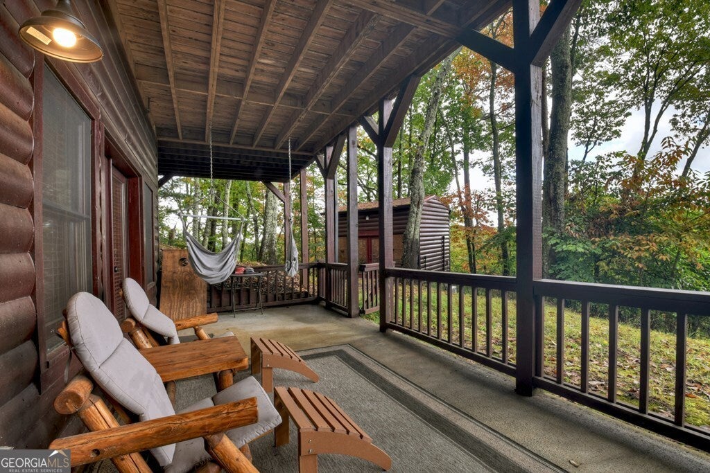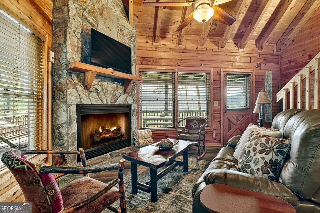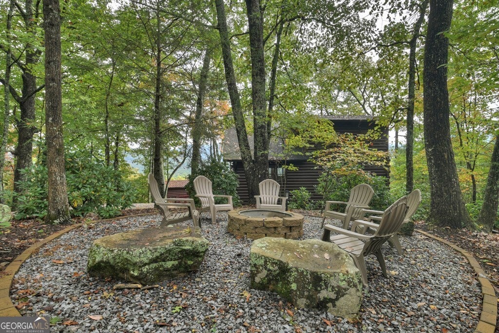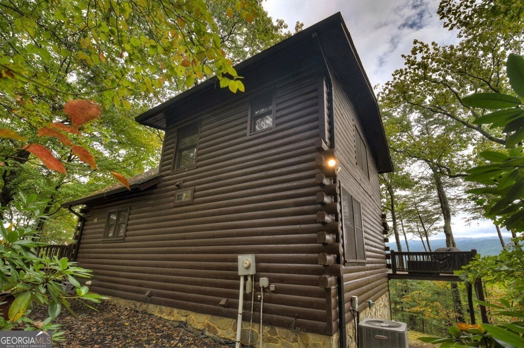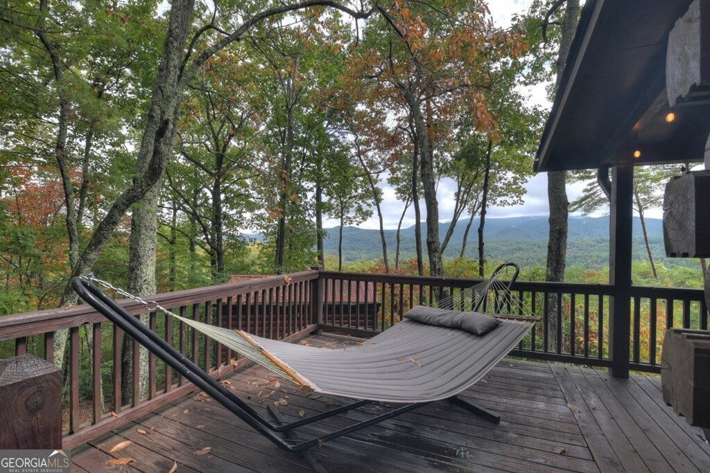 ^THE SCENIC SANCTUARY^ Experience North GA Mtn. living overlooking breathtaking layered panoramic long range mtn. views for miles in both directions as your scenic backdrop! This 4BR, 3BA "real" log home offers features that could make this home or your home away from home. Main level features 2BR's/1BA w/ primary ensuite upstairs in addition to loft area great for private reading nook, home office, nursery area, etc. From the moment you arrive you'll feel like you're king of the hill. Soaring cathedral ceilings, lots of windows & fixed glass, floor to ceiling stone fireplace, wood floors & exposed beams all add to the warmth & charm of the Great Room & Kitchen. Open concept living w/ large kitchen w/ island offering seating & additional prep space including stainless steel appliances & granite countertops. Finished terrace level features BR/BA, Rec Rm/Den + storage opening onto patio w/ hot tub & outdoor living space. Lg covered porch spans entire front of home w/ add. Grilling deck & spot for outdoor kitchen connecting to side open deck. This log home comes on 2 lots totaling over 2+ acres, w/ end of the road privacy, located conveniently between Blue Ridge & Ellijay. Location, Location, Location!!! Located in Cherry Log Mountain/Holloway Mtn. enjoy access to community lakes for fishing, canoeing & kayaking + direct access to the Benton MacKaye Hiking Trail. Enjoy relaxing around the outdoor living fire pit area having a cocktail or making smores. Detached studio office is a great quite home office space but your imagination can run wild because it would also make a great yoga studio, home gym/fitness center, bunkroom, etc. This come can be purchased turn key full furnished - prime STR (short term rental) property.