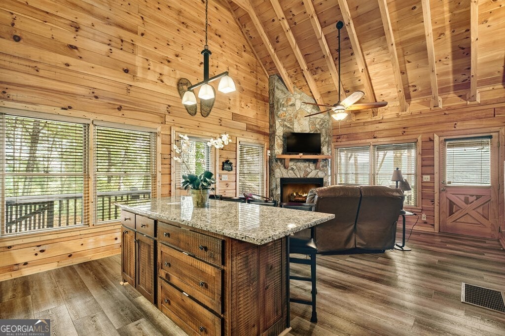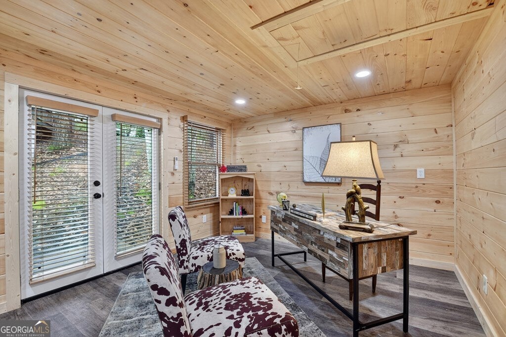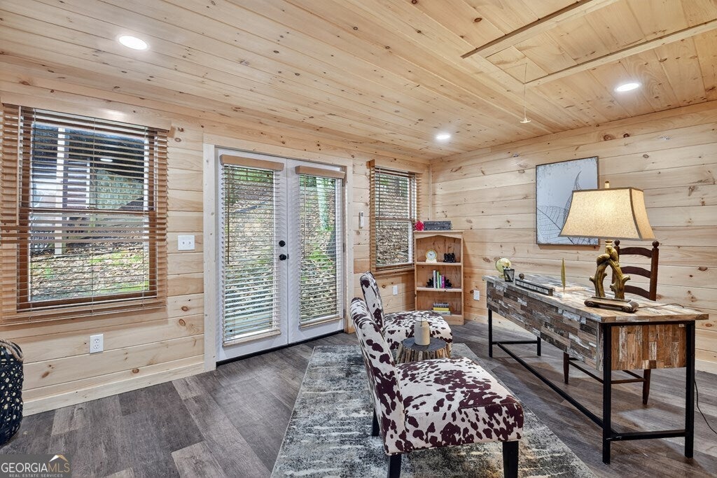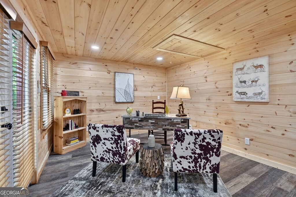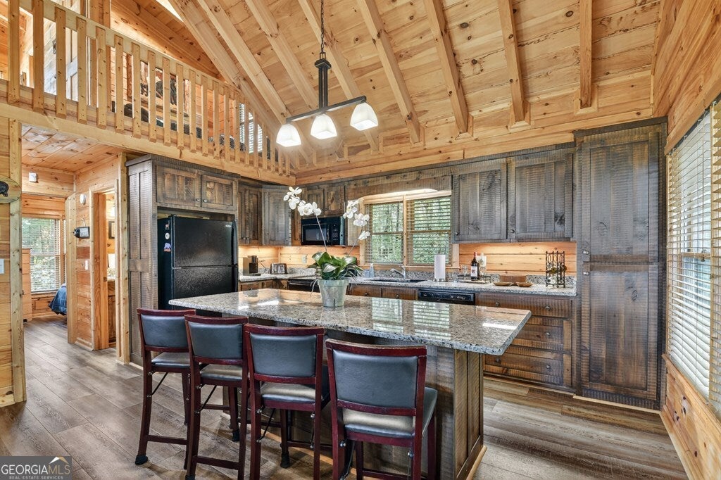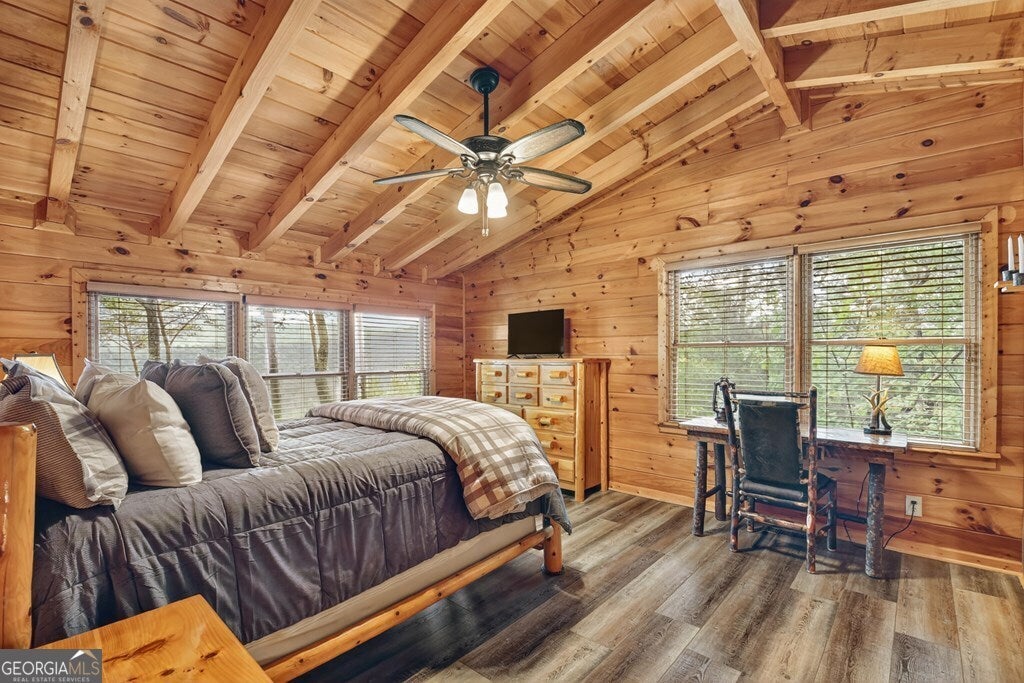 ^THE SCENIC SANCTUARY^ Experience North GA Mtn. living overlooking breathtaking layered panoramic long range mtn. views for miles in both directions as your scenic backdrop! This 4BR, 3BA "real" log home offers features that could make this home or your home away from home. Main level features 2BR's/1BA w/ primary ensuite upstairs in addition to loft area great for private reading nook, home office, nursery area, etc. From the moment you arrive you'll feel like you're king of the hill. Soaring cathedral ceilings, lots of windows & fixed glass, floor to ceiling stone fireplace, wood floors & exposed beams all add to the warmth & charm of the Great Room & Kitchen. Open concept living w/ large kitchen w/ island offering seating & additional prep space including stainless steel appliances & granite countertops. Finished terrace level features BR/BA, Rec Rm/Den + storage opening onto patio w/ hot tub & outdoor living space. Lg covered porch spans entire front of home w/ add. Grilling deck & spot for outdoor kitchen connecting to side open deck. This log home comes on 2 lots totaling over 2+ acres, w/ end of the road privacy, located conveniently between Blue Ridge & Ellijay. Location, Location, Location!!! Located in Cherry Log Mountain/Holloway Mtn. enjoy access to community lakes for fishing, canoeing & kayaking + direct access to the Benton MacKaye Hiking Trail. Enjoy relaxing around the outdoor living fire pit area having a cocktail or making smores. Detached studio office is a great quite home office space but your imagination can run wild because it would also make a great yoga studio, home gym/fitness center, bunkroom, etc. This come can be purchased turn key full furnished - prime STR (short term rental) property.