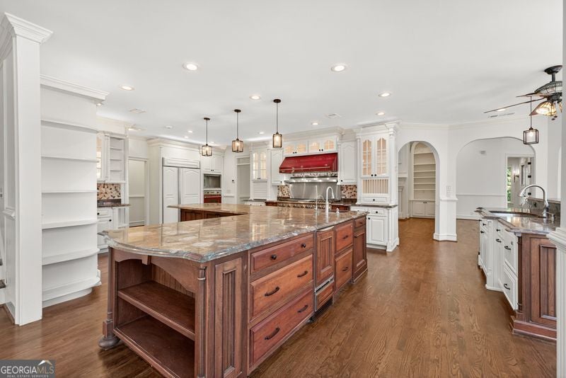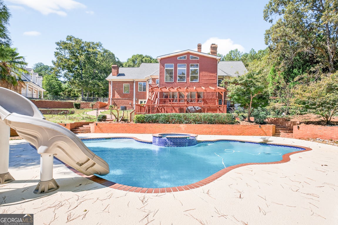 Rare opportunity to own an elegant 6-bed, 5-bath estate on over 3.6 pristine acres. This luxurious home features an open floor plan flooded with natural light and refinished hardwood floors throughout. The low-maintenance exterior is classic brick with a large front porch. The master suite on the main is a true retreat, boasting a huge walk-in closet and a newly renovated bathroom with heated tile floors and a spacious frameless shower. The massive kitchen is a chef's dream with granite countertops, a Viking gas cooktop, sub-zero fridge, three dishwashers, trash compactor, and a dedicated ice maker. Main level living spaces also include a formal dining room, private office, formal living room, great room, and a keeping/breakfast room. The living room, great room, and keeping room all have their own fireplace adding to the warmth and appeal of this home. An entertainer's dream, this property includes a huge deck overlooking a large saltwater in-ground pool with spa. Also enjoy the detached 3-car garage with an upstairs office with enough room to run your private business. Add to that a large workshop that has a separate driveway with an upstairs workout area AND enough parking room to keep your boat, camper, and equipment on site all with no HOA. Never have to pay storage fees again. The grounds conclude with a barn flowing into beautiful pasture space. Three bedrooms up and bonus room are perfect for kids or guests while the terrace level has an additional bedroom room and bath plus lots of unfinished storage space. Downstairs could easily become a dedicated in-law suite for your family. Whole house generator on demand. Experience luxury, space, and functionality-all in one magnificent property! Located in Rockdale County very near the Walton and Gwinnett lines and convenient to Conyers, Loganville, Walnut Grove, Snellville, I-20, and Hwy 78. Approximately 35 minutes to the new meta Stanton Springs Data Center in Social Circle. Schedule your appointment today - too many upgrades and features to state here - a list of features is available upon request.