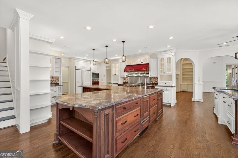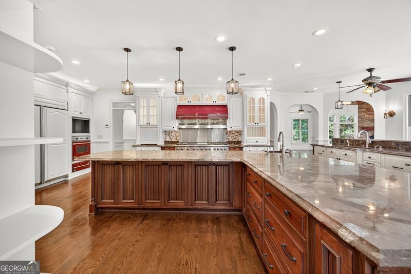 - AppliancesDishwasher, Refrigerator, Tankless Water Heater, Double Oven, Trash Compactor