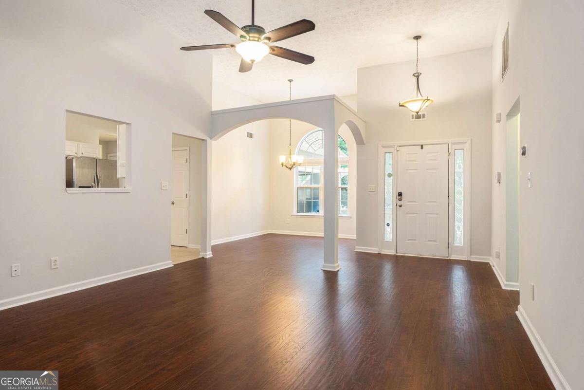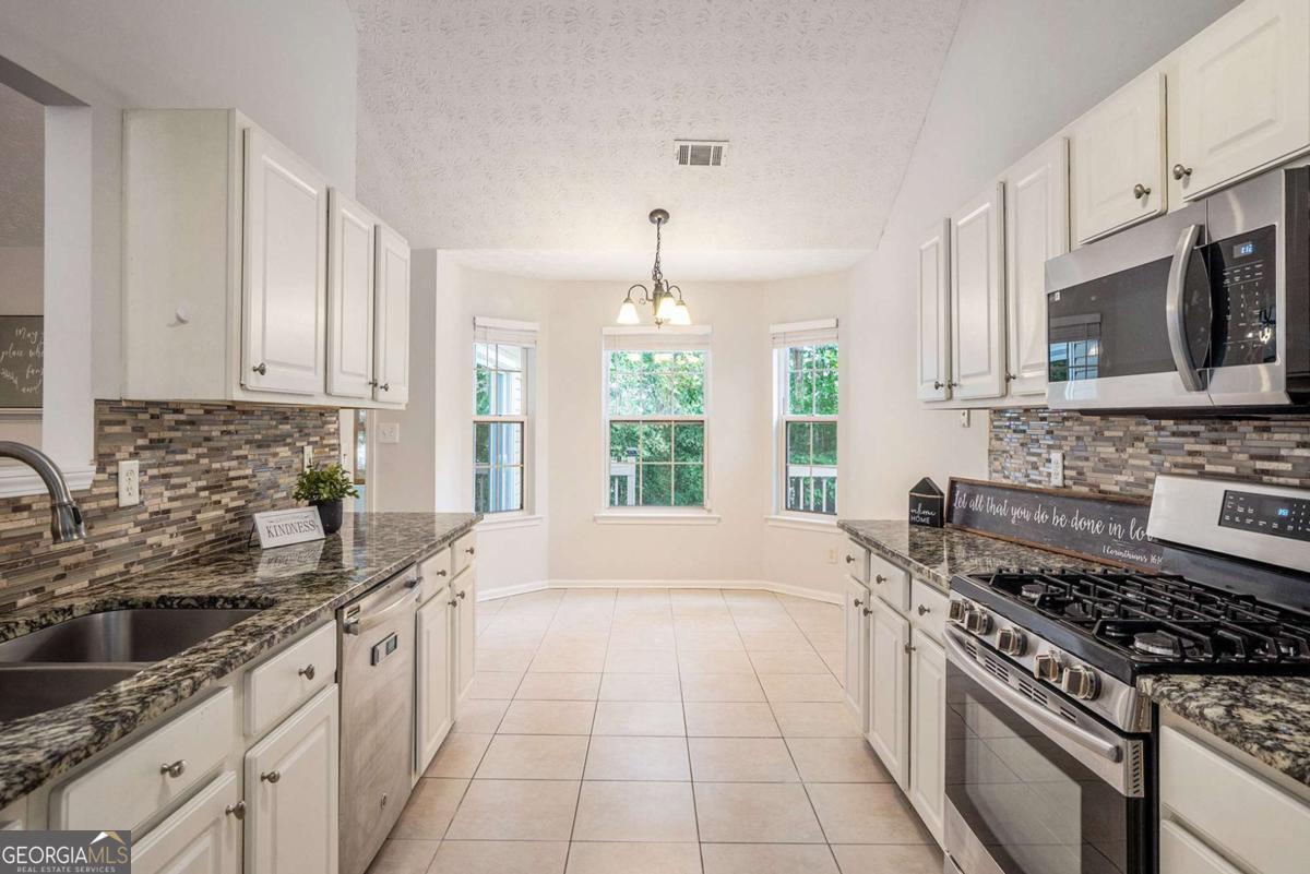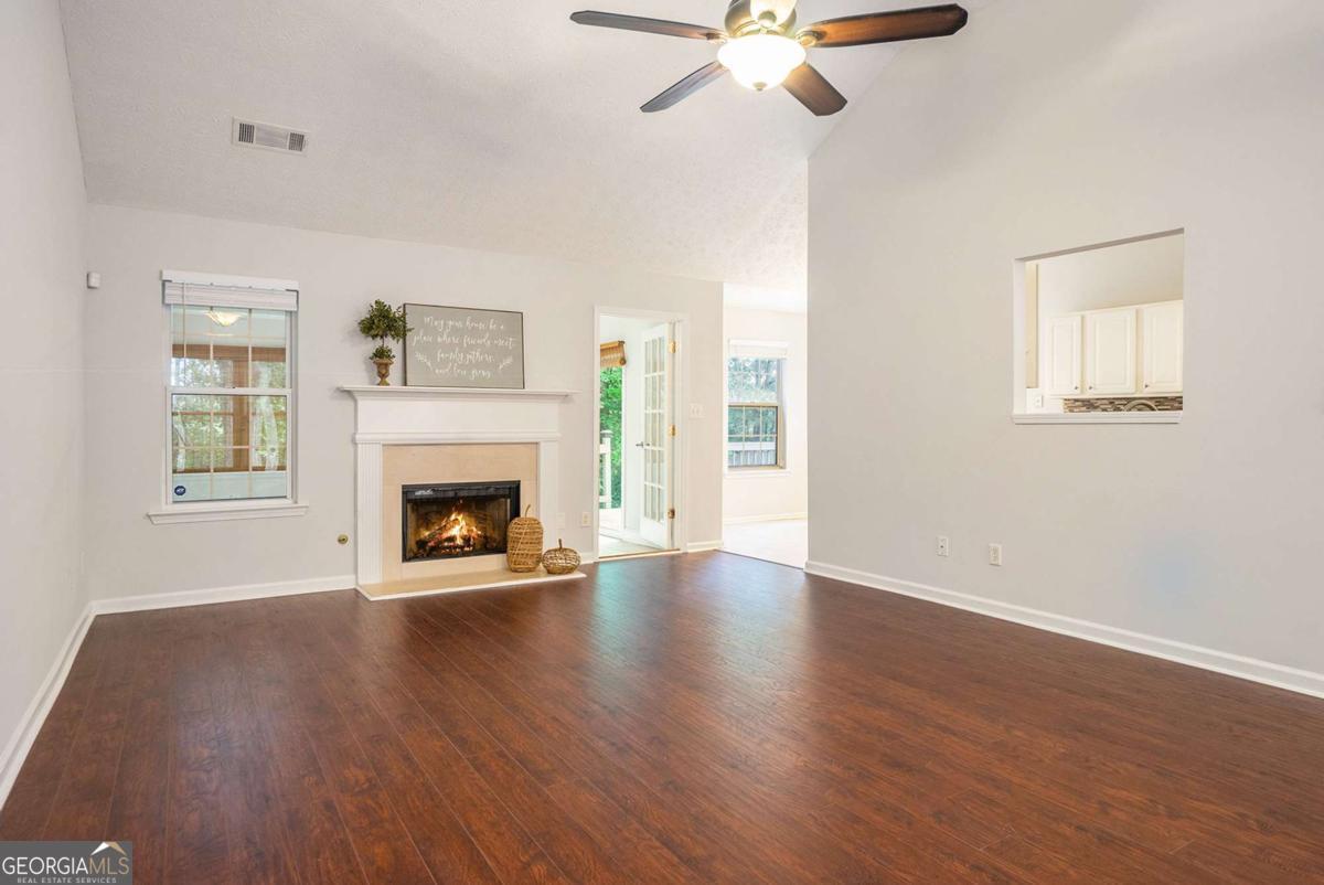 Welcome home to this charming ranch retreat offering 3 spacious bedrooms, 2 full baths, and a versatile bonus room perfect for an office, playroom, or guest space. Step inside through the inviting foyer with soaring ceilings and into the heart of the home-a warm and welcoming family room with a cozy fireplace, ideal for gathering with loved ones. Entertain with ease in the open-concept dining room or enjoy casual mornings in the sunlit bayed breakfast area just off the beautifully appointed galley kitchen, complete with granite countertops, crisp white cabinetry, and a pass-through that keeps you connected to the family room. The serene owner's suite is a true escape, boasting a vaulted ceiling, walk-in closet, and spa-like bath with double vanity, soaking tub, and separate shower. A bright sunroom overlooks the private deck and fenced backyard, creating the perfect spot for relaxing afternoons or weekend get-togethers. All this in a desirable location, just a short drive to Sugarloaf Parkway and GA-20, with shopping, dining, and conveniences close at hand.