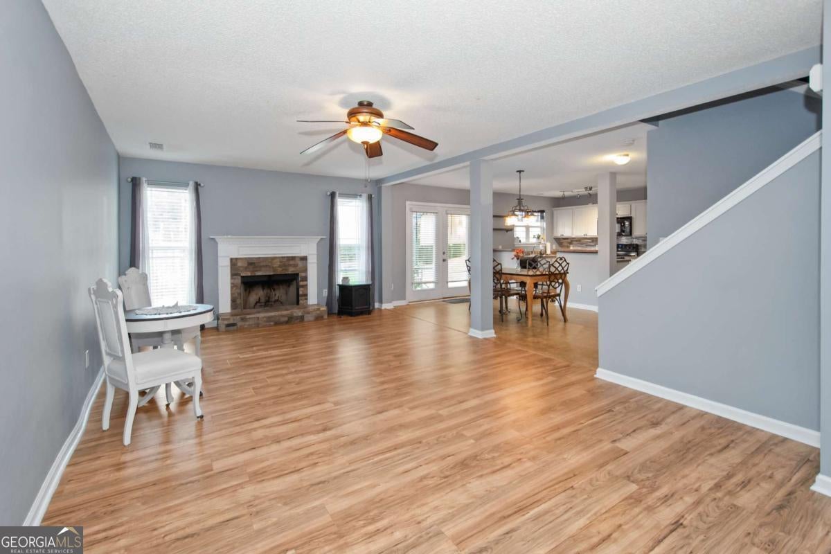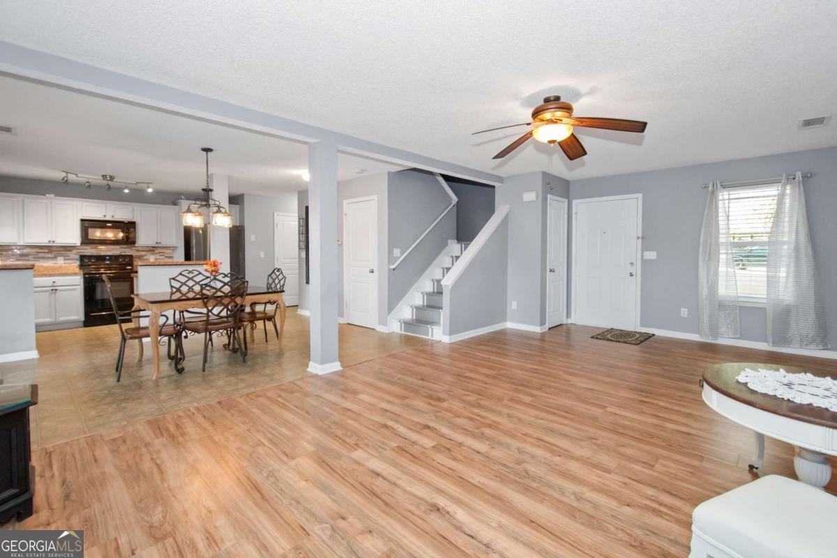 100% Financing for Qualified Buyers! Welcome to this beautifully maintained craftsman-style home that perfectly blends timeless character with modern convenience. Featuring luxury vinyl plank (LVP) flooring throughout, this 3-bedroom, 2.5 bath gem offers a stylish, low maintenance lifestyle. Step onto the inviting front porch, ideal for morning coffee or unwinding in the evening, and enter a bright, open concept living space. The spacious family room, dining area, and kitchen flow seamlessly together, creating a welcoming environment for both everyday living and entertaining. The kitchen is a true gathering spot, complete with classic white cabinetry and plenty of prep space for meals and hosting. Upstairs, you'll find a thoughtfully designed layout that ensures privacy for all. The primary suite is tucked away on one side and features a walk in closet, a soaking tub and a separate shower! Two additional bedrooms and a full bath are located on the opposite side, perfect for family or guests.