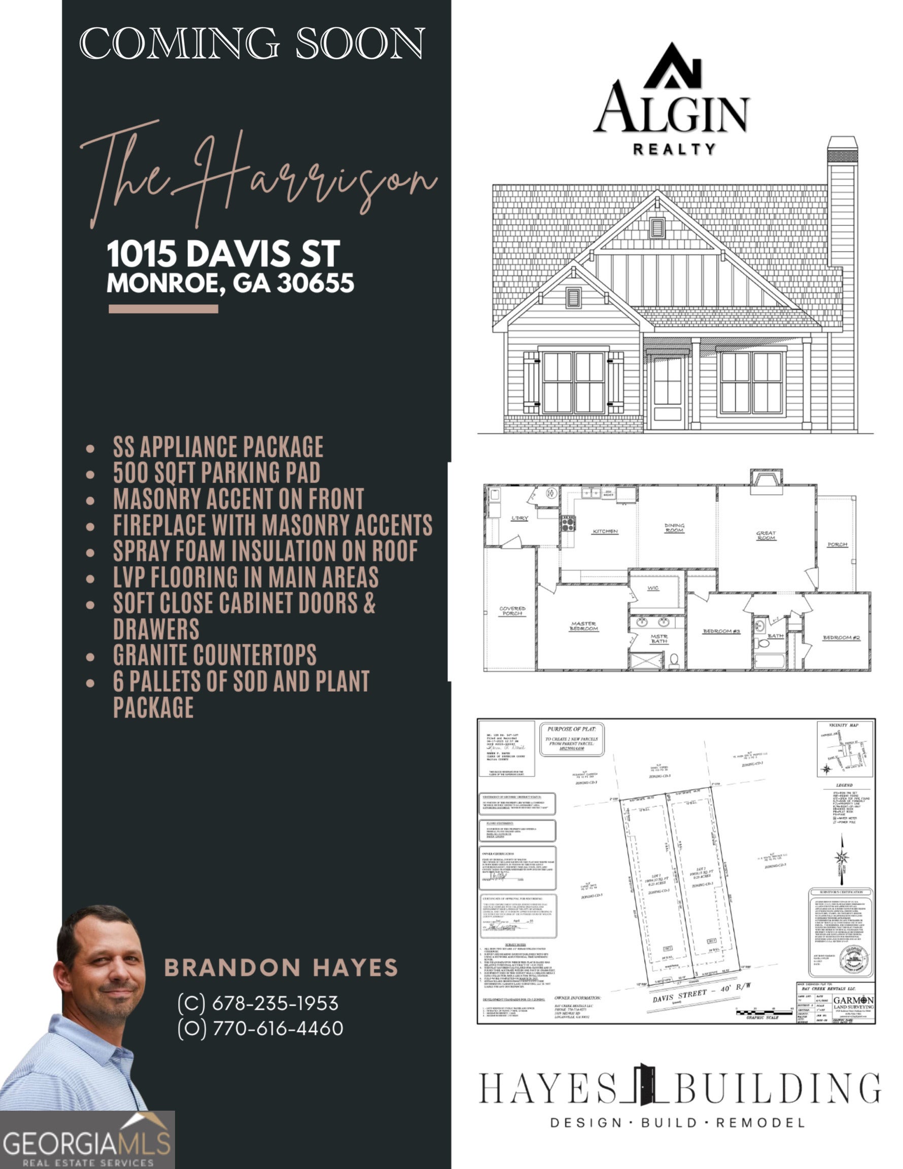 Awesome new construction presale with lots of character. Get in on this deal now and choose many of the finishes and design selections before its too late! $15K Grant with Regions for qualified buyers. The Harrison plan is a custom designed 3 bed, 2 full bath craftsman style gem. The owners suite has a large walk in closet and inviting bathroom with custom tiled shower. Enjoy a fire in your large Great room or entertain guests in the spacious Dining room. The Kitchen boasts stainless steel appliances, granite countertops, pantry and tons of cabinet storage. The laundry / mud room is directly off of the kitchen with an entrance from the large covered porch. This home is located within 1 mile from downtown, the splash pad, green space and all that downtown has to offer. This home comes with LVP flooring, Spray foam attic, Fenced in yard, Sod and much much more. The salesperson involved in this transaction is also the builder.