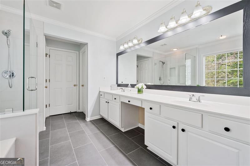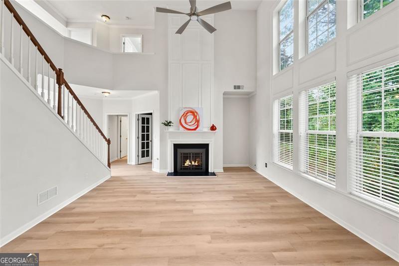 Welcome to this MOVE-IN READY UPDATED 4-bedroom, 2.5 bathroom home located in a peaceful CUL-DE-SAC and within SHORT WALKING DISTANCE from the top rated North Gwinnett High School, offering over 2700 square feet of modern living space in one of Suwanee's most sought-after swim and tennis communities. The home features NEW LVP FLOORING on the main level, NEWLY REMODELED KITCHEN(white quartz countertop with white cabinetries plus built-in desk) and PRIMARY BATHROOM (NEW FRAMELESS SHOWER, NEW TILES), 2 story Family Room that looks out to private wooded back yard, built-in bookshelves in a flex space on the main level that can be used as a 5th bedroom or a work space, lots of natural light pouring into the inviting floor plan, spacious primary suite that offers a serene retreat, generously sized secondary bedrooms with ample closet space, and much more! Whether you are relaxing at home or taking advantage of the nearby amenities (Settle Bridge Park, walking trails to the Chattahoochee River, Bear's Best Golf Course, just to name a few) this charming property offers both comfort and convenience in a prime Suwanee location. Don't miss out on this opportunity - schedule your private showing today!