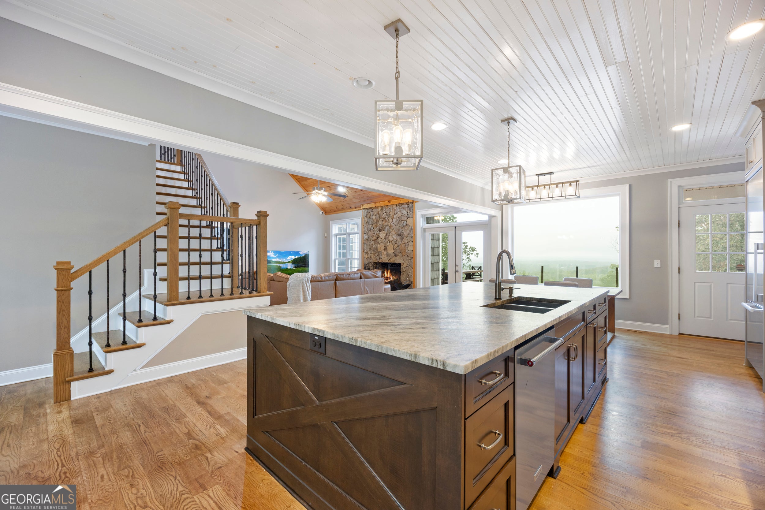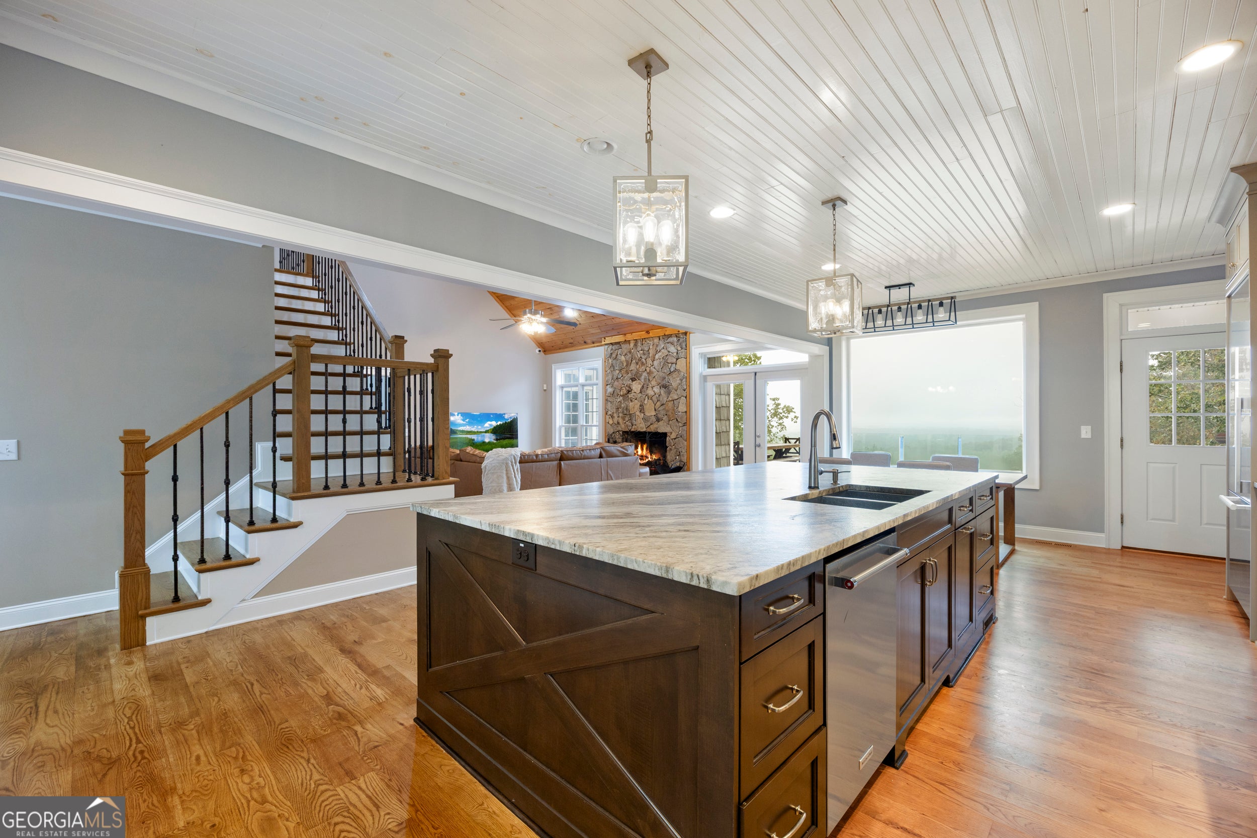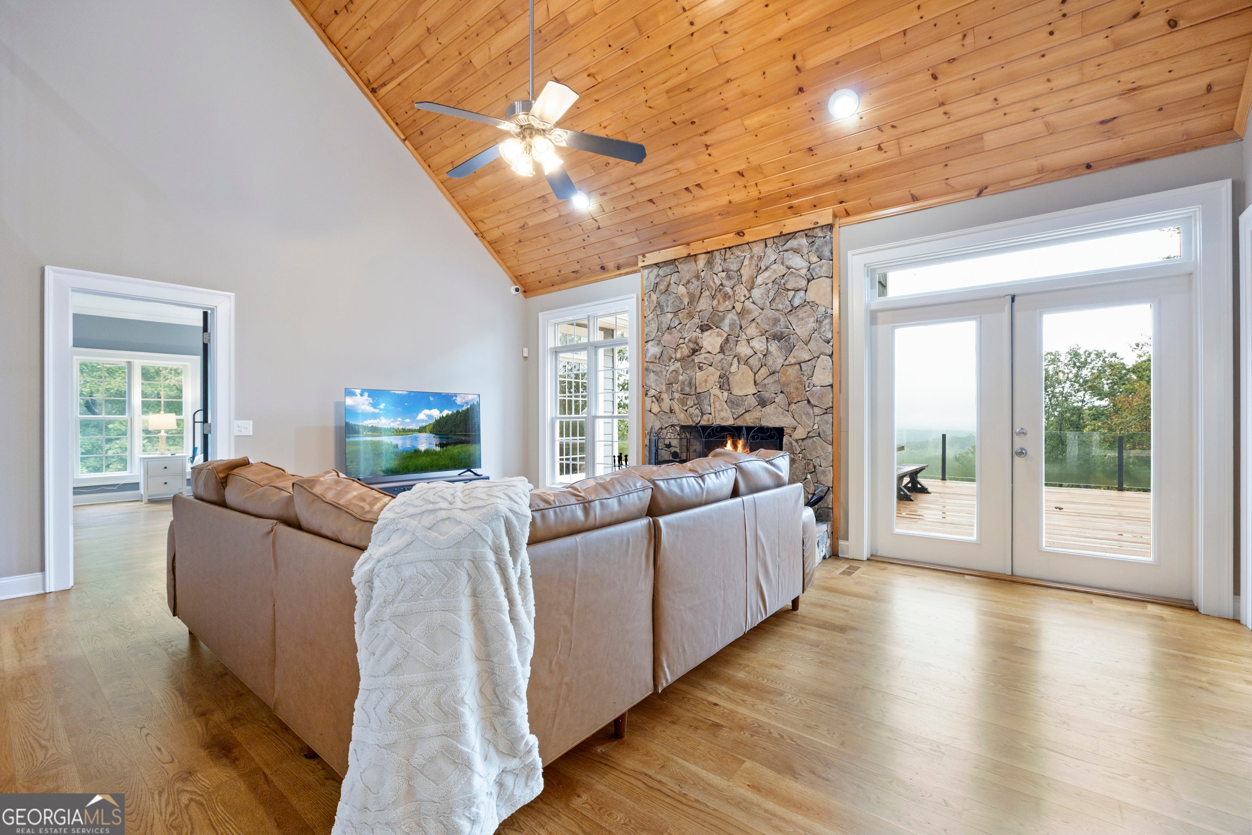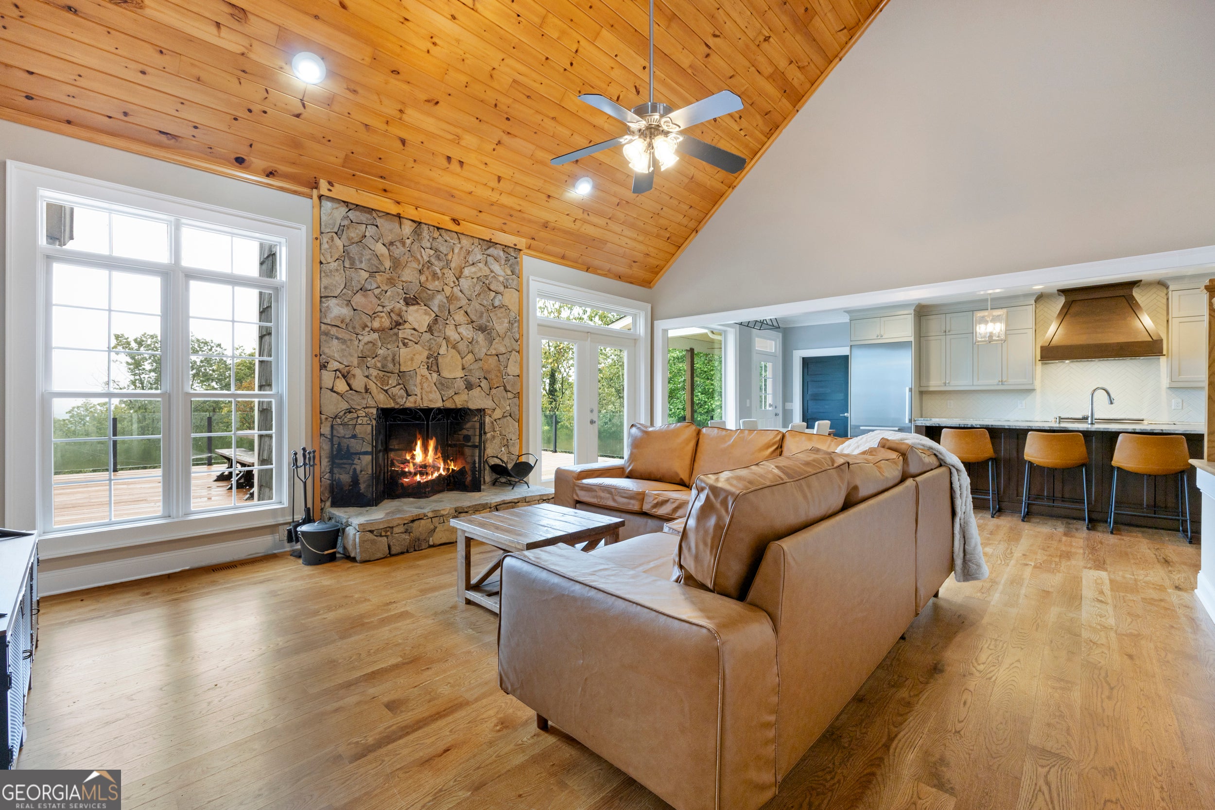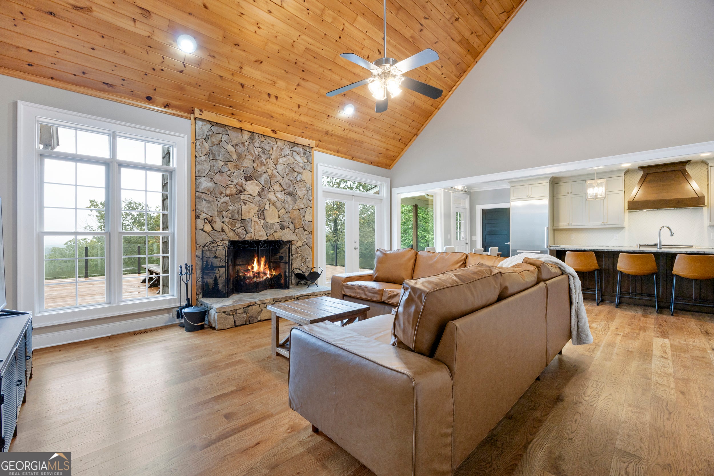 Perched at the top of the mountain, this gated retreat offers uninterrupted, postcard-perfect views of Yonah Mountain from nearly every room. Sitting on 6 acres with no neighbors beyond your property line, it delivers rare seclusion and serenity-yet you're only minutes from Cleveland and a short drive to Gainesville or the Hall County line. This home is also approved for Short-Term Rental (Airbnb/VRBO), giving you the opportunity to enjoy it as a private luxury escape or a high-performing investment property. Inside, soaring vaulted wood ceilings, white oak hardwood floors, and a dramatic stone fireplace set the tone. The chef's kitchen features a Wolf gas range, Miele refrigerator, granite countertops, and oversized picture windows that frame the sweeping mountain views. The primary suite is its own sanctuary, with a spa-style bath and those same breathtaking vistas. Step outside to a massive 1,200 sq. ft. deck-ideal for sunrise coffee, evening gatherings, or guests eager to experience the mountains in style. With a two-car garage, wraparound porch, and gated entry, this property blends five-star comfort, privacy, and convenience. If you've been searching for the ultimate mountaintop getaway-or a proven STR opportunity-this is the one.