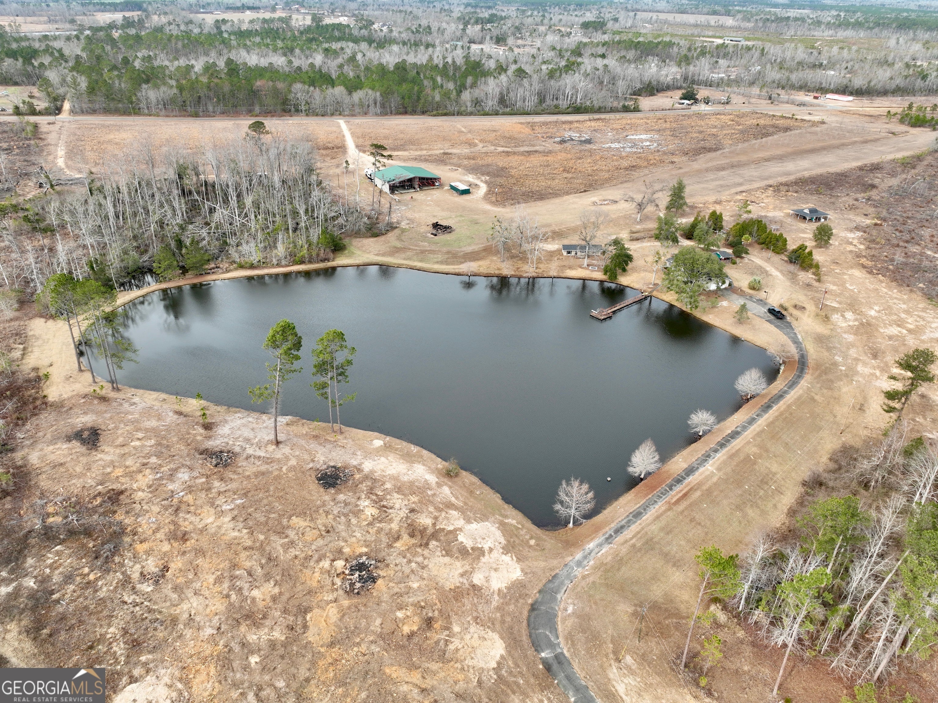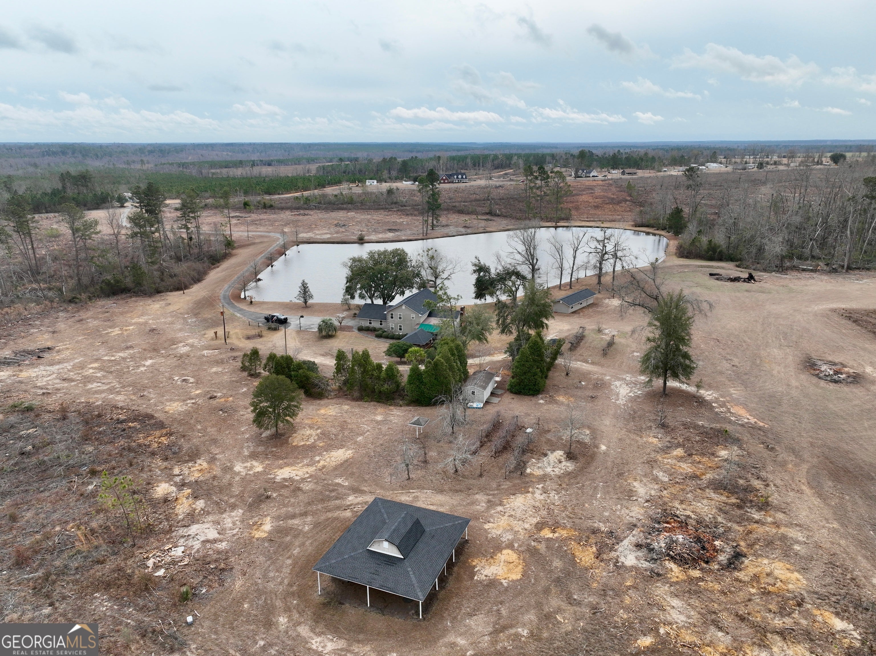 If you are looking to hunt, fish, fly, or just live and relax, this property is the one! The paved driveway leads from GA Highway 46 to a beautiful home overlooking a 5+/- acre lake stocked with bream and bass. The property even has its own runway! There is an 80' x 90' shop building that could be used as an entertainment area, airplane hangar, equipment storage, or a combination of all three. Multiple outbuildings are ideal for storage, and a recently remodeled guest house that also overlooks the lake. The rolling terrain and lake make for beautiful views from both houses and throughout the property. Hardwood draws and clear-cut areas make up most of the acreage. This provides diverse habitat and cover for wildlife. The natural water sources on the property offer year-round hydration for deer and other game. This property has a history of being managed as a local hangout previously known as "Hangar in the Pines," and the main house and guest home have been successful short-term vacation rentals. This adds to the unique investment opportunities that accompany this awesome property. The clear-cut areas could be replanted in pines or cleared to provide more open land. This gives the next owner a clean slate on much of the acreage to design the property of their dreams. The tract is located conveniently between Vidalia and Dublin, making it a short drive to both. This unique offering will not last long. Contact Grantson Martin today to schedule a showing. A bank letter is required to view the property.