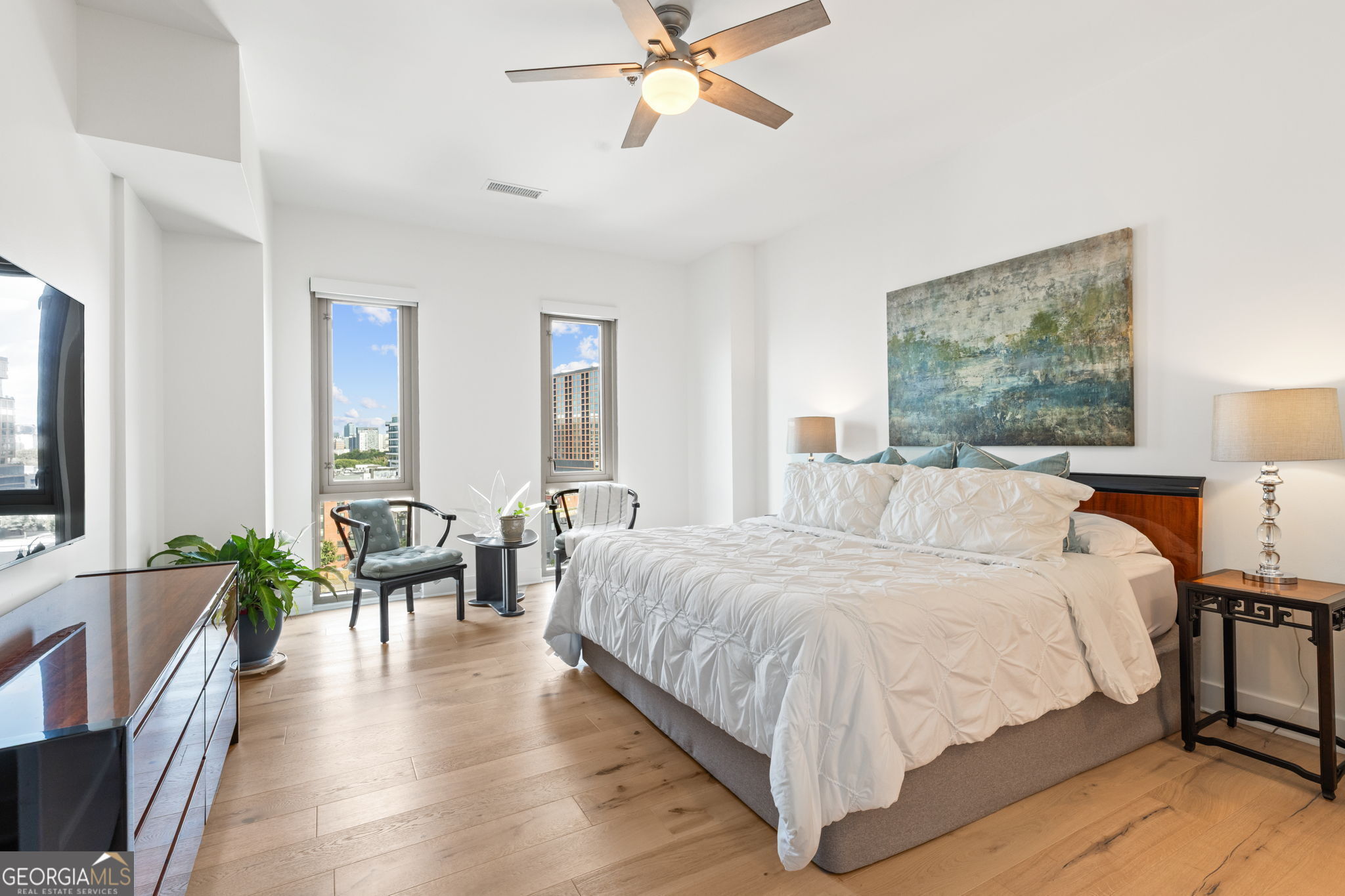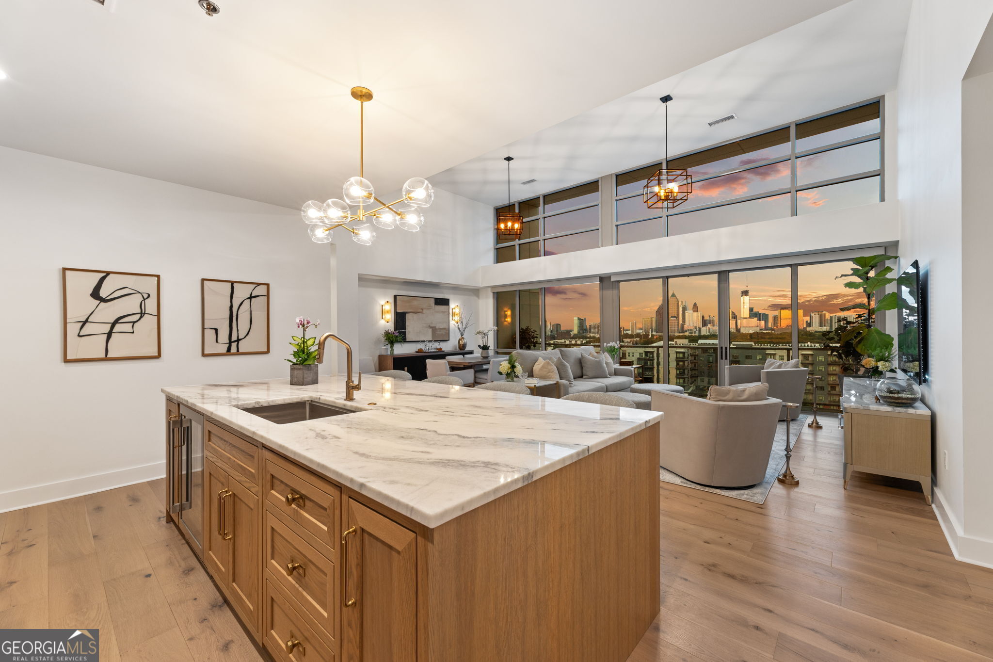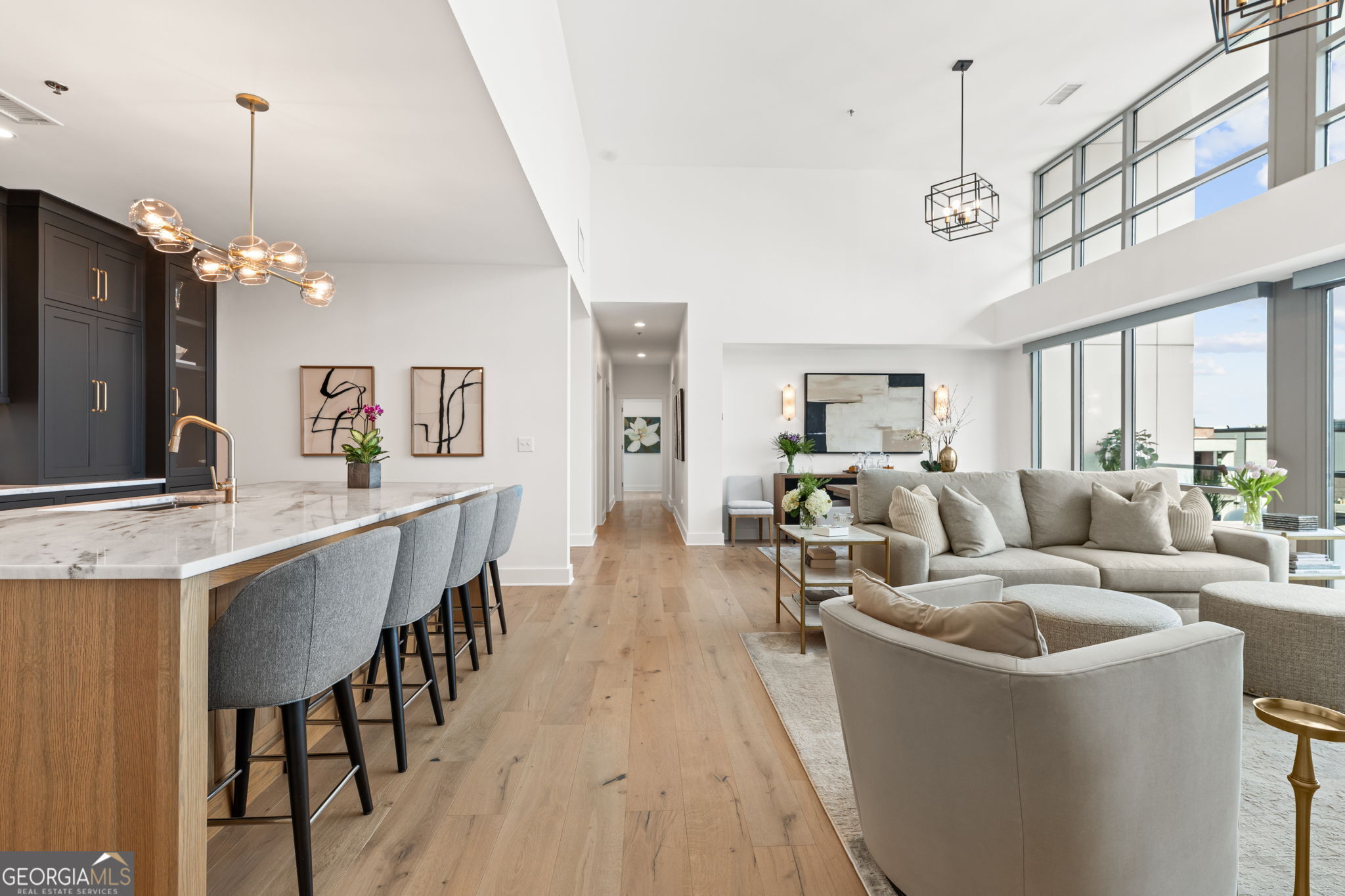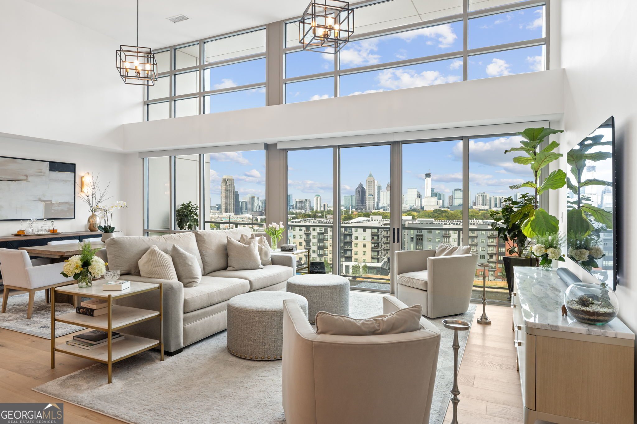 Discover unparalleled luxury in the heart of West Midtown with this one of kind penthouse condo, meticulously crafted by The Patterson Design Group. Occupying the 9th floor of White Provision Residences, Unit 910 offers stunning skyline views from 250 sq ft of balcony space, custom finishes throughout, and some of Atlanta's most popular amenities at your doorstep. Upon entering you'll be greeted by expansive views of Atlanta's skyline from 15 ft floor to ceiling windows spanning the length of the open-concept living area & dining room. The fully redesigned kitchen features custom white oak cabinetry, seamless marble slab countertop & backsplash, Monogram luxury appliances, custom vent hood with the only kitchen exhaust venting outside in the building, a 53 bottle wine and beverage refrigerator, wi-fi enabled appliances and a 36 inch gas range with brass accents. The 4x10 pantry features matching custom cabinets, marble slab and under-shelf lighting. A stunning 725 sq ft primary suite features its own 15 ft floor to ceiling windows and private 25 ft wide balcony showcasing the same jaw dropping skyline views from the comfort of your bed. The en suite bath includes all Carrara marble floors and shower, custom 10 ft wide vanity with center tower cabinet & waterfall marble top, Brizo luxury faucets, large marble shower with bench and a separate custom makeup vanity with marble top and specialized makeup lights. The custom 11x14 closet room features fixed and adjustable shelving, long and short hanging bars, custom shoe storage wall, large closet peninsula with marble top and 17 soft close drawers. An secondary suite at the opposite end of the unit features two large closets with Elfa closet systems and en suite bathroom with marble floors and countertops. The large 3rd bedroom can easily accommodate a king-size bed and a third full bath features a glass enclosed Kohler bathtub and marble countertops & flooring. White Provision Residences is located in the heart of the Westside Provisions District - one of Atlanta's most walkable and amenity dense neighborhoods. Some of the cities hottest restaurants, such as Marcel, Forza Storico & Bar Blanc are just steps away, along with a diverse array of high end retail outlets. The building itself offers 24 hour concierge, modern gym facilities, newly redone pool, and secure, private parking for the 3 deeded spaces that come with the unit along with an EV charger. A custom, fully renovated penthouse of this size cannot be found at this price point anywhere else in the city & the quality of the local amenities is unmatched even among Atlanta's most vaunted neighborhoods, such as Midtown or Buckhead. Do not miss this one of a kind opportunity to enjoy the best of what Atlanta has to offer!