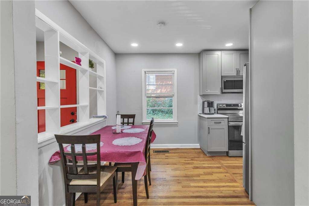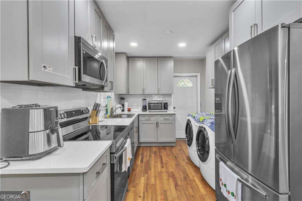 Beautifully remodeled all-brick 3BR/1.5BA ranch in the heart of Forest Park offering exceptional comfort and investment potential. Step inside to find a bright, open living area with gorgeous hardwood floors and abundant natural light. The updated kitchen features sleek cabinetry, modern countertops, stainless steel appliances, and convenient in-kitchen laundry; refrigerator stays, and washer and dryer are negotiable. Both bathrooms have been refreshed, and the home's plumbing lines were replaced just two years ago along with the roof, offering peace of mind. The functional single-level layout includes a dining area and spacious bedrooms. Outside, enjoy a large, level fenced backyard with mature trees - ideal for entertaining, gardening, or future expansions - plus a long driveway for ample off-street parking. Conveniently located near Forest Park City Park, Reynolds Nature Preserve, shopping, dining, and top commuter routes including I-75, I-285, and I-675 for easy access to Atlanta and Hartsfield-Jackson Airport. Currently tenant-occupied, tenants willing to stay, providing an immediate income opportunity for investors or flexibility for buyers who plan to move in later. Move-in ready with modern updates and great upside potential - perfect for homeowners and savvy investors alike.