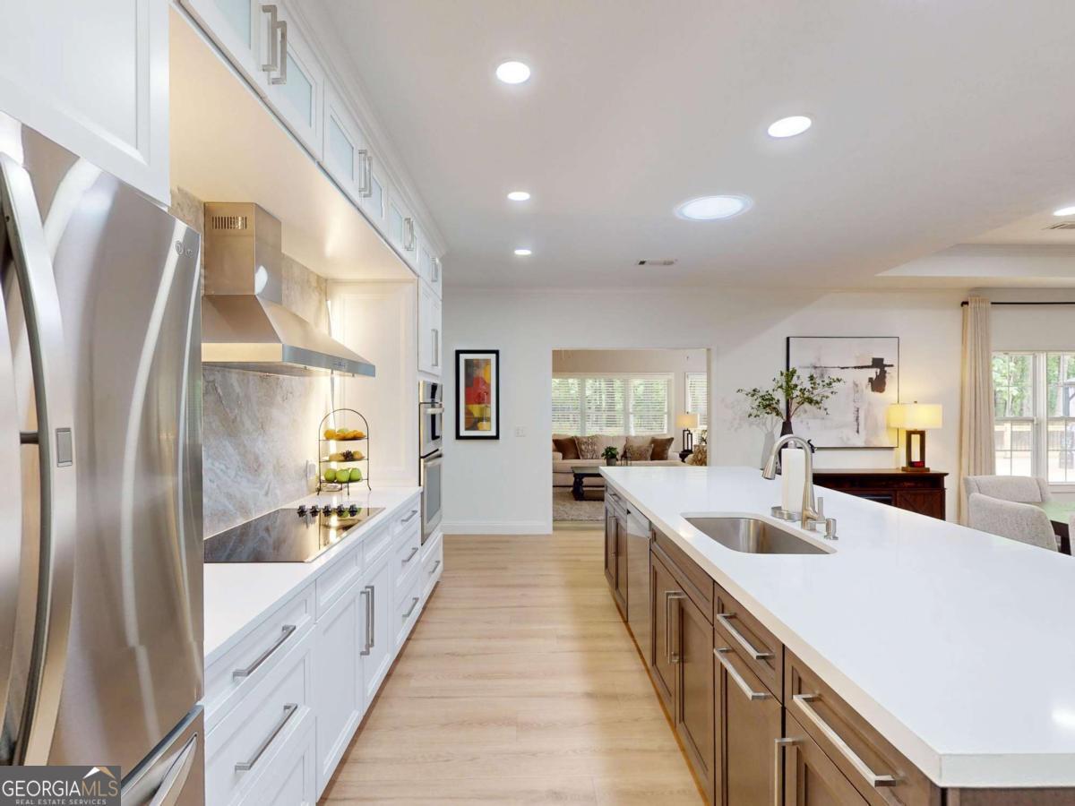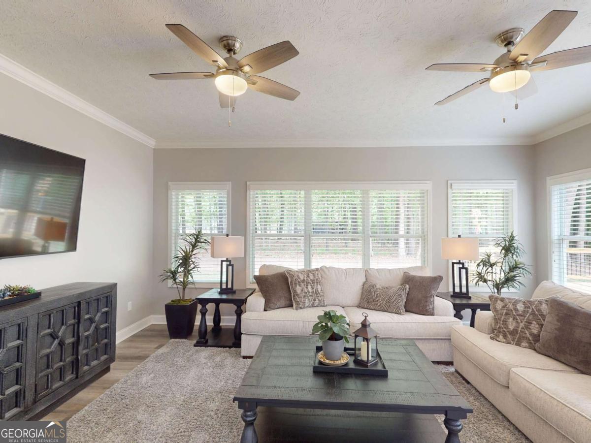 Better Than New Construction! Welcome to this completely reimagined one-story home, where modern elegance meets thoughtful, high-end upgrades throughout. Situated on a private 1.33-acre cul-de-sac lot in the beautifully maintained Planters Ridge subdivision, this home offers the perfect blend of space, serenity, and style. Boasting over 2,800 square feet, the well designed split floor plan includes four spacious bedrooms, three full bathrooms, and two separate living areas ideal for both comfortable living and entertaining. At the heart of the home is a brand new, open concept living space, highlighted by a stunning floor-to-ceiling stone fireplace with custom propane gas logs, and bathed in natural light from two newly installed sun tunnels. The all new kitchen is a chef's dream, featuring soft-close cabinetry, modern finishes, and an enormous 12x12 walk-in pantry with extensive shelving, multiple appliance outlets, and a stainless steel prep table. Throughout the home, you'll find high end vinyl plank flooring, fresh interior paint, upgraded baseboards, elegant crown molding, and a beautifully redesigned foyer and archway that leads into the Florida room. The bathrooms have all been tastefully updated, and the primary suite offers a spa like retreat with a gorgeously tiled walk-in shower. Two of the four bedrooms can easily serve as dual master suites or provide a perfect setup for multi generational living. Each bedroom includes large walk-in closets for ample storage. Outdoor living is just as impressive, thanks to a brand-new 28x42-foot deck with custom railing, built-in electrical for an outdoor TV, and a stylish pergola with integrated lighting ideal for gatherings or quiet evenings under the stars. Tech savvy buyers will appreciate the upgraded electrical system, a hardwired security system with six outdoor cameras, and a Ring doorbell for added peace of mind. Additional features include a 3 car garage, one bay featuring a climate controlled storage closet, plus a separate climate controlled workshop complete with cabinetry. All appliances convey, including two refrigerators, a washer and dryer, and the exterior security system. Nature lovers will enjoy peaceful mornings surrounded by local wildlife, drawn in by multiple birdhouses thoughtfully placed throughout the property. With all trees trimmed and underbrush cleared, the lot is as well maintained as the home itself. Conveniently located just minutes from West Point Lake, shopping, the hospital, and only 10 minutes from I-85, this exceptional home isn't just a place to live it's a lifestyle.