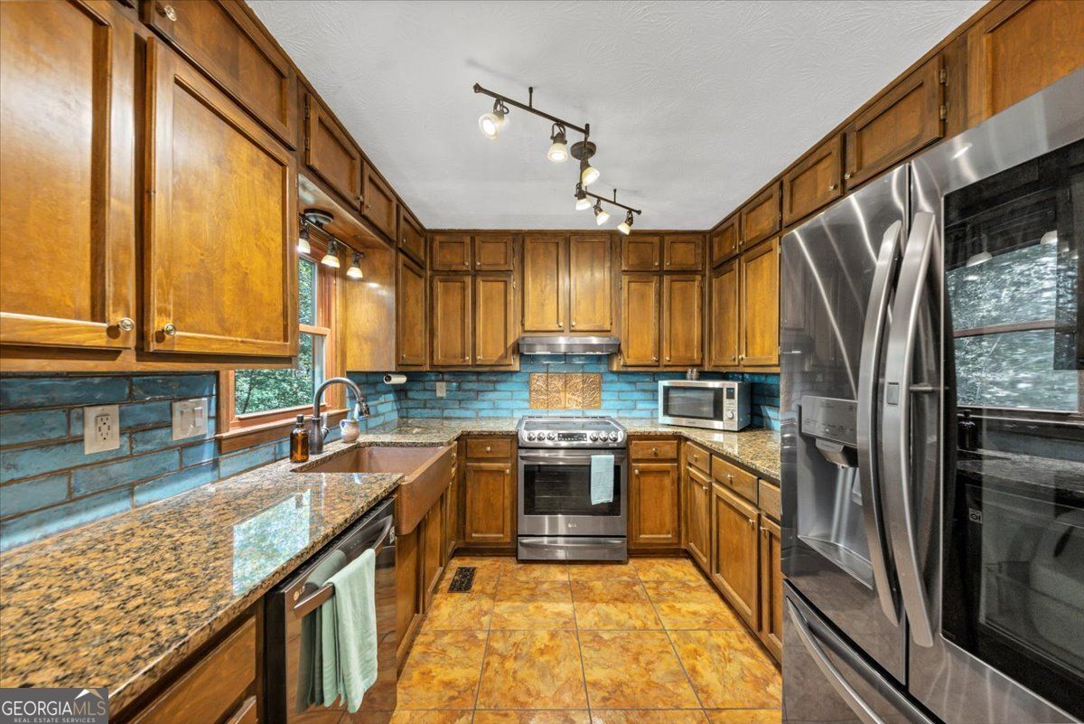 Welcome to 3465 Plantation Ridge NW - a beautifully updated 3-bedroom, 2-bath home on nearly 1 acre in a private Acworth cul-de-sac! With 1,877 sq ft, this home offers fresh paint inside/out, brand-new Hardie Plank siding, an open-framed front porch, and a low-maintenance Trex deck with wooded views, fire pit, floodlights, and motion lighting. Inside, the main-level primary suite features a bay window and walk-in closet. The kitchen shines with granite countertops, copper sink, walnut-stained cabinets, and LG black stainless appliances, while both baths feature LVP flooring. A full basement provides flex space for a 4th bedroom, theater, gym, or bonus room. Upgrades include a tankless gas water heater and septic system improvements (2022). Prime location-just 0.5 miles from Allatoona High (walkable sidewalks), 10 minutes to downtown Acworth dining/shops, and close to Lake Allatoona recreation. Convenient access to Hwy 92 improvements and growing community amenities. The heater for endless hot water and a recently upgraded septic system with a flip switch and new/additional line installed just 2 years ago. Windows and doors replaced 2021. With thoughtful updates throughout, this home is move-in ready and a true Acworth gem