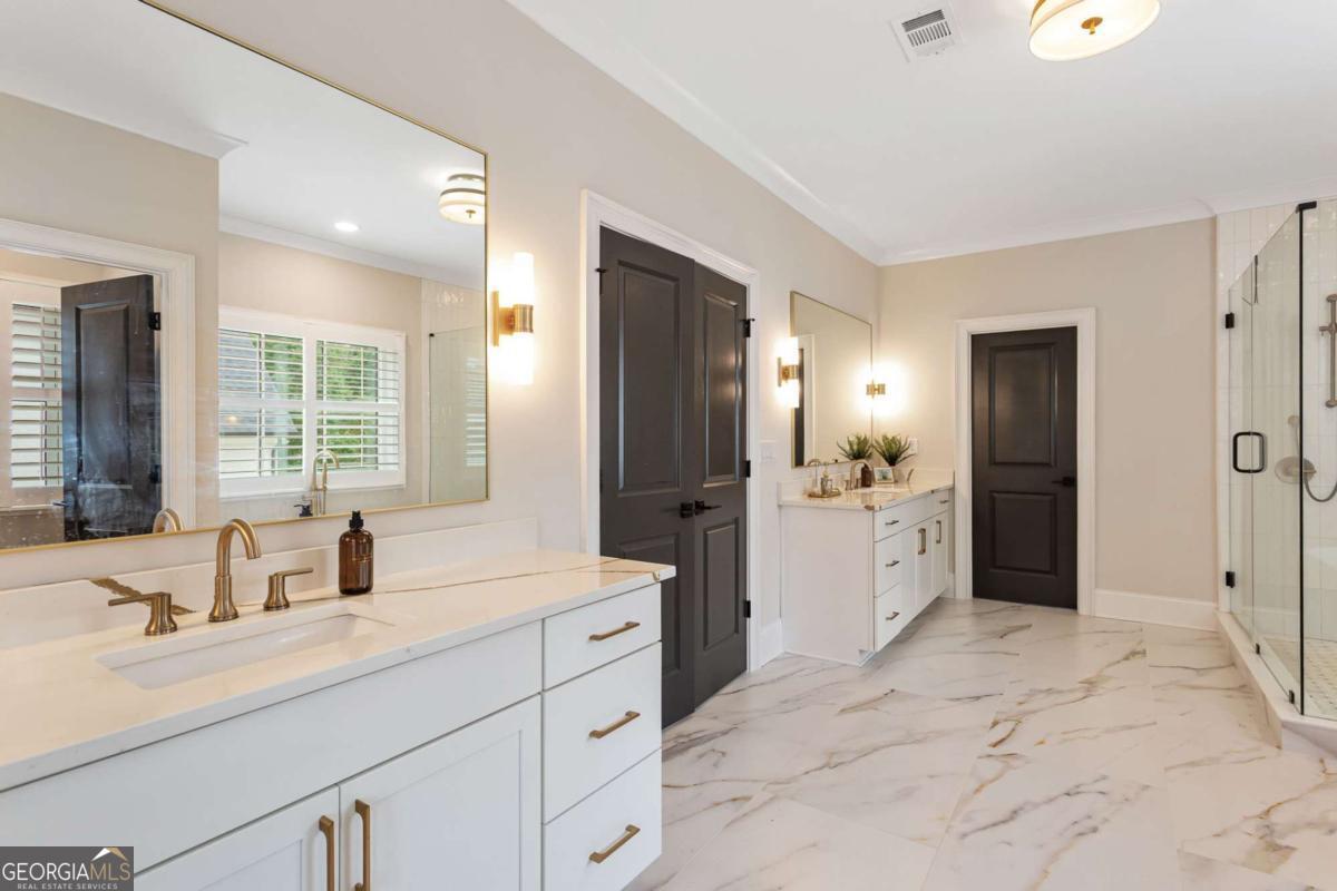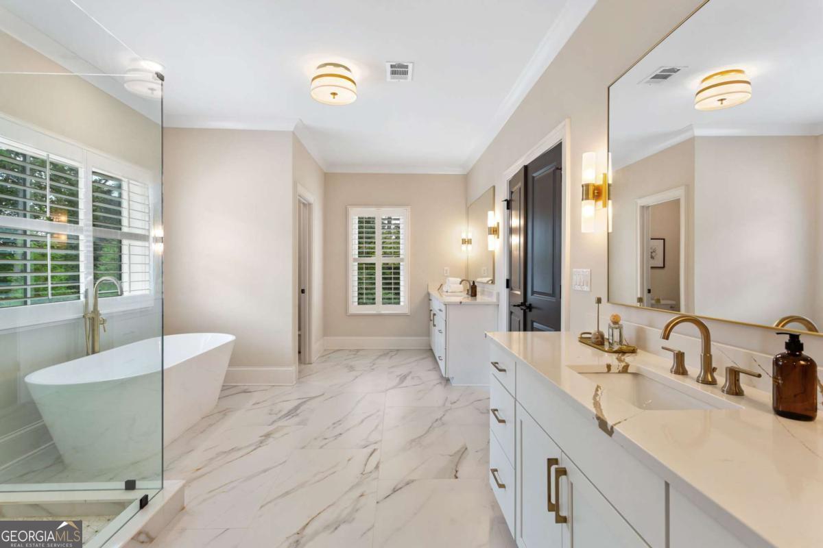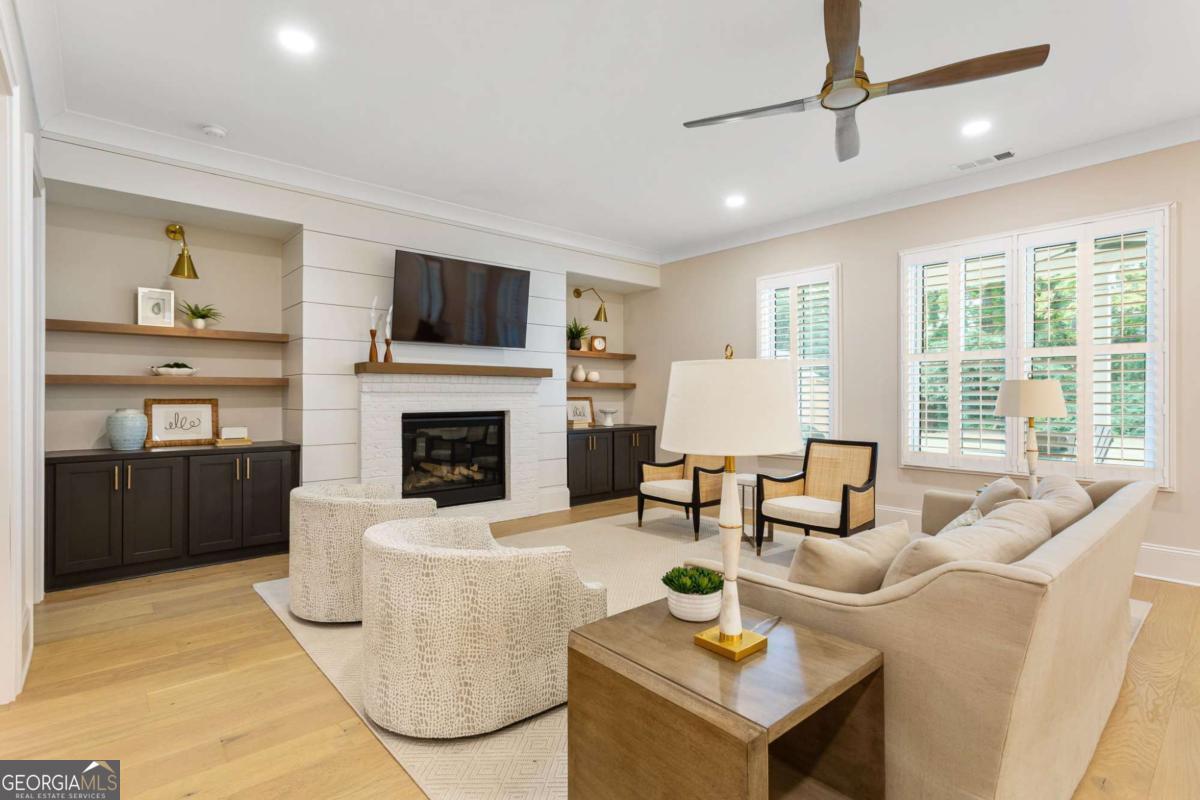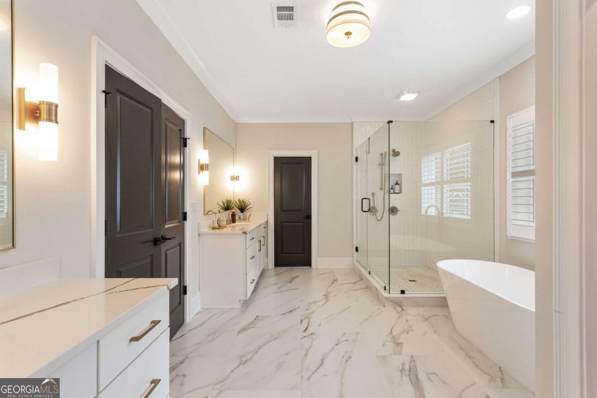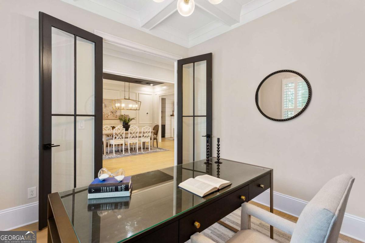 Welcome to 1460 Memory Lane SE, a dazzling executive residence in the heart of Smyrna's coveted Forest Hills community. With 5 bedrooms, 4.5 baths, and over 4,450 sq ft of elegant living space, this is a home that balances grand scale with thoughtful details. Set on a manicured corner lot with a fenced backyard and covered patio, this property is made for both entertaining and quiet enjoyment. Inside, you'll find exquisite finishes at every turn: crown molding, coffered ceilings, wainscoting accents, gleaming hardwoods, upgraded lighting, and plantation shutters. On the main level: - A gracious home office perfect for remote work or study. - A formal dining room and elegant living room with fireplace and custom built-in cabinetry. - A gourmet kitchen boasting abundant cabinetry, double ovens, a central island with seating, and room for a coffee bar. - A downstairs suite perfect for in-law, teen, or guest quarters. - A mudroom connecting the home to a 3-car garage. Upstairs, a central loft / family room offers flexible space for play, media, or relaxation. The primary suite is oversized and serene, featuring dual vanities, a stand-alone soaking tub, glass-enclosed step-in shower, and a custom closet system. Additional bedrooms are generously sized, each connecting to full baths. A spacious laundry room, complete with sink, is ideally located near the bedrooms. Don't overlook the 545 sq ft insulated attic, ready to serve as storage or even a future expansion opportunity. This is more than a house - it's a refined lifestyle in Smyrna's most desirable enclave. Easy access to local shopping, dining, parks, and highways make this both a retreat and a hub. Don't miss your chance to call it home.