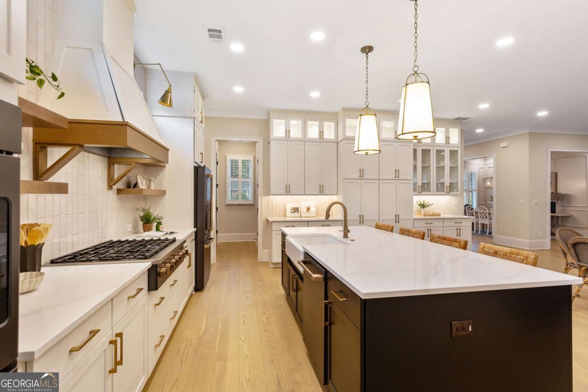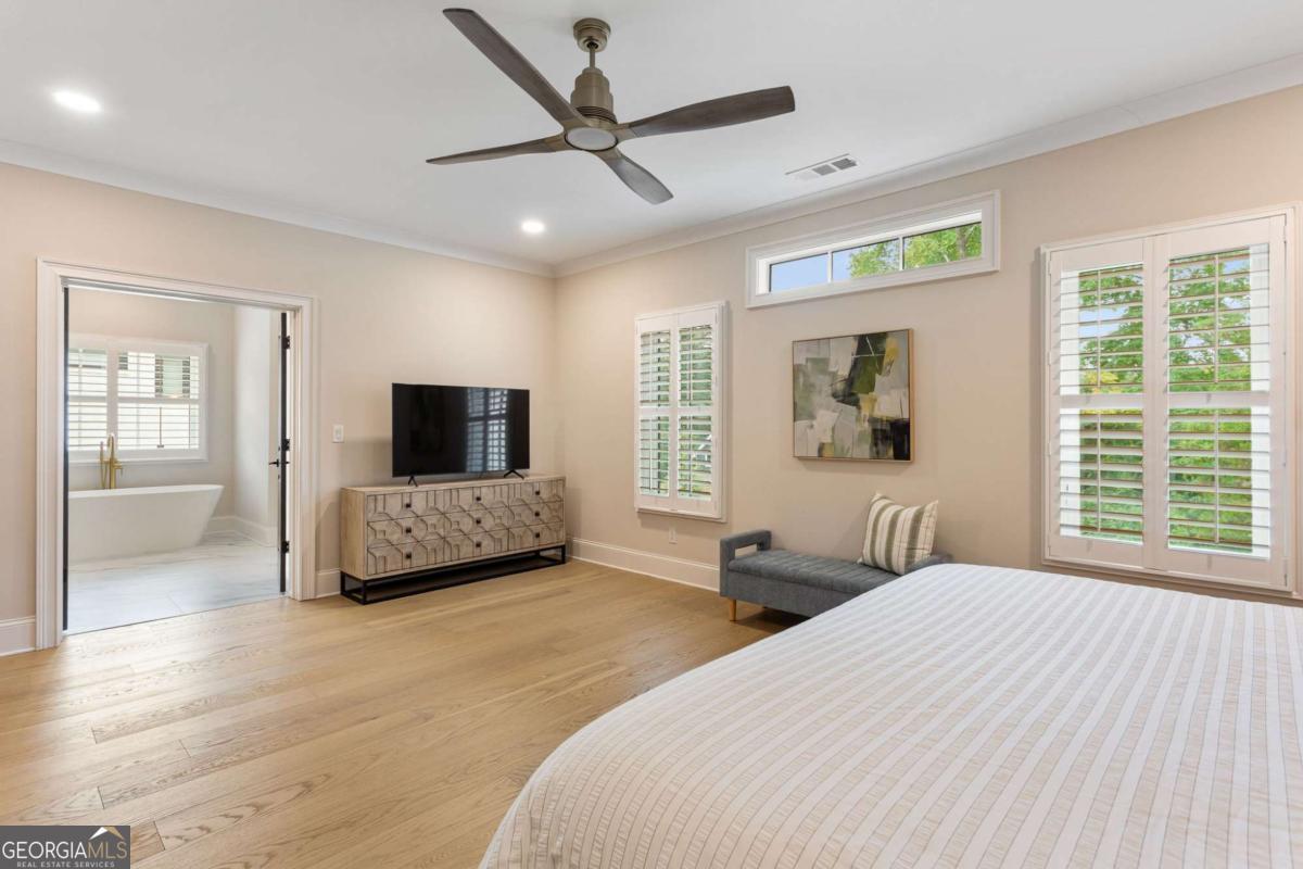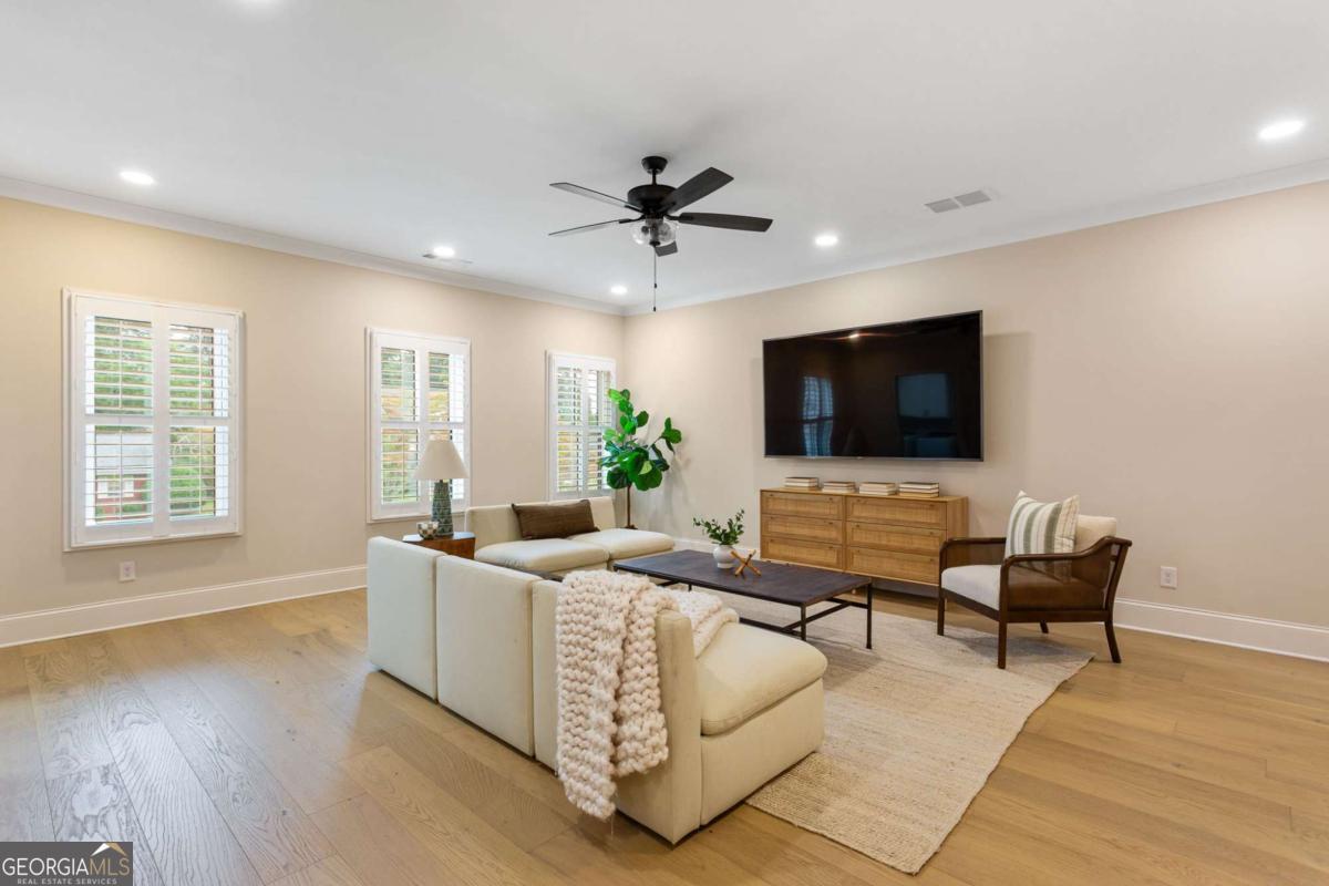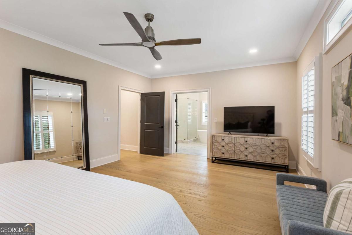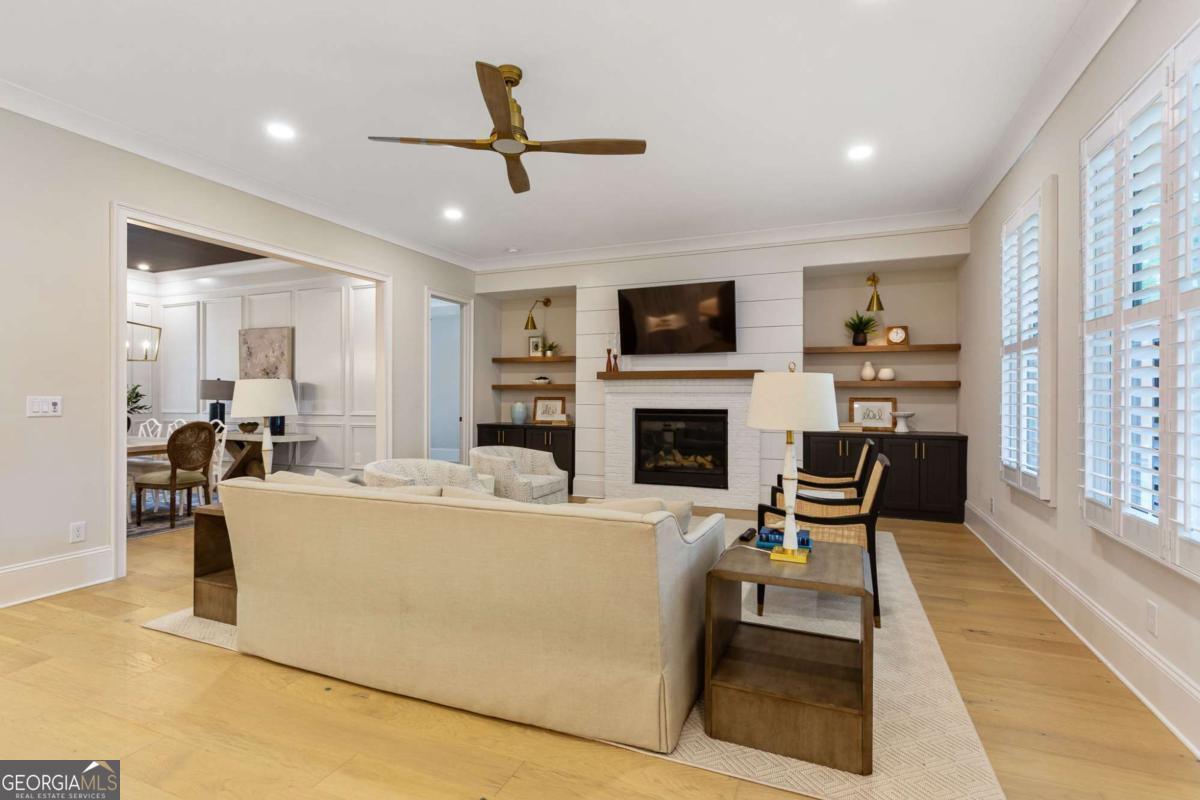 Welcome to 1460 Memory Lane SE, a dazzling executive residence in the heart of Smyrna's coveted Forest Hills community. With 5 bedrooms, 4.5 baths, and over 4,450 sq ft of elegant living space, this is a home that balances grand scale with thoughtful details. Set on a manicured corner lot with a fenced backyard and covered patio, this property is made for both entertaining and quiet enjoyment. Inside, you'll find exquisite finishes at every turn: crown molding, coffered ceilings, wainscoting accents, gleaming hardwoods, upgraded lighting, and plantation shutters. On the main level: - A gracious home office perfect for remote work or study. - A formal dining room and elegant living room with fireplace and custom built-in cabinetry. - A gourmet kitchen boasting abundant cabinetry, double ovens, a central island with seating, and room for a coffee bar. - A downstairs suite perfect for in-law, teen, or guest quarters. - A mudroom connecting the home to a 3-car garage. Upstairs, a central loft / family room offers flexible space for play, media, or relaxation. The primary suite is oversized and serene, featuring dual vanities, a stand-alone soaking tub, glass-enclosed step-in shower, and a custom closet system. Additional bedrooms are generously sized, each connecting to full baths. A spacious laundry room, complete with sink, is ideally located near the bedrooms. Don't overlook the 545 sq ft insulated attic, ready to serve as storage or even a future expansion opportunity. This is more than a house - it's a refined lifestyle in Smyrna's most desirable enclave. Easy access to local shopping, dining, parks, and highways make this both a retreat and a hub. Don't miss your chance to call it home.